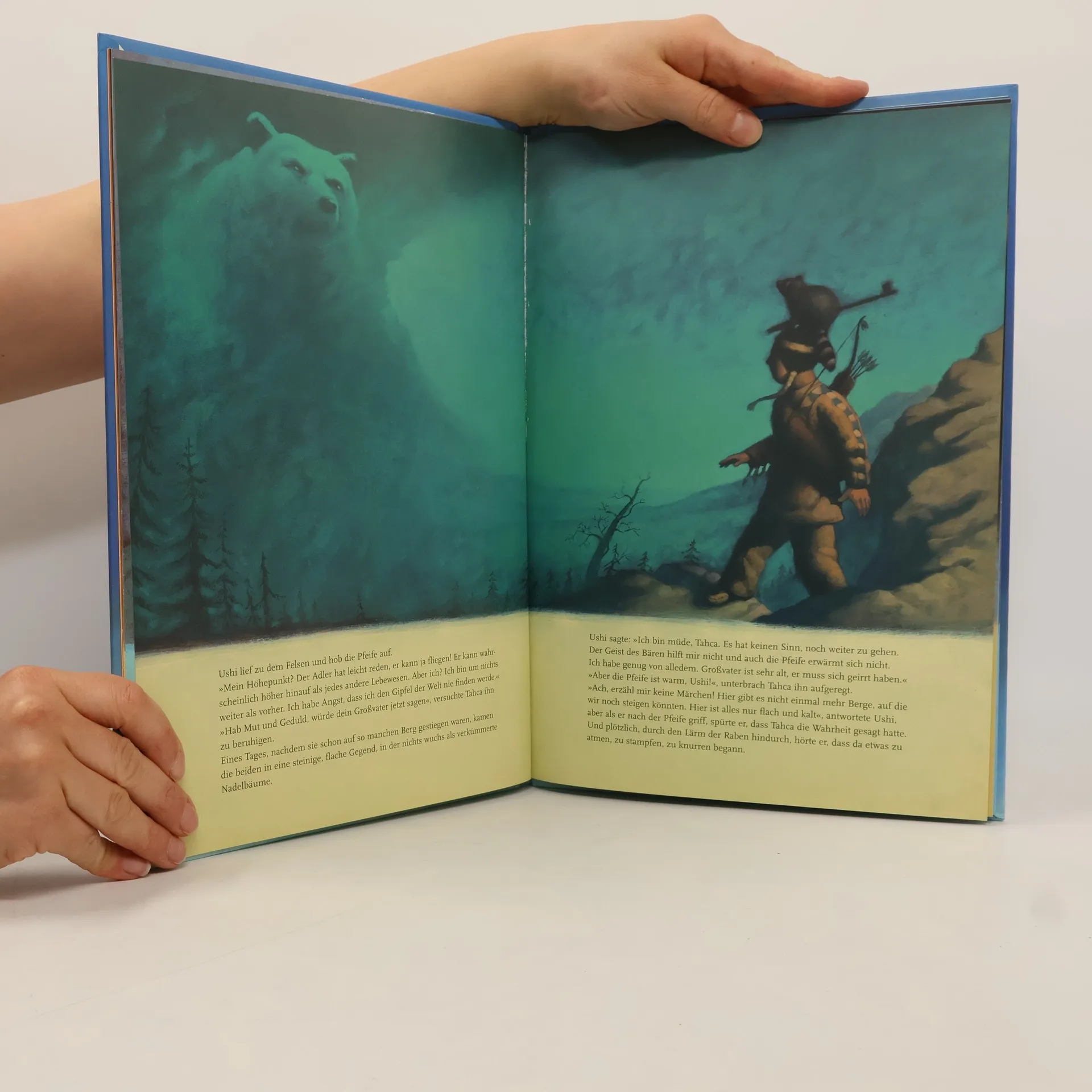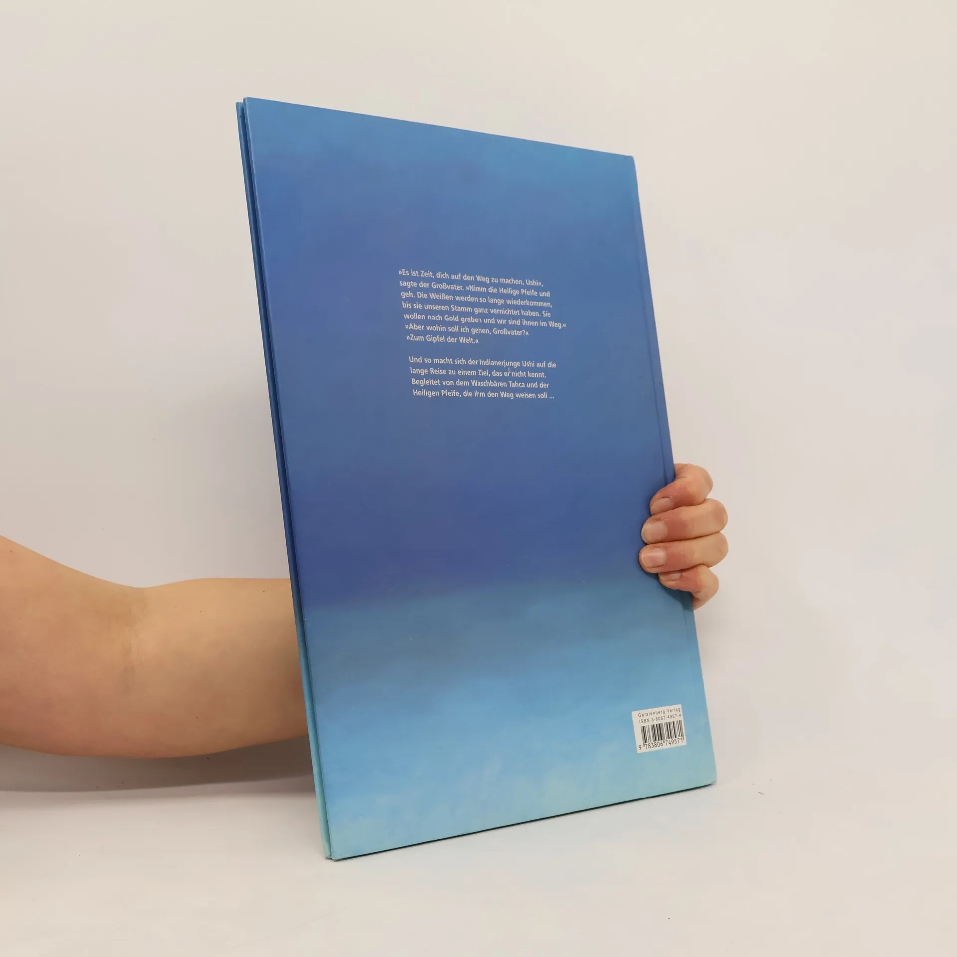 'Es ist Zeit, dich auf den Weg zu machen, Ushi', sagte der Großvater. 'Nimm die Heilige Pfeife und geh. Die Weißen werden so lange wiederkommen, bis sie unseren Stamm ganz vernichtet haben. Sie wollen nach Gold graben und wir sind ihnen im Weg.''Aber wohin soll ich gehen, Großvater?''Zum Gipfel der Welt.'Und so macht sich der Indianerjunge Uhi auf die lange Reise zu einem Ziel, das er nicht kennt. Begleitet vom Waschbären Tahca und der Heiligen Pfeife, die ihm den Weg weisen soll . . .