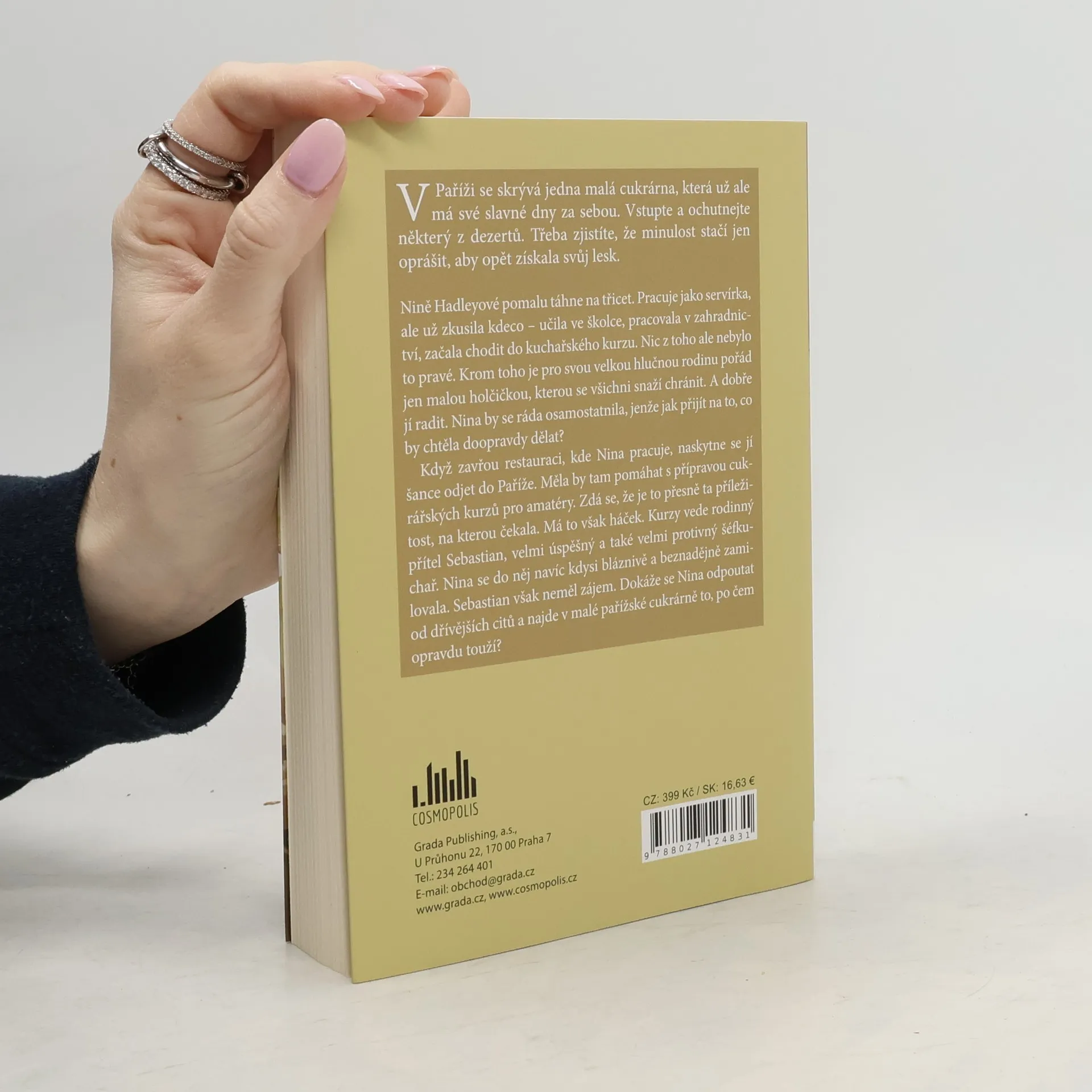 V Paříži se skrývá jedna malá cukrárna, která má už ale své slavné dny za sebou. Vstupte a ochutnejte některý z dezertů. Třeba zjistíte, že minulost stačí jen oprášit, aby opět získala svůj lesk. Nině Hadleyové pomalu táhne na třicet. Pracuje jako servírka, ale už zkusila kdeco – učila ve školce, pracovala v zahradnictví, absolvovala také kuchařský kurz. Nic z toho ale nebylo to pravé. Krom toho je pro svou velkou hlučnou rodinu pořád jen malou holčičkou, kterou se všichni snaží chránit. A dobře jí radit. Nina by se ráda osamostatnila, jenže jak přijít na to, co by doopravdy chtěla dělat? Když na dva měsíce kvůli rekonstrukci zavřou restauraci, kde Nina pracuje, naskytne se jí šance odjet do Paříže. Měla by tam pomáhat s přípravou cukrářských kurzů pro amatéry. Zdá se, že je to přesně ta příležitost, na kterou čekala. Má to však háček. Kurzy vede rodinný přítel Sebastian, velmi úspěšný a také velmi protivný šéfkuchař. Nina se do něj navíc kdysi bláznivě a beznadějně zamilovala. Sebastian ovšem neměl zájem. Dokáže se Nina odpoutat od dřívějších citů a najde v malé pařížské cukrárně to, po čem opravdu touží?