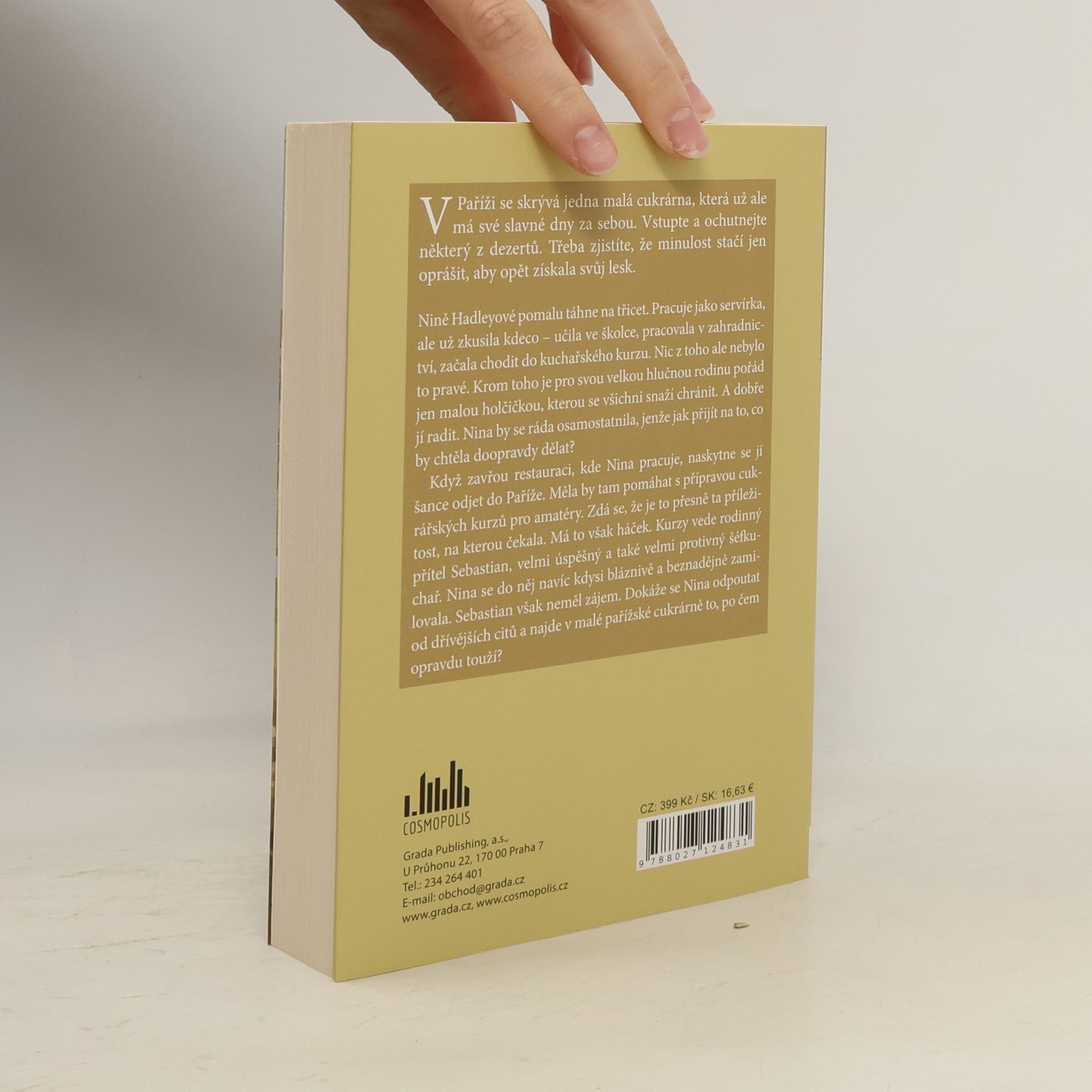 V Paříži se skrývá jedna malá cukrárna, která má už ale své slavné dny za sebou. Vstupte a ochutnejte některý z dezertů. Třeba zjistíte, že minulost stačí jen oprášit, aby opět získala svůj lesk. Nině Hadleyové pomalu táhne na třicet. Pracuje jako servírka, ale už zkusila kdeco – učila ve školce, pracovala v zahradnictví, absolvovala také kuchařský kurz. Nic z toho ale nebylo to pravé. Krom toho je pro svou velkou hlučnou rodinu pořád jen malou holčičkou, kterou se všichni snaží chránit. A dobře jí radit. Nina by se ráda osamostatnila, jenže jak přijít na to, co by doopravdy chtěla dělat? Když na dva měsíce kvůli rekonstrukci zavřou restauraci, kde Nina pracuje, naskytne se jí šance odjet do Paříže. Měla by tam pomáhat s přípravou cukrářských kurzů pro amatéry. Zdá se, že je to přesně ta příležitost, na kterou čekala. Má to však háček. Kurzy vede rodinný přítel Sebastian, velmi úspěšný a také velmi protivný šéfkuchař. Nina se do něj navíc kdysi bláznivě a beznadějně zamilovala. Sebastian ovšem neměl zájem. Dokáže se Nina odpoutat od dřívějších citů a najde v malé pařížské cukrárně to, po čem opravdu touží?