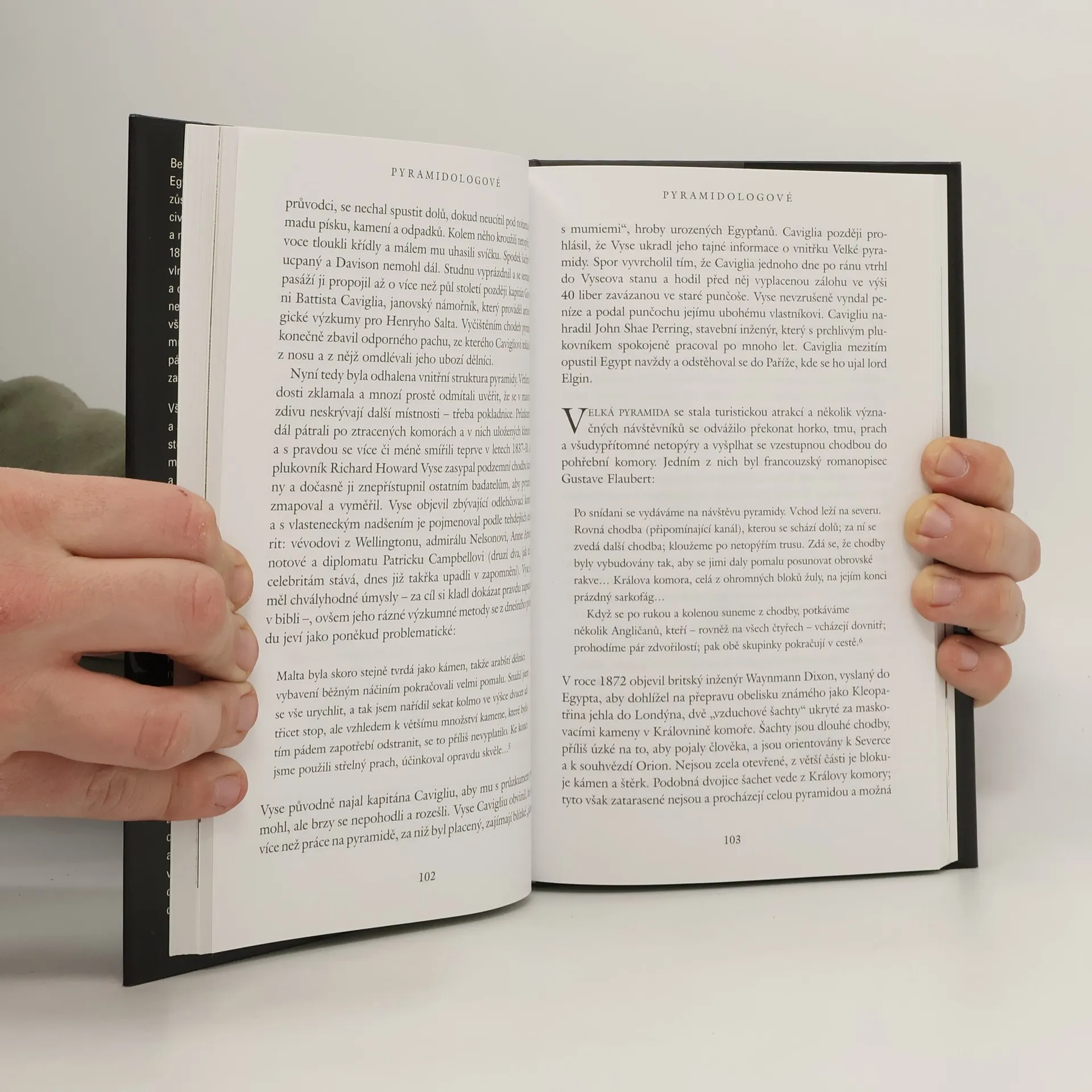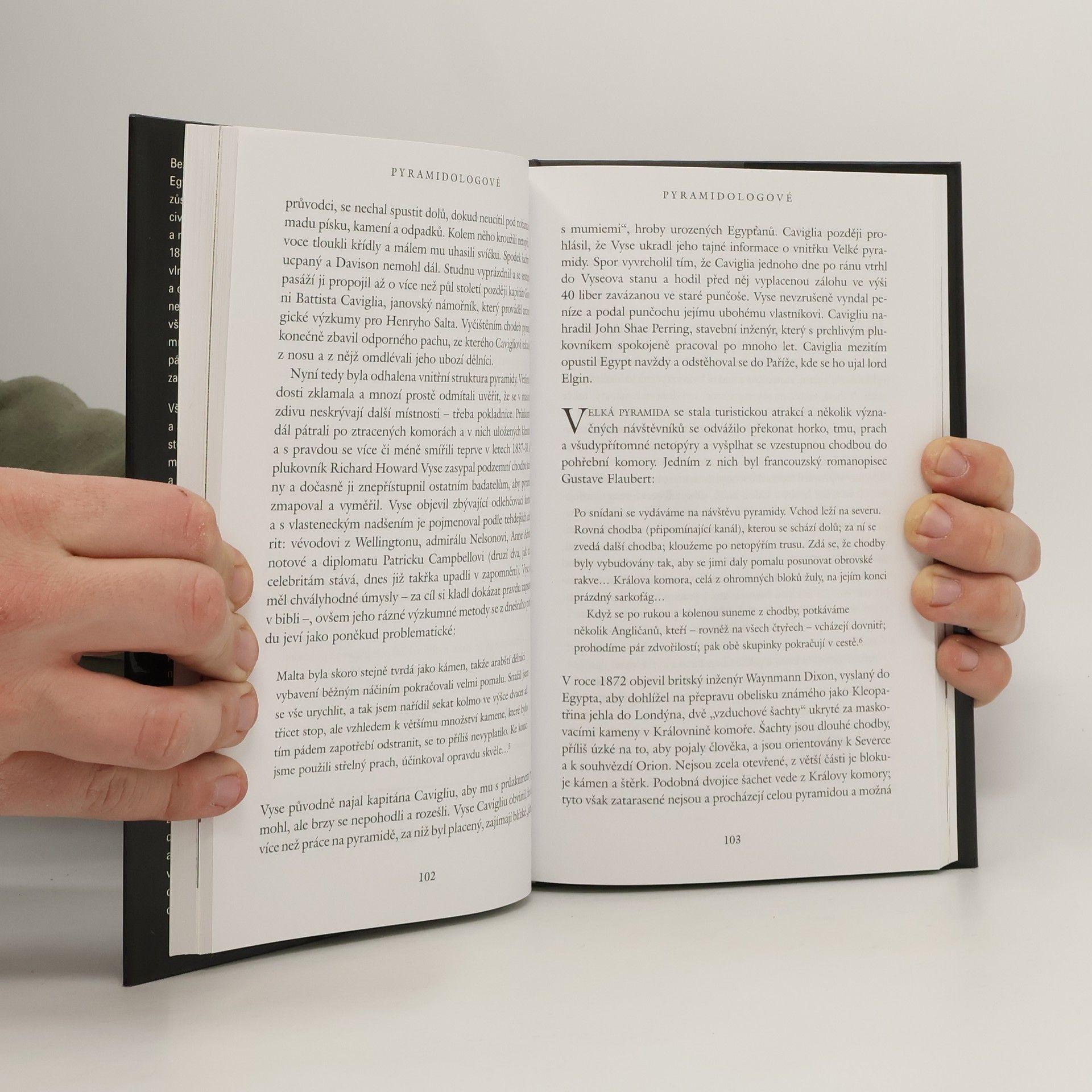 Znovunalezení ztracené civilizace Známá britská popularizátorka egyptských dějin se pokouší v této své další knize shrnout dějiny a badatelský přínos evropské egyptologie. Autorka rozdělila text do čtyř tematických částí. Počáteční zkoumá práci prvních egyptologů, od antických badatelů a historiků až k Napoleonově egyptské expedici (1798-1799), z ostatních sleduje zejména život a práci Jeana-Francoise Champolliona. Druhá část popisuje činnost různých hledačů starověkých pokladů a zabývá se i otázkou egyptských pyramid. Třetí část se věnuje systematickému bádání archeologů zejména v Údolí králů a čtvrtá obrací pozornost k vědeckému zpracování získaných znalostí a vzniku egyptologie jako samostatné vědecké disciplíny. Na závěr je připojen seznam použité literatury a seznam doporučené literatury (upraveno pro toto české vydání). Text je doplněn fotografiemi a kresbami.