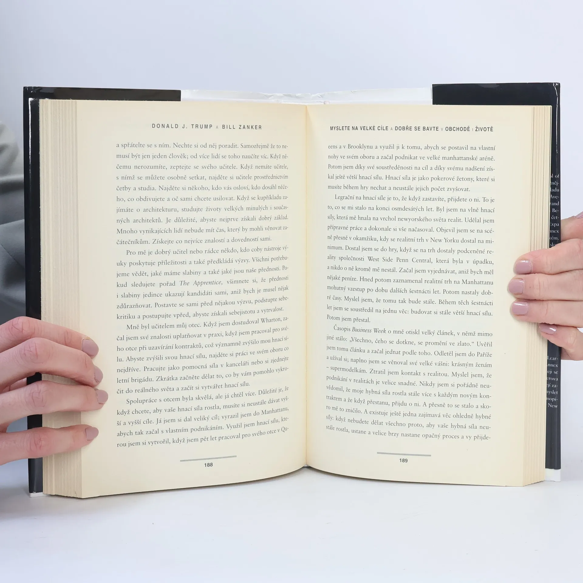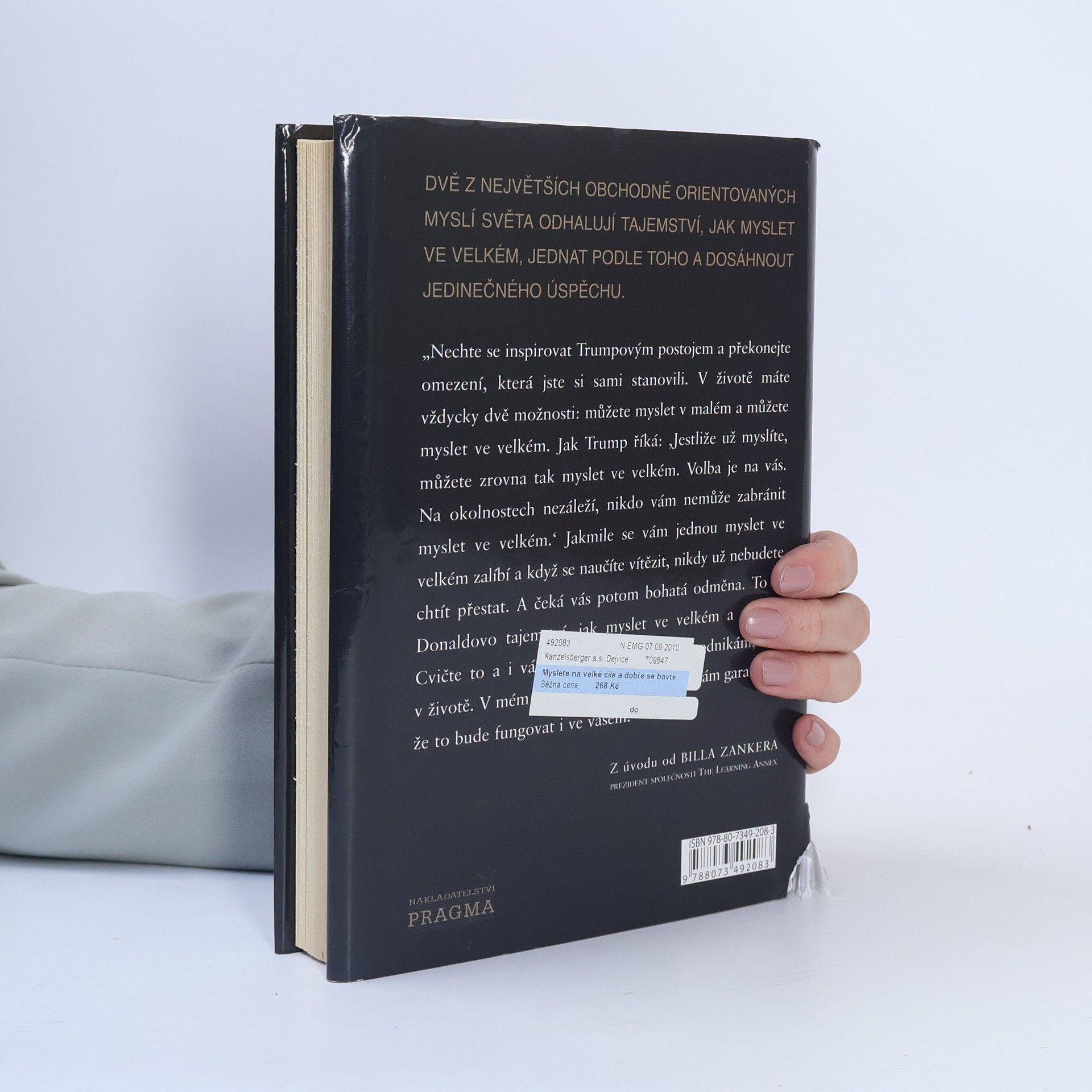 Donald J. Trump je ikona a dokonalý příklad amerického úspěchu. Hvězda pořadu The Apprentice a developer jedněch z nejprestižnějších staveb na světě. Bill Zanker založil firmu The Learning Annex s pěti tisíci dolary. Postupně z ní vytvořil firmu s příjmem pěti milionů dolarů ročně. To bylo předtím, než se potkal s Donaldem Trumpem. O třicet měsíců později, když se Zanker naučil myslet ve velkém, začala jeho firma The Learning Annex vydělávat prodejem sto milionů ročně. A rozrůstá se dál. Oba představují živé příklady toho, jak myslet ve velkém a jak poznat, kdy je třeba agresivně podpořit své názory, a to bez ohledu na to, co by mohli vaši kritikové nebo oponenti říci. To vám může napomoci dosáhnout co největších osobních a profesních úspěchů.