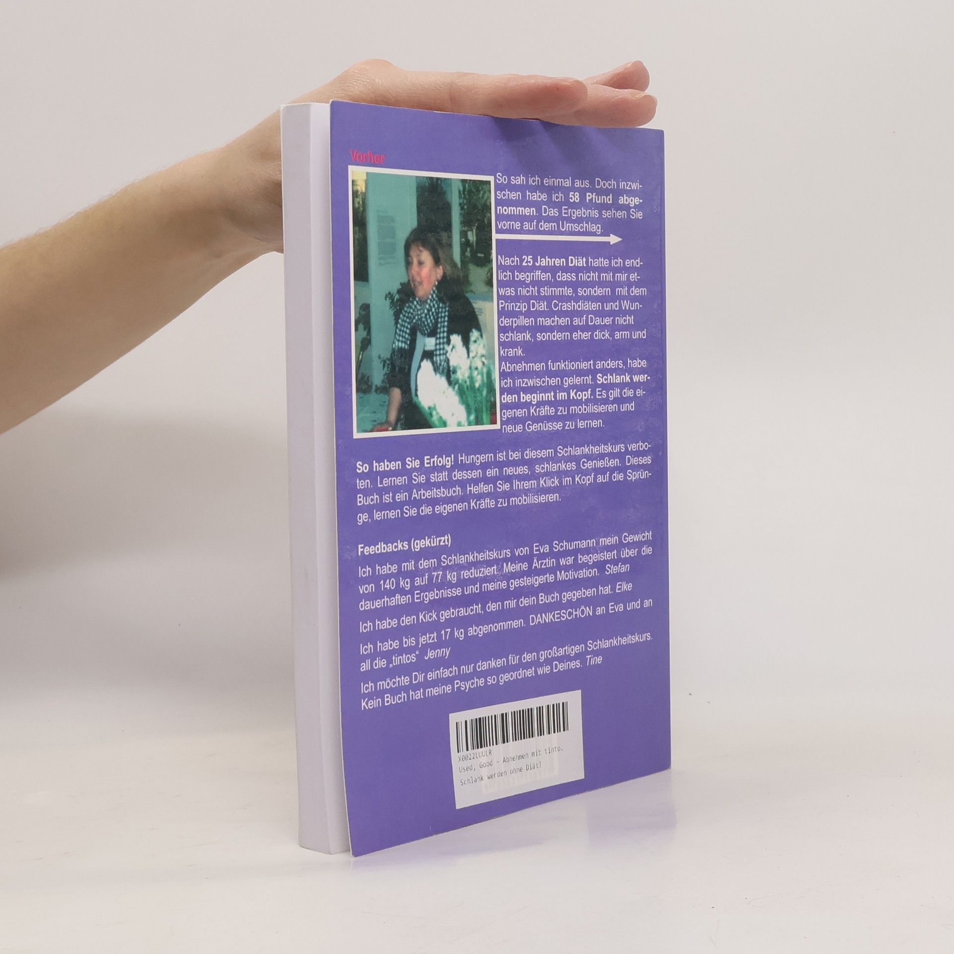 Warum funktioniert denn keine der Di ten dauerhaft, mit denen uns Frauenzeitschriften und Talkshows zuplastern? Nicht mit den Dicken stimmt etwas nicht, sondern mit dem Prinzip Di t. Meine ber 20-j hrige Di tgeschichte steht f r die unz hliger Leidensgef hrten und -gef hrtinnen: je mehr Di ten man macht, desto dicker wird man. Dauerhaft Abnehmen geht anders, wei ich heute. Schlank werden beginnt im Kopf, indem man ein besseres Ern hrungs- und Bewegungsverhalten kennen- und sch tzen lernt und dauerhaft verinnerlicht. Dieses Buch basiert auf dem erfolgreichen Schlankheitskurs aus dem Internet und hilft Ihnen auf Ihren pers nlichen Weg. Sie erhalten den notwendigen Motivationskick, wichtige Ern hrungsinformationen und die notwendigen Techniken Ihre Ziele in die Tat umzusetzen. Dieses Buch verhilft zu neuen Einsichten, zu mehr Durchhalteverm gen und ist ein gutes Werkzeug sowohl f r Menschen, die noch wenig ber Ern hrung wissen als auch f r Langzeitdi tgeplagte. Gewinnen Sie jetzt auch mehr Lebensqualit t!