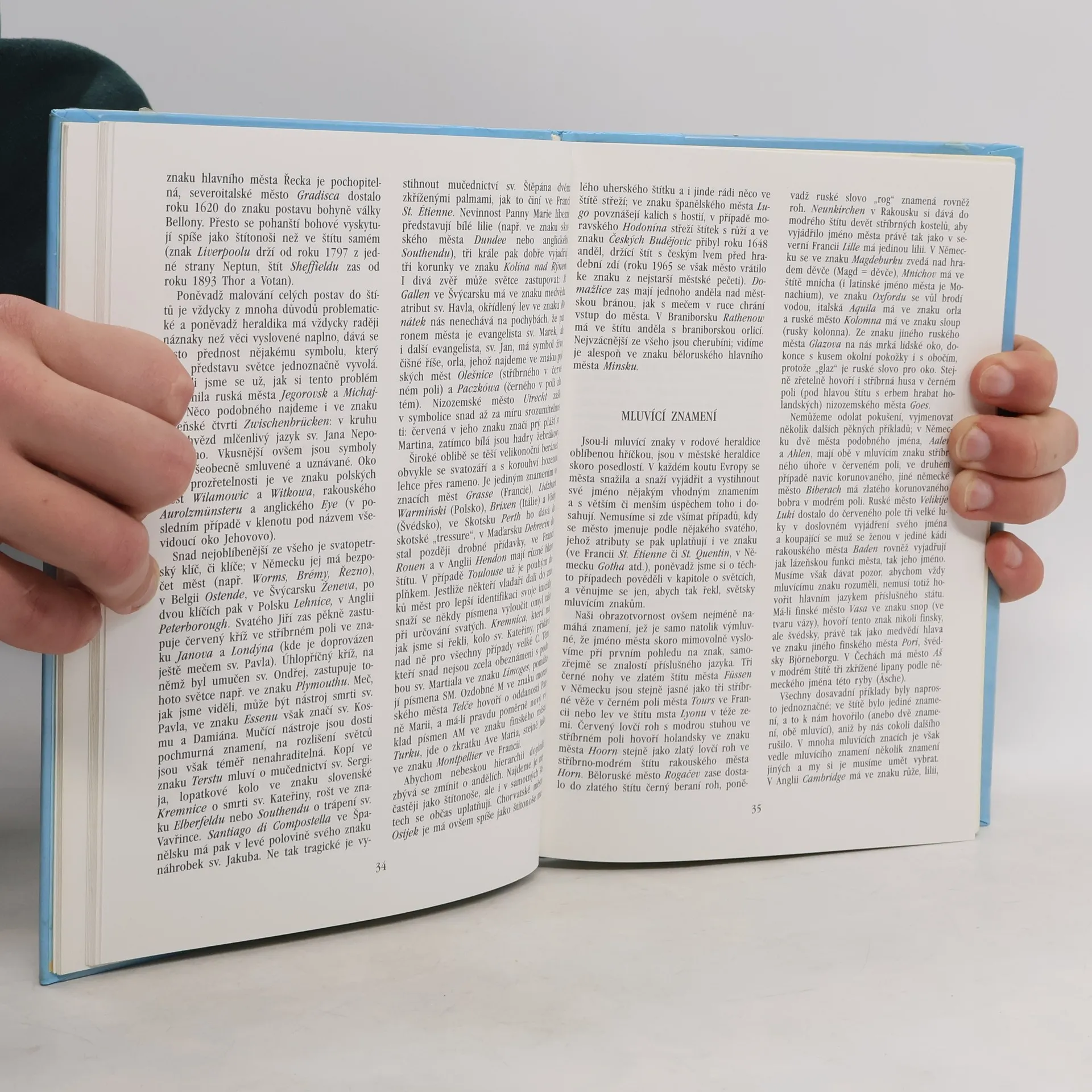Monografie předního českého heraldika charakterizuje slovem i obrazem oblast městské heraldiky. Poprvé vyšla v r. 1966 anglicky a teprve po téměř třiceti letech se dočkala českého, rozšířeného vydání. Obsahuje 321 barevných kreseb znaků evropských měst.