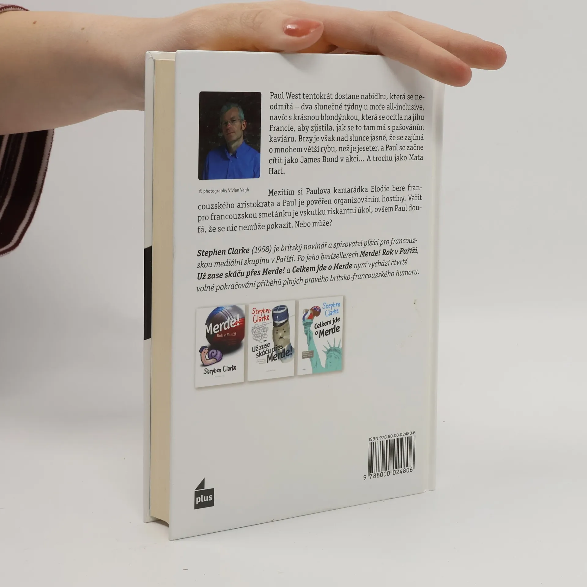 Paul West tentokrát dostane nabídku, která se neodmítá – dva slunečné týdny all-inclusive, navíc s krásnou blondýnkou, která se ocitla na jihu Francie, aby zjistila, jak se to tam má s pašováním kaviáru – ale brzy je nad slunce jasné, že se zajímá o mnohem větší rybu, než je jeseter, a Paul se začne cítit jako James Bond v akci... A trochu jako Mata Hari. Mezitím si Paulova kamarádka Elodie bere francouzského aristokrata a Paul je pověřen organizováním hostiny. Vařit pro francouzskou smetánku je vskutku riskantní úkol, ovšem Paul se ujišťuje, že se nic nemůže pokazit. Nebo může? Stephen Clarke (1958) je britský novinář a spisovatel píšící pro francouzskou mediální skupinu v Paříži. Po jeho bestsellerech Merde! Rok v Paříži, Už zase skáču přes Merde! a Celkem jde o Merde nyní vychází čtvrté volné pokračování příběhů plných pravého britsko-francouzského humoru.