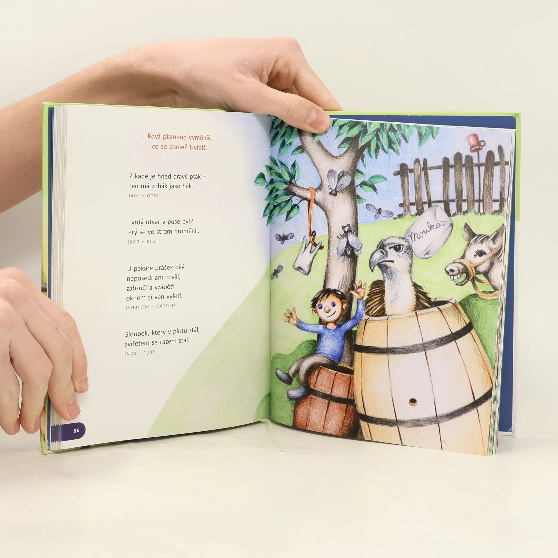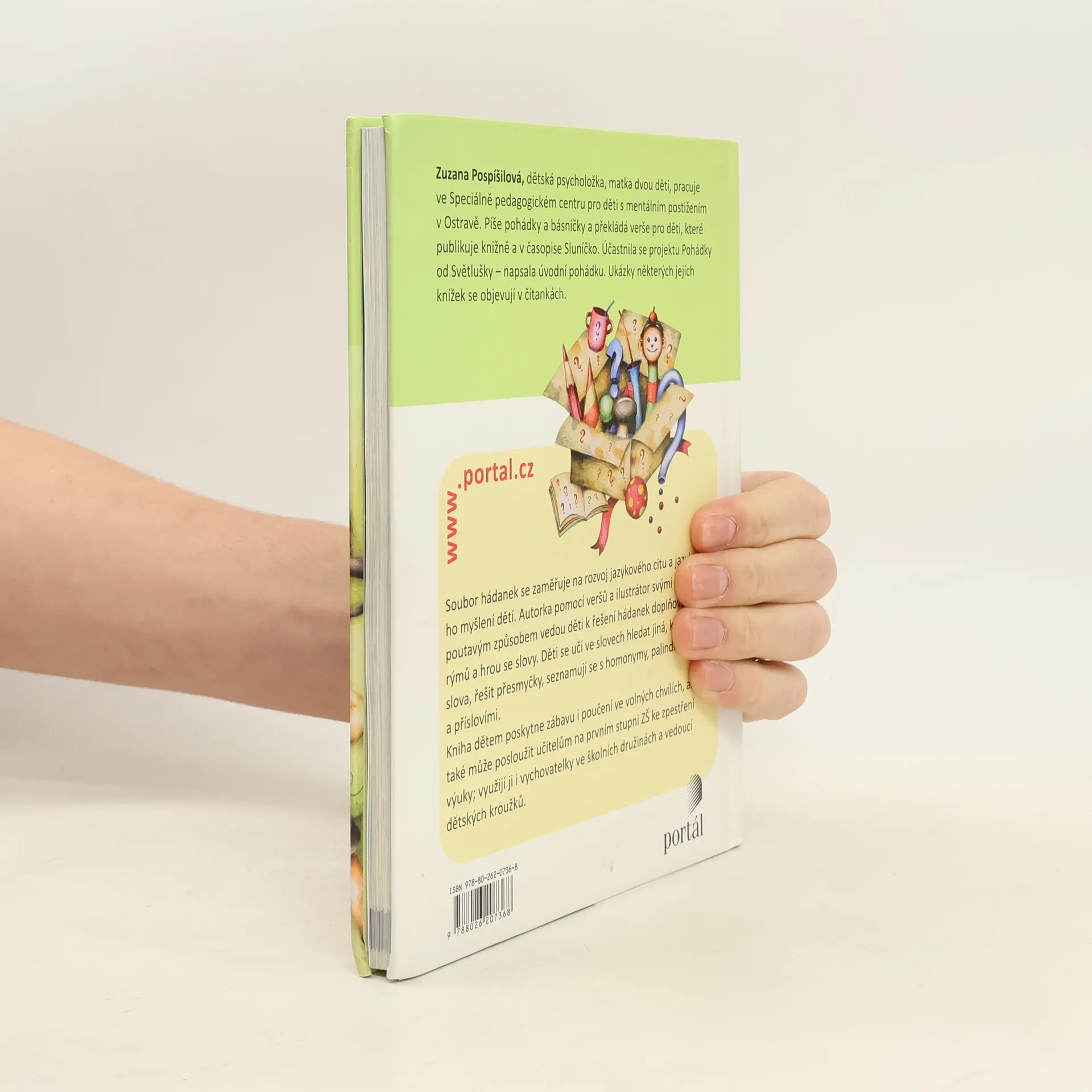 Soubor hádanek pro děti mladšího školního věku i šikovné předškoláky, které jsou zaměřeny na rozvoj jazykového citu a jazykového myšlení dětí. Cílem autorky je poutavým způsobem seznámit děti s homonymy, příslovími, učit je ve slovech hledat jiná – kratší slova, řešit přesmyčky, doplňovat rýmy a hrát si se slovy. Kniha poskytne zábavu i poučení dětem ve volných chvílích, ale také může posloužit učitelům na prvním stupni ZŠ ke zpestření výuky a vychovatelkám ve školních družinách. Využít ji mohou i učitelky pro předškoláky v MŠ i vedoucí dětských kroužků. Zuzana Pospíšilová, dětská psycholožka, matka dvou dětí, pracuje ve Speciálně pedagogickém centru pro děti s mentálním postižením v Ostravě. Píše pohádky a básničky pro děti, které publikuje knižně (Portál, Fragment, Grada, Junior, Axióma) a v časopise Sluníčko. Účastnila se projektu Pohádky od Světlušky a napsala úvodní pohádku, překládá verše pro nakladatelství Príroda. Ukázky z některých jejích knížek se objevují v Čítankách.