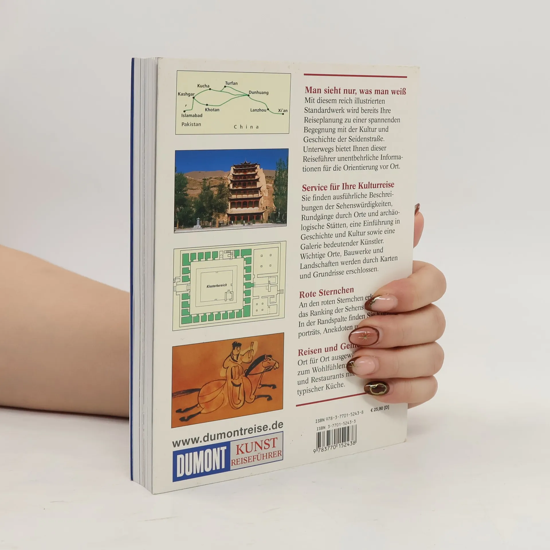„Seidenstraße“ weckt Bilder von Kamelkarawanen, Wüsten, schneebedeckten Gipfeln und bunten Basaren. Die Bezeichnung, geprägt von Ferdinand Freiherr von Richthofen, ist irreführend, da die über 10.000 km lange Handelsroute aus zahlreichen parallelen Karawanenwegen bestand. Anke Kausch fokussiert sich auf den chinesischen Abschnitt der Seidenstraße. Ihre Reise beginnt in Beijing, dem ehemaligen Khanbalik des Mongolenkaisers Kubilai Khan, wo Marco Polo einst diente. Sie erkundet die archäologischen Schätze von Xi'an, durchquert die Wüste Gobi und erreicht die beeindruckenden buddhistischen Höhlentempel von Dunhuang. Abstecher ins tibetische Hochland führen zu den bedeutenden Lamaklöstern Labrang und Kumbum. Am „Jadetor“ teilt sich der Handelsweg in eine südliche und eine nördliche Route, die die Wüste Taklamakan umgeht. Kausch besucht die Oasenstädte Hami und Turfan sowie Urumqi, Kucha, Korla und Khotan mit ihren archäologischen Stätten. Von Kashgar mit dem berühmten Sonntagsmarkt folgt sie der Pilgerroute buddhistischer Mönche über den Karakorum Highway nach Pakistan, vorbei am Nanga Parbat nach Taxila, dem Zentrum der Gandhara-Kultur. Ihre Reise endet in Islamabad. Auch kulinarische Genüsse und stilvolle Unterkünfte kommen nicht zu kurz, wobei die Autorin persönliche Empfehlungen für Hotels und Restaurants mit Charme gibt.
