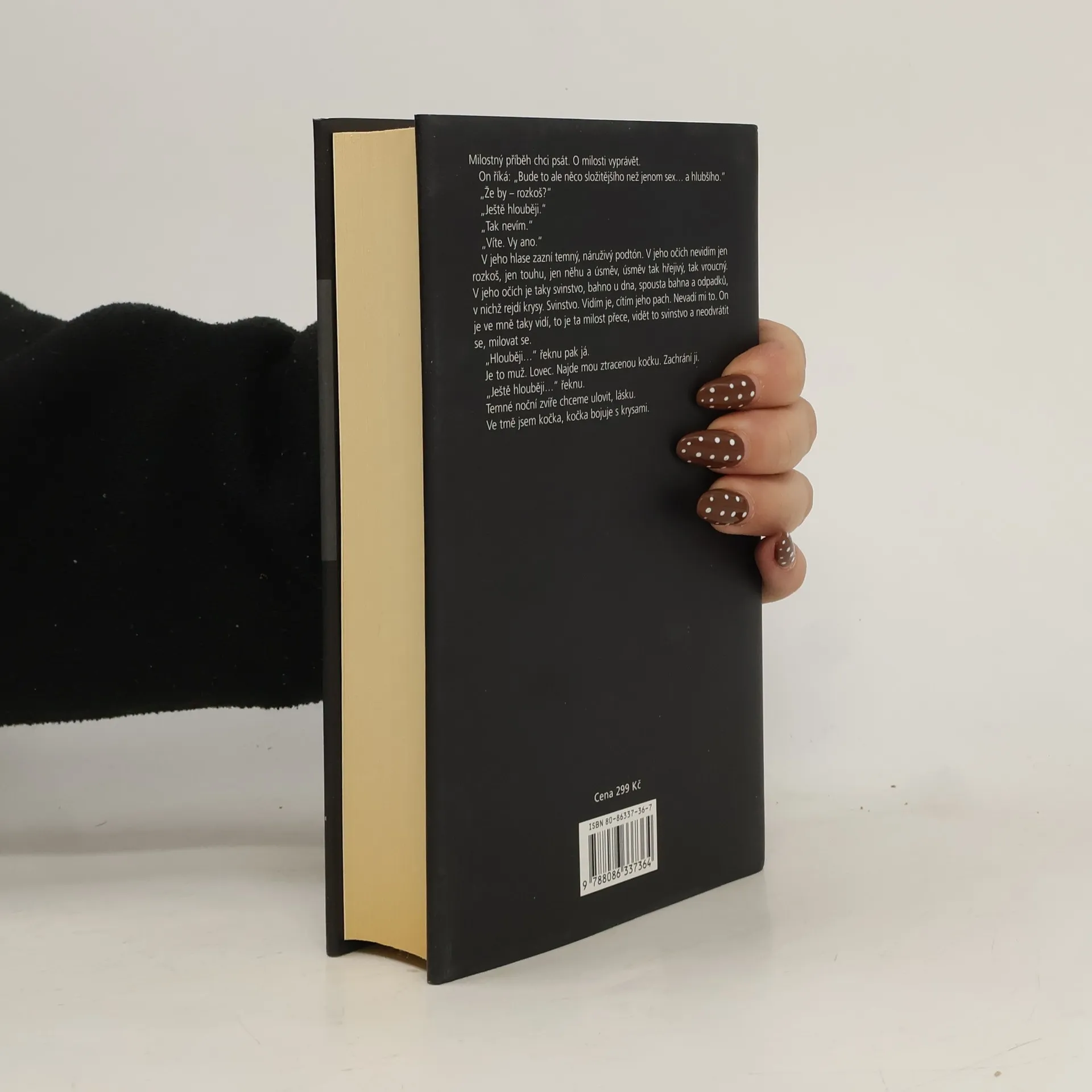 Hrdinka žije ve vyhořelém vztahu s vyléčeným alkoholikem, pracuje v psychicky náročném zaměstnání sociální pracovnice a propadá se do depresí z osamělosti. Nejsilnější cit, který ve své vyprahlosti cítí, je láska ke kočce. Proto když se objeví podivný muž s temnou minulostí a s cejchem zvrhlíka, který miloval "nadstandartně", otevře v hrdince zřídla divoké vášně, jíž nemůže odolat. Ačkoli má dojem, že je nad věcí a že má díky své profesi jasno, je toho příliš mnoho, co neví... Hrdinčino líčení je do krajnosti otevřené, s hořkým, okázalým cynismem a vulgaritou se hrdinka nezastaví před sebetemnějším záhybem vlastní duše ani před nejintimnějšími detaily jejího sexuálního prožívání.