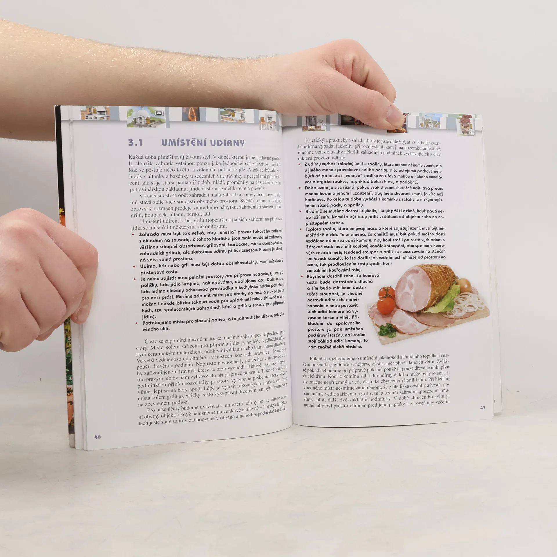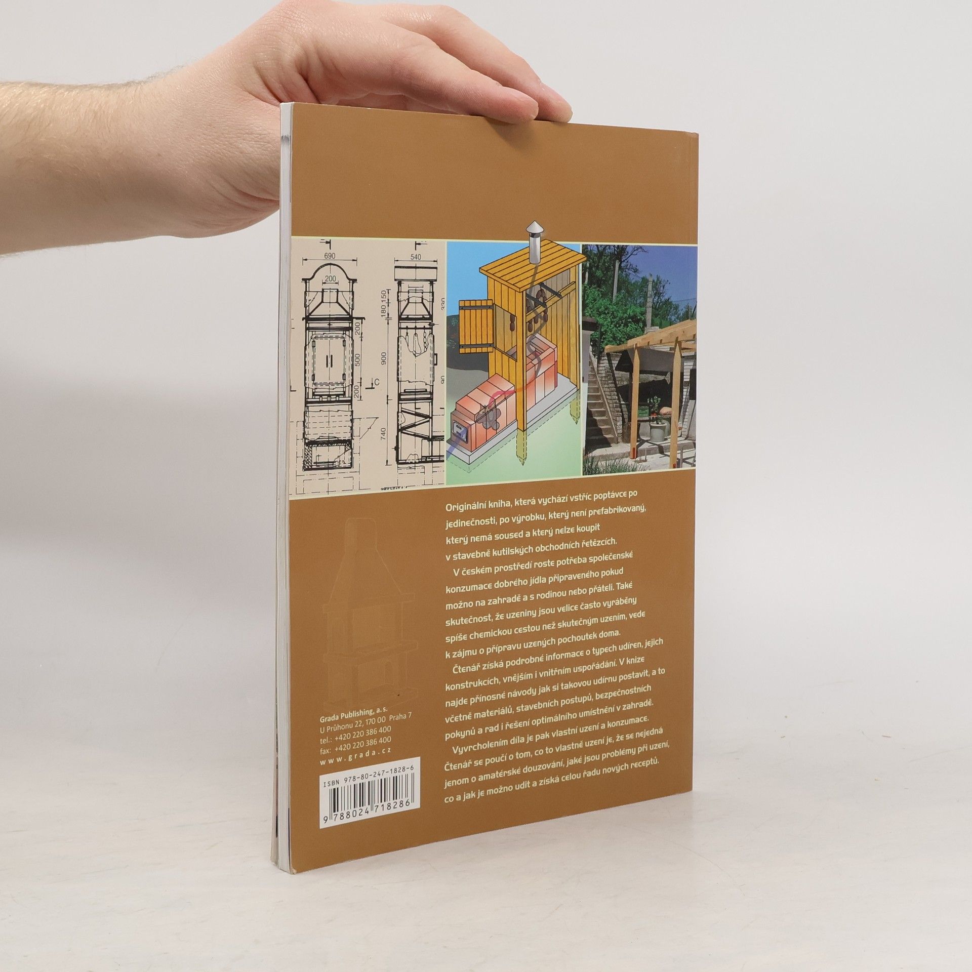 Originální kniha, která vychází vstříc poptávce po jedinečnosti, po výrobku, který není prefabrikovaný, který nemá soused a který nelze koupit v stavebně kutilských obchodních řetězcích. V českém prostředí roste potřeba společenské konzumace dobrého jídla připraveného pokud možno na zahradě a s rodinou nebo přáteli. Také skutečnost, že uzeniny jsou velice často vyráběny spíše chemickou cestou než skutečným uzením, vede k zájmu o přípravu uzených pochoutek doma. Čtenář získá podrobné informace o typech udíren, jejich konstrukcích, vnějším i vnitřním uspořádání. V knize najde přínosné návody jak si takovou udírnu postavit, a to včetně materiálů, stavebních postupů, bezpečnostních pokynů a rad i řešení optimálního umístnění v zahradě. Vyvrcholením díla je pak vlastní uzení a konzumace. Čtenář se poučí o tom, co to vlastně uzení je, že se nejedná jenom o amatérské douzování, jaké jsou problémy při uzení, co a jak je možno udit a získá celou řadu nových receptů.