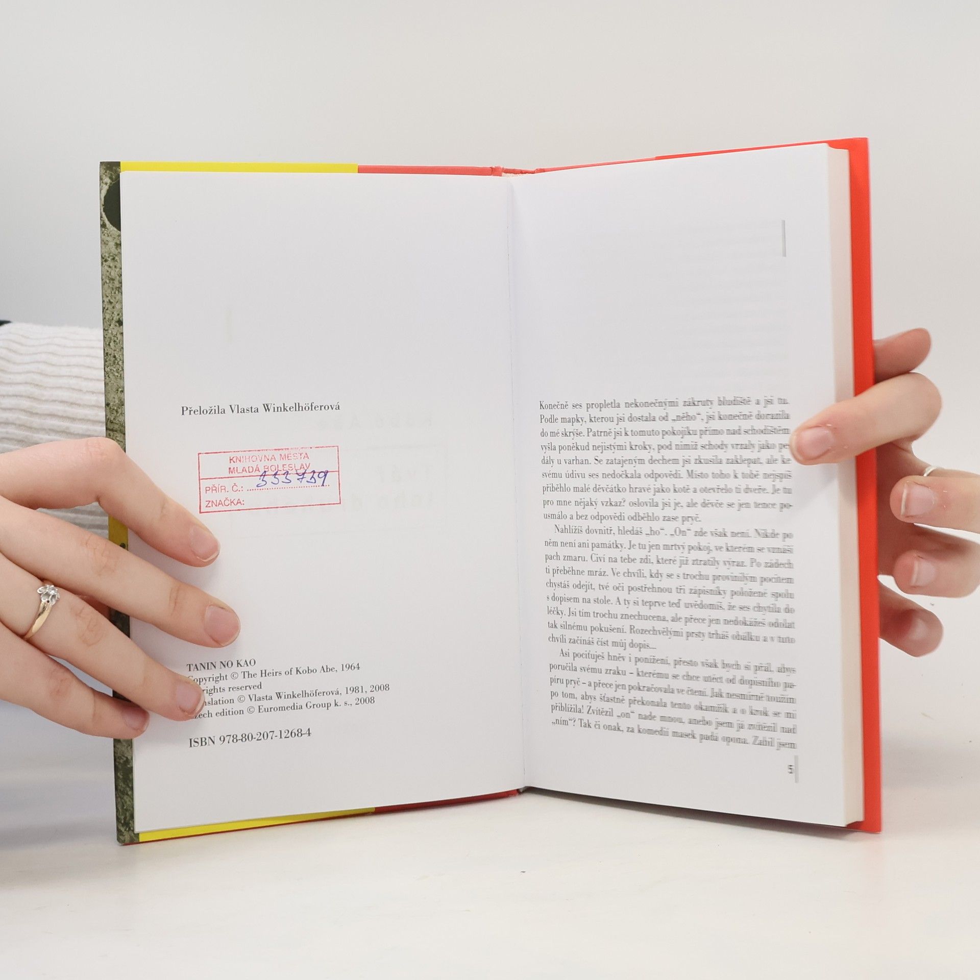 Prózy Kóbó Abeho patří ve světě k nejznámějším dílům z japonské literární produkce druhé poloviny 20. století. Tématem většiny jeho děl je vnitřní svět člověka, u něhož střet s realitou vyvolává pocity zmatku, nejistoty a stresu. Cítí se v ní ohrožen a osamocen a touží z ní unikout. Abeho dílo přitahuje čtenáře originální syntézou skutečnosti a fantastických prvků, satiry a psychologického románu s téměř detektivním napětím, sci-fi a absurdního dramatu, stejně jako inteligentním, místy provokativním humorem. Pro řadu Abeho próz je charakteristická bezejmennost postav. Také zde nám nijak nepojmenovaný vypravěč v první osobě předkládá poznámky v černém, šedém a bílém zápisníku určené jeho ženě. Román Tvář toho druhého je dramatickým příběhem vědce, jemuž výbuch v laboratoři znetvořil tvář. Přes úsilí lékařů zůstává zohyzděn, takže se mezi lidmi zprvu pohybuje jen s obvazem. Neschopen kontaktu s okolím, stává se anonymní, záhadnou bytostí bez tváře. Chce tomu čelit, a proto si vyrobí dokonalou masku, která mu má umožnit návrat mezi lidi. Změněná podoba však změní i jeho chování a uvažování. Zkouší své nové já v nejrůznějších situacích - avšak život "toho druhého" vyústí v hlubokou existenciální rozpolcenost a nakonec i ztrátu jediné osoby, která by mu mohla zůstat nablízku.