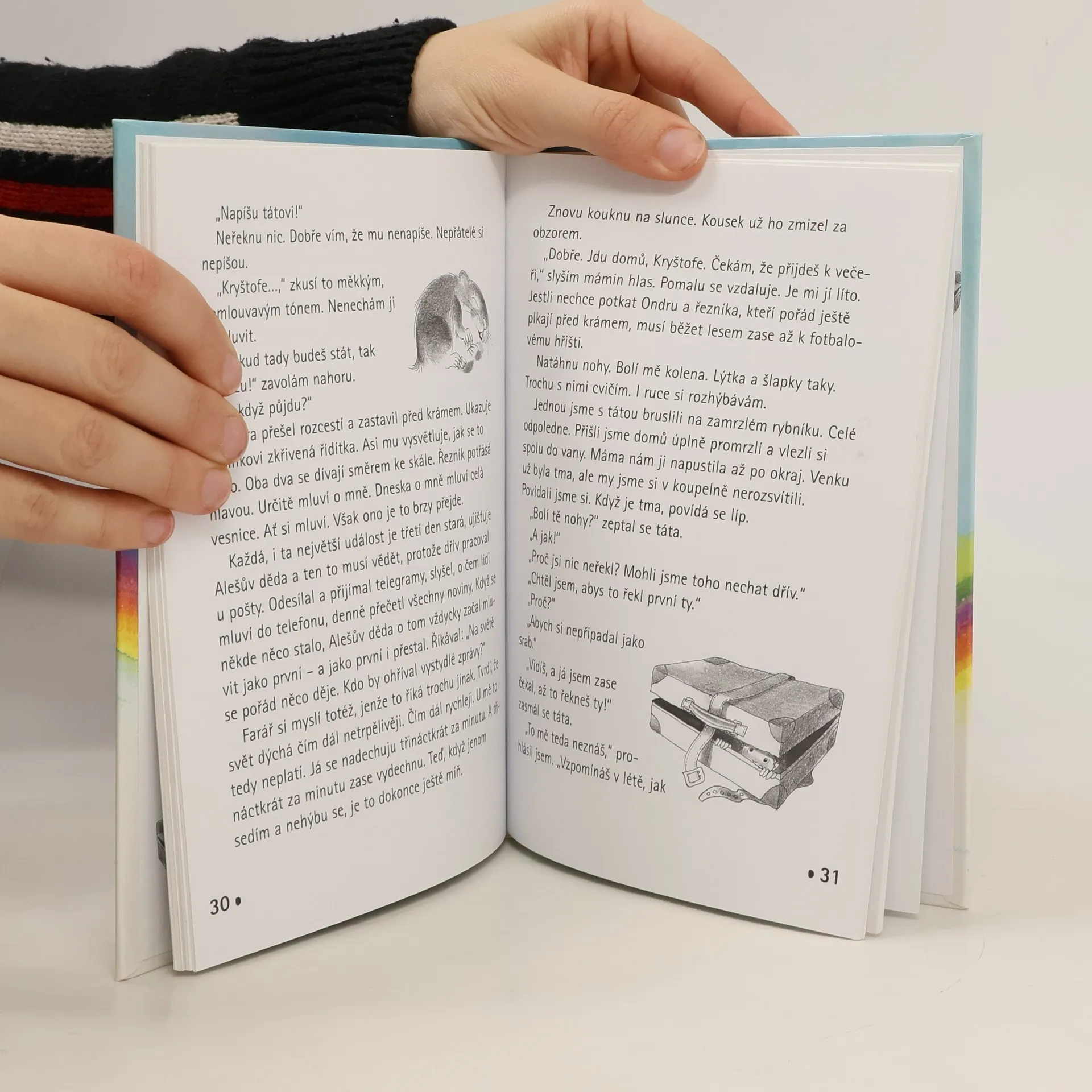 Zajímavý klukovský příběh psaný s vtipnou nadsázkou. Datum vydání: červen 2004 Věk: od 8 let Vypráví o tom, co se může stát, když se na člověka všechno valí a duše je přetížená, a především o tom, že se věci nemají řešit unáhleně, ale s chladnou hlavou. Hlavním hrdinou je devítiletý Kryštof a nikdo neví, proč právě teď sedí na vysoké skále na kraji vsi a odmítá slézt dolů. Nahoře je zima, stmívá se, ale on neoblomně dřepí dál v nebezpečných výšinách. A při tom si v krátkých záblescích vzpomíná na to, co ho k tomuto činu vlastně vedlo...