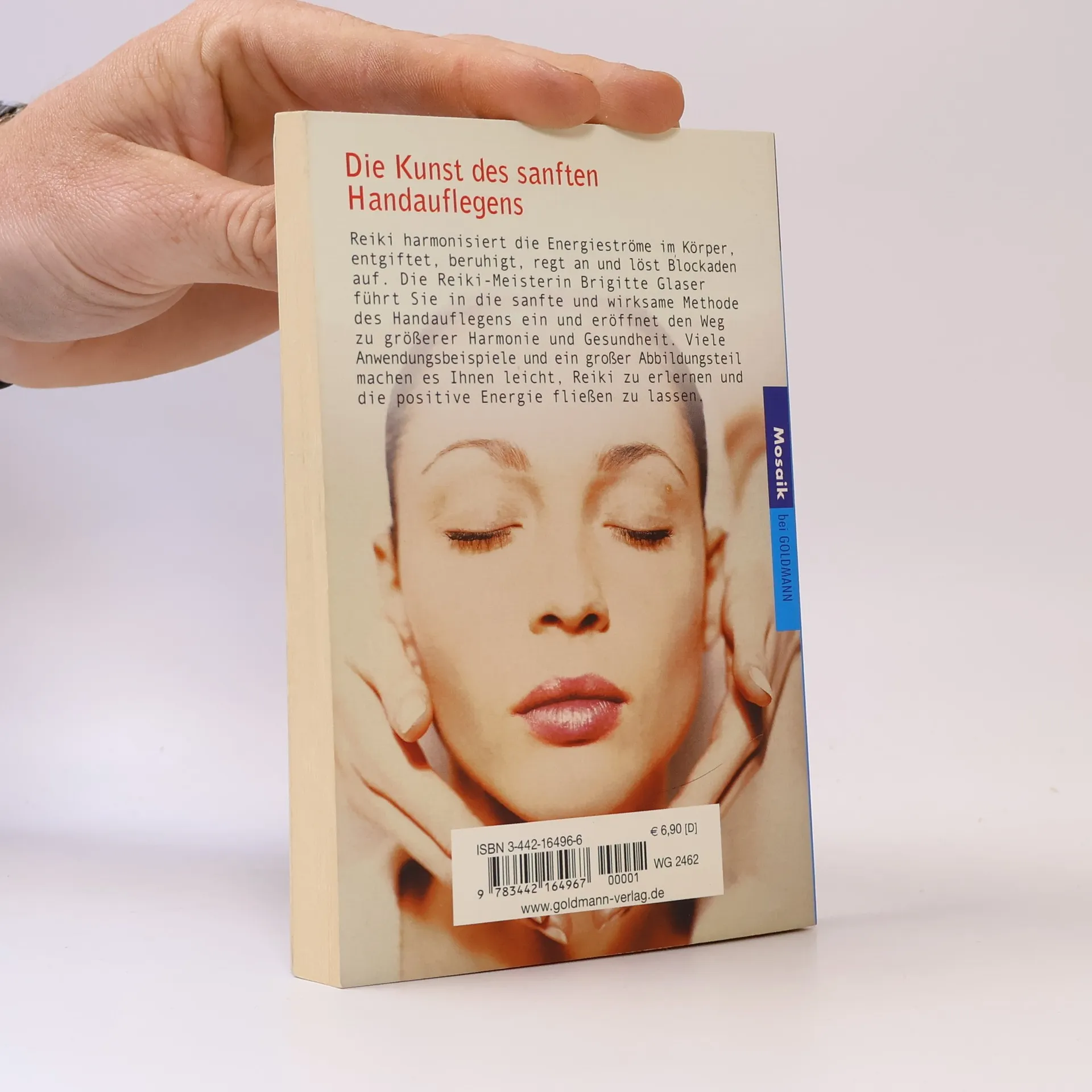 Die Reiki-Meisterin Brigitte Glaser führt in die sanfte, wirksame Methode des Handauflegens ein. Reiki bedeutet so viel wie „universelle Lebensenergie“. Es wirkt heilend, entgiftend, harmonisierend, unterstützend, beruhigend oder anregend auf den gesamten Organismus und löst Blockaden auf. Das Buch enthält viele Anwendungsbeispiele und einen großen Abbildungsteil. So wird es jedem möglich, Reiki zu erlernen und die positive Energie fließen zu lassen.