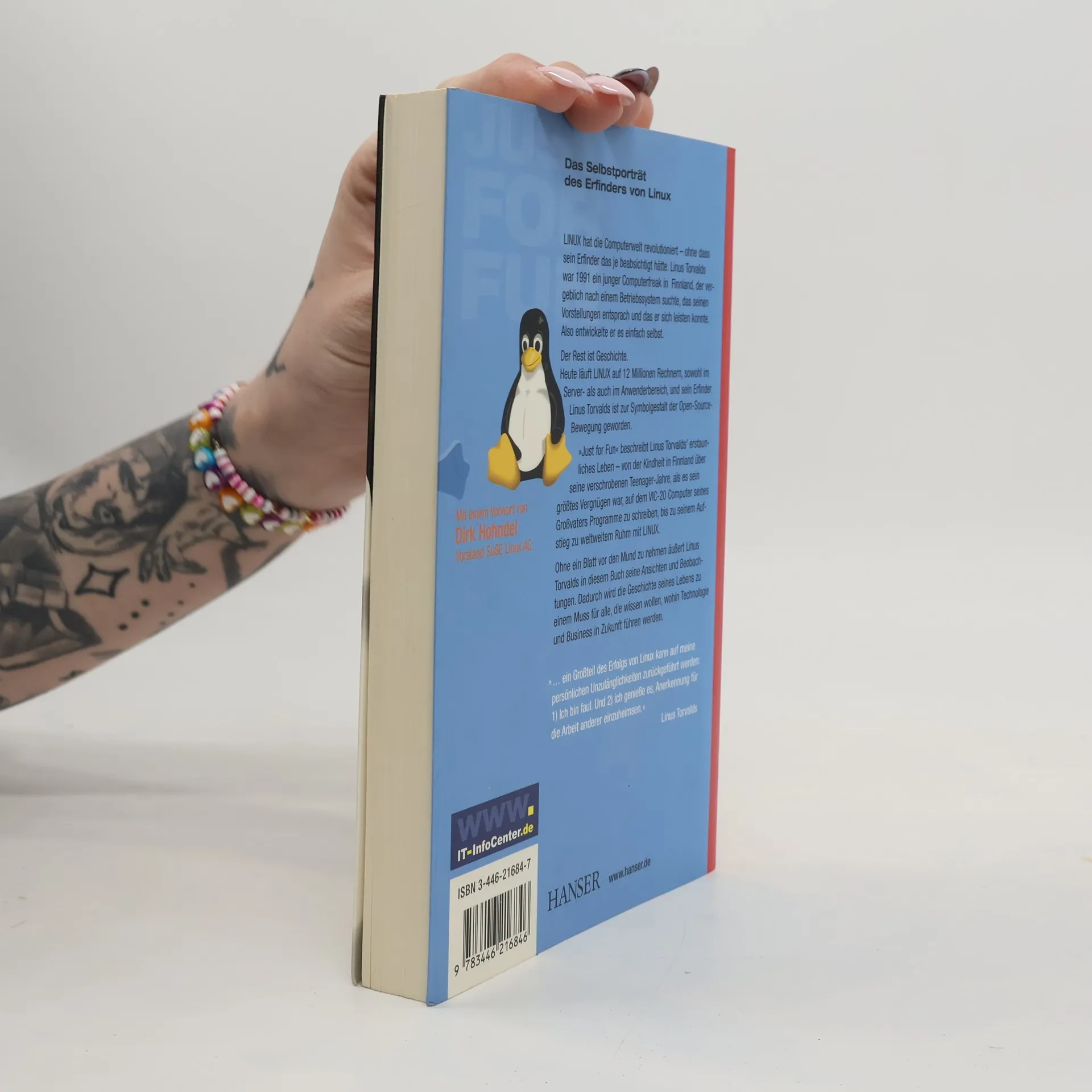 Das Selbstporträt des Erfinders von Linux LINUX hat die Computerwelt revolutioniert - ohne dass sein Erfinder das je beabsichtigt hätte. Linus Torvalds war 1991 ein junger Computerfreak in Finnland, der vergeblich nach einem Betriebssystem suchte, das seinen Vorstellungen entsprach und das er sich leisten konnte. Also entwickelte er es einfach selbst. Der Rest ist Geschichte. Heute läuft LINUX auf 12 Millionen Rechnern, sowohl im Server- als auch im Anwenderbereich, und sein Erfinder Linus Torvalds ist zur Symbolgestalt der Open-Source-Bewegung geworden. Just for Fun beschreibt Linus Torvalds' erstaunliches Leben - von der Kindheit in Finnland über seine verschrobenen Teenager-Jahre, als es sein größtes Vergnügen war, auf dem VIC-20 Computer seines Großvaters Programme zu schreiben, bis zu seinem Aufstieg zu weltweitem Ruhm mit LINUX. Ohne ein Blatt vor den Mund zu nehmen äußert Linus Torvalds in diesem Buch seine Ansichten und Beobachtungen. Dadurch wird die Geschichte seines Lebens zu einem Muss für alle, die wissen wollen, wohin Technologie und Business in Zukunft führen werden.