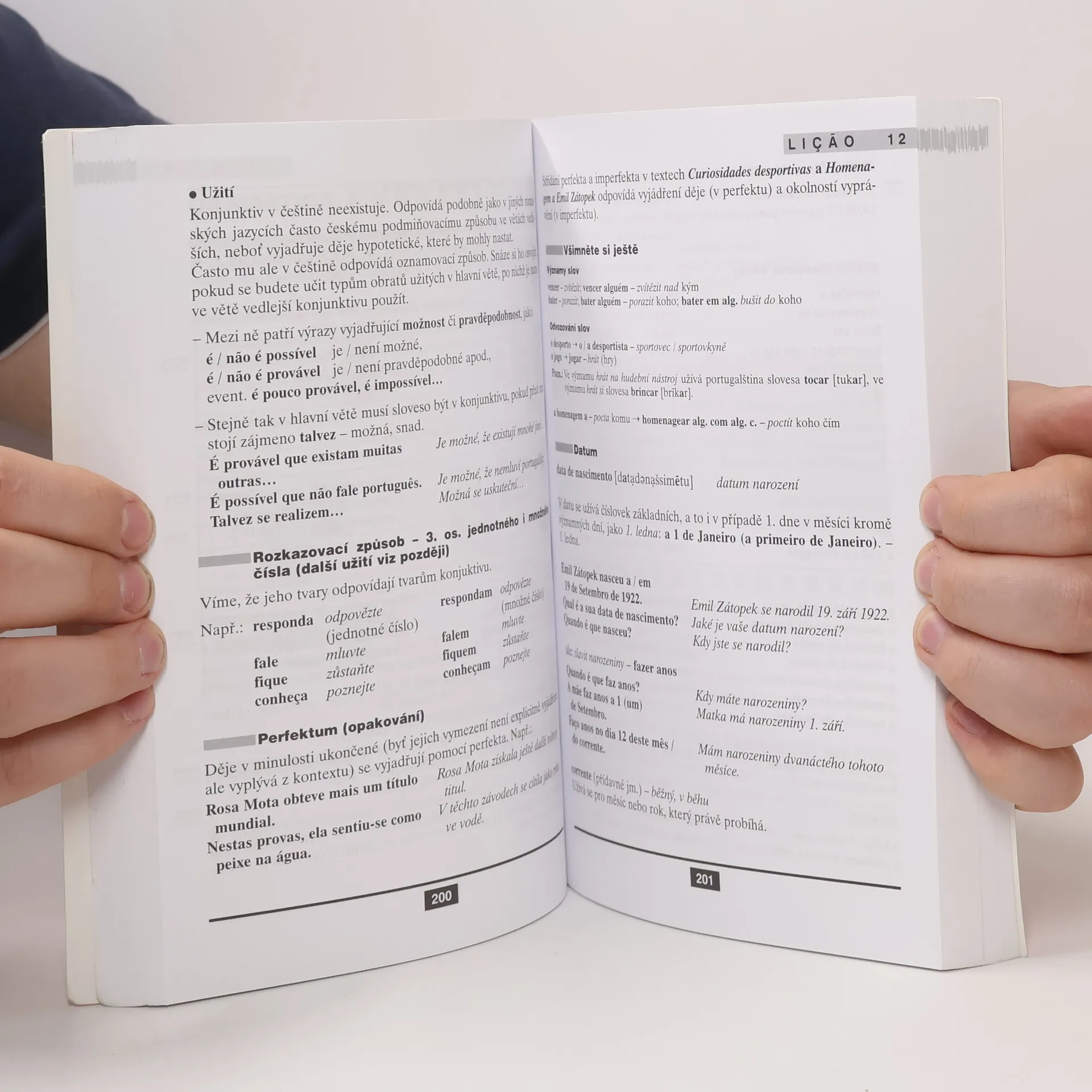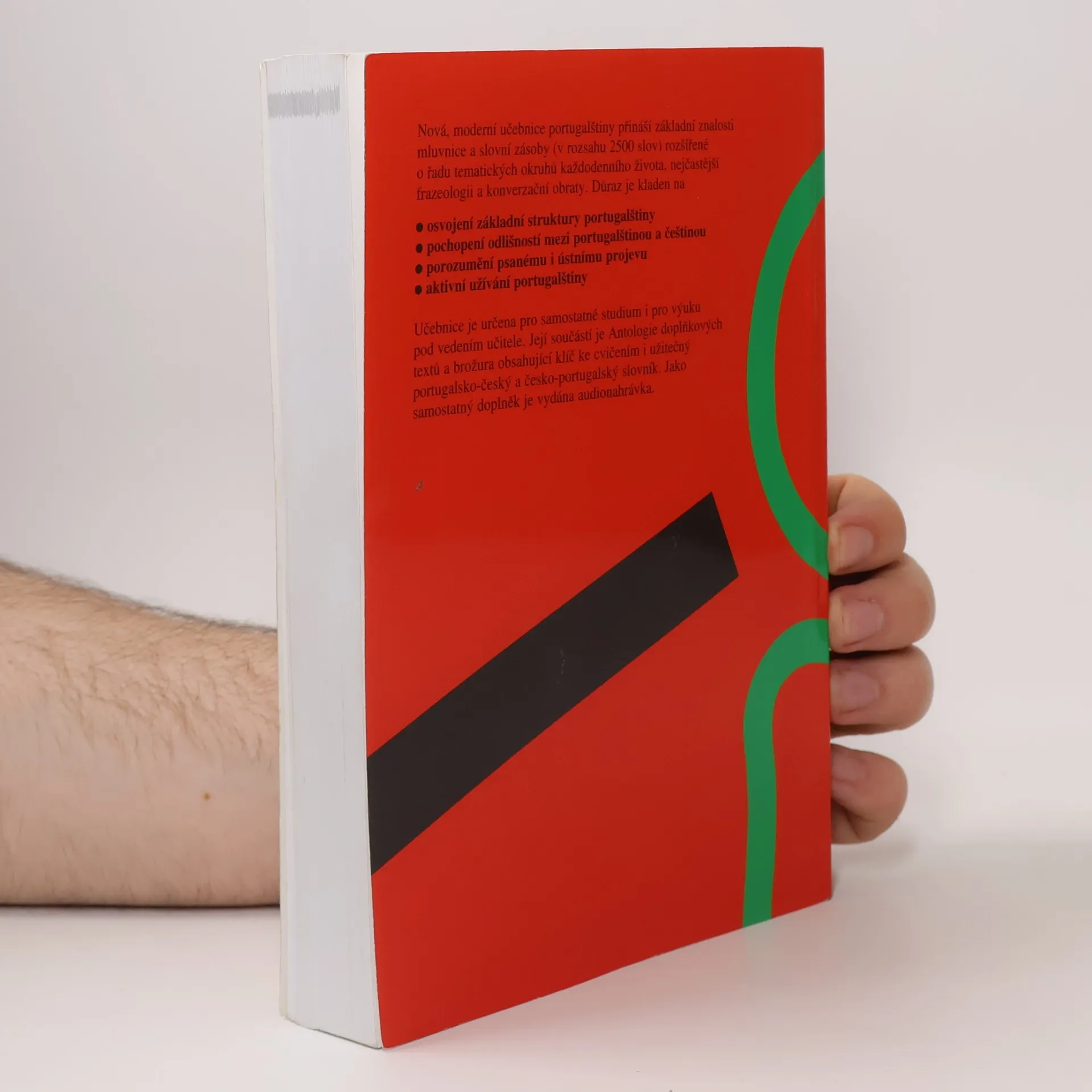 Učebnici určenou jak pro samostatné studium, tak pro výuku pod vedením učitele, tvoří 31 lekcí plus lekce úvodní se zásadami výslovnosti. Je zaměřena na evropskou portugalštinu a hlavními odlišnostmi portugalštiny brazilské se zabývá pouze ve dvou závěrečných lekcích. Každá lekce se skládá z úvodních textů, slovníčku k lekci (základního a doplňkového), mluvnického výkladu a řady cvičení s klíčem. Do učebnice je začleněna též Antologie doplňkových textů. Studující mají k dispozici portugalsko-český slovník, který obsahuje základní slovní zásobu učebnice (2 500 slov), i slovník česko-portugalský (stejného rozsahu).