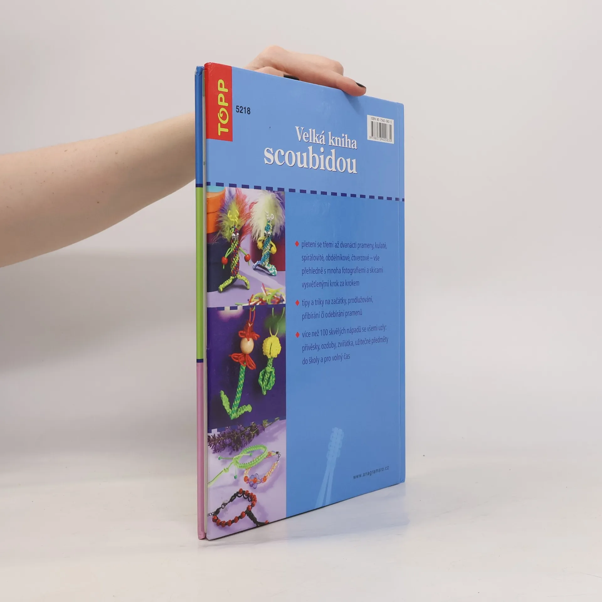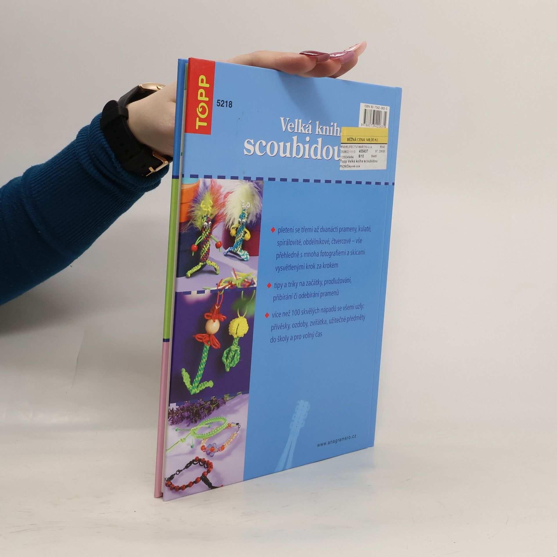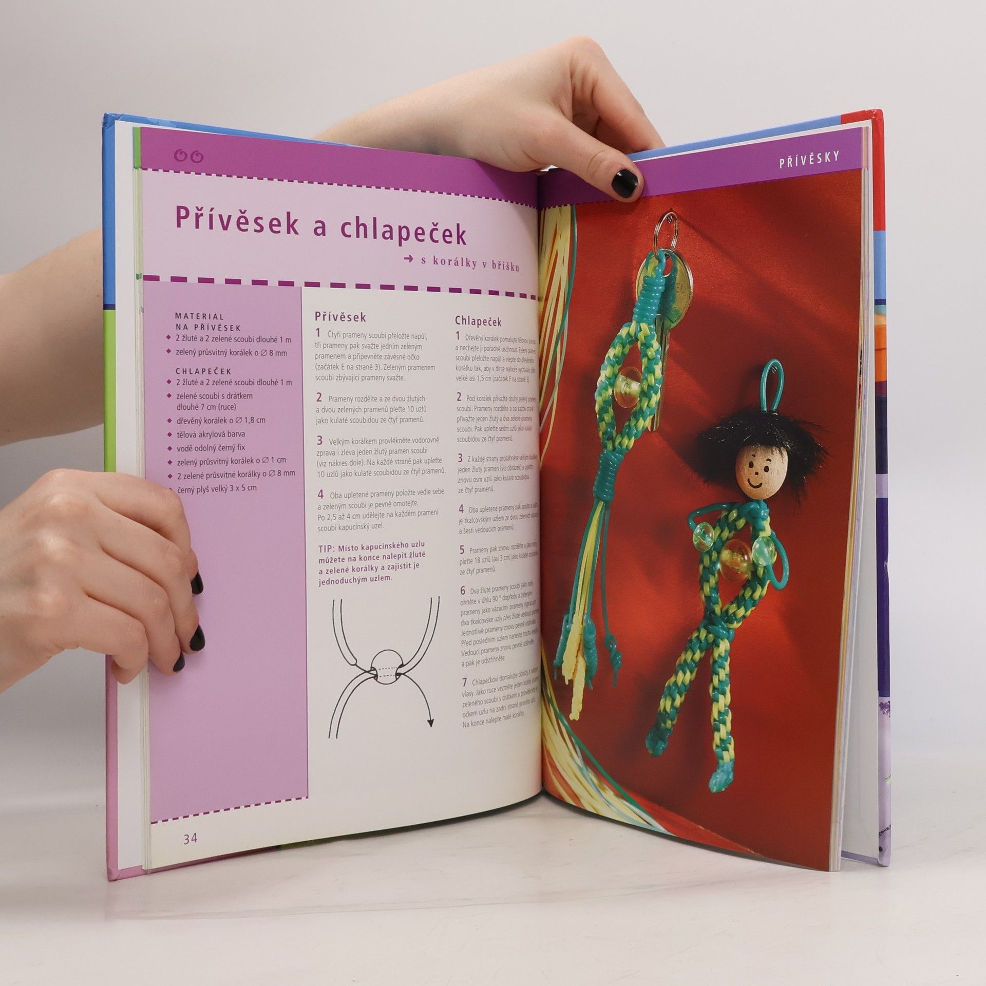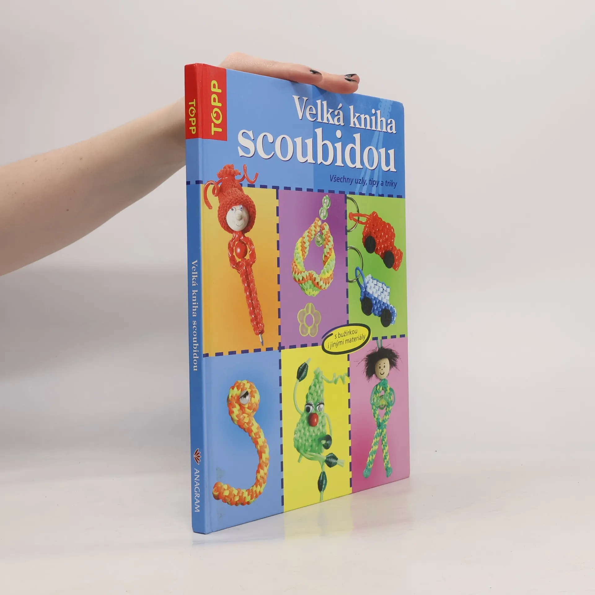 Podtitul: všechny uzly, tipy a triky : [s bužírkou i jinými materiály Ze scoubi - barevných bužírek - upletete nádherné věci. Náramky, přívěsky na klíče, barevná zvířátka či pestré propisky - vaší tvořivosti se meze nekladou. V této knize najdete více než 100 skvělých nápadů vytvořených ze tří až dvanácti pramenů scoubi - kulaté, spirálovité či obdélníkové scoubidou. Díky přesným popisům, barevným ilustracím a podrobně popsaným a rozkresleným postupům se vám jistě podaří vytvořit si malá umělecká dílka pro sebe i své kamarády.