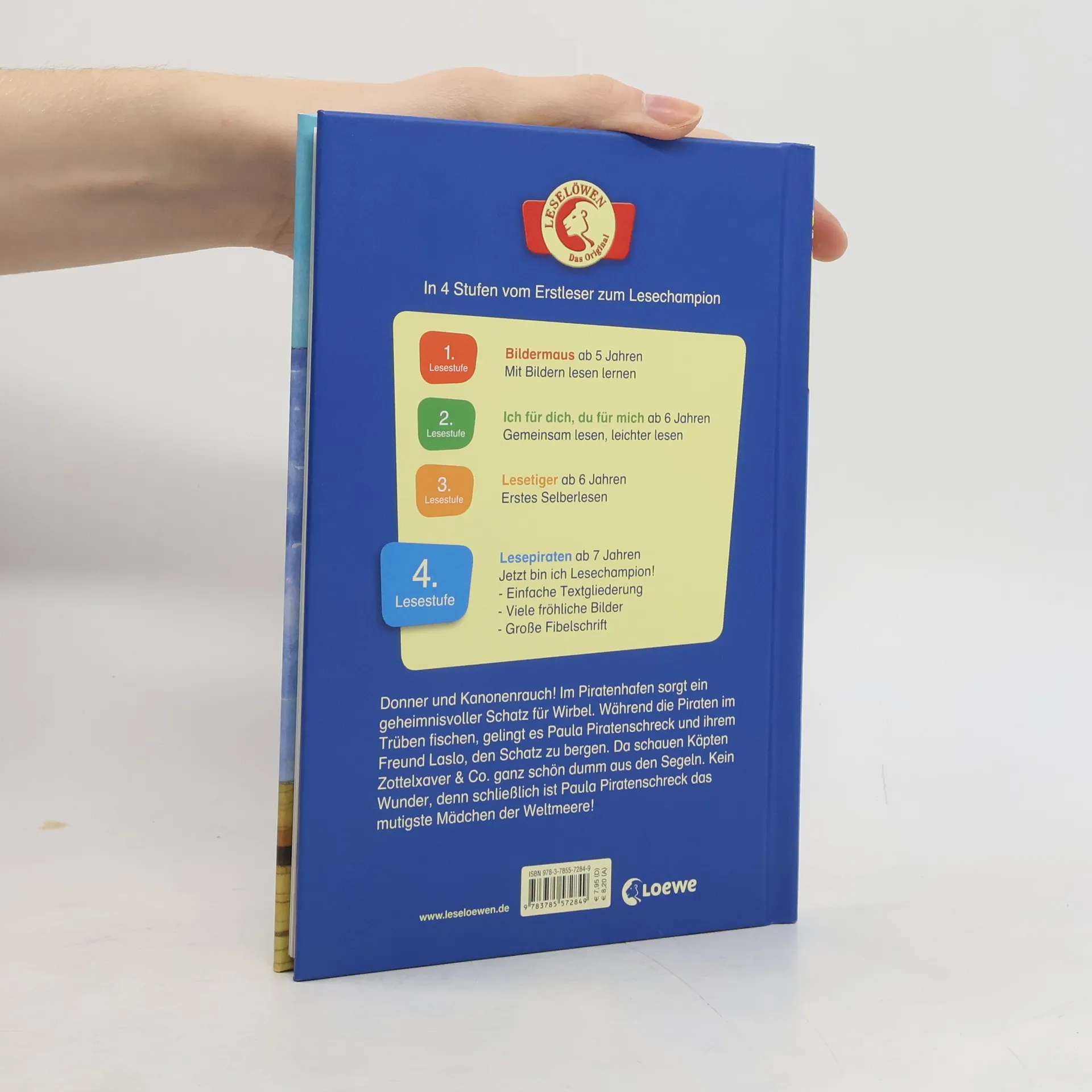 Lesealter ab 7 3. Stufe der Loewe-Leseleiter Eine durchgehende Geschichte Einfache Textgliederung Donner und Kanonenrauch! Im Piratenhafen sorgt ein geheimnisvoller Schatz für großen Wirbel. Während die Piraten im Trüben fischen, gelingt es Paula Piratenschreck und ihrem Freund Laslo, den Schatz zu bergen. Da schauen Käpten Zottelxaver & Co. ganz schön dumm aus ihren Segeln. Kein Wunder, denn schließlich ist Paula Piratenschreck das mutigste Mädchen der sieben Weltmeere!