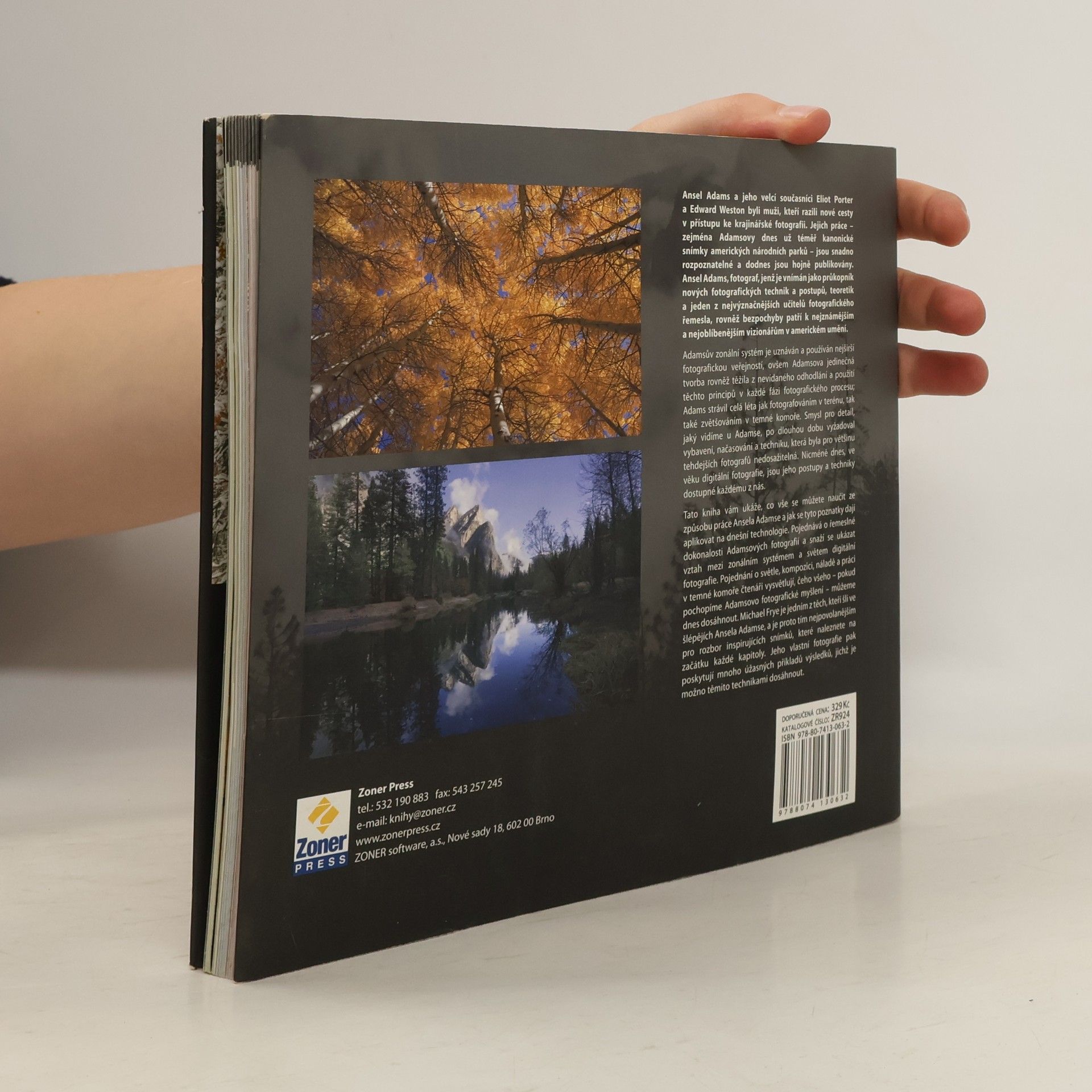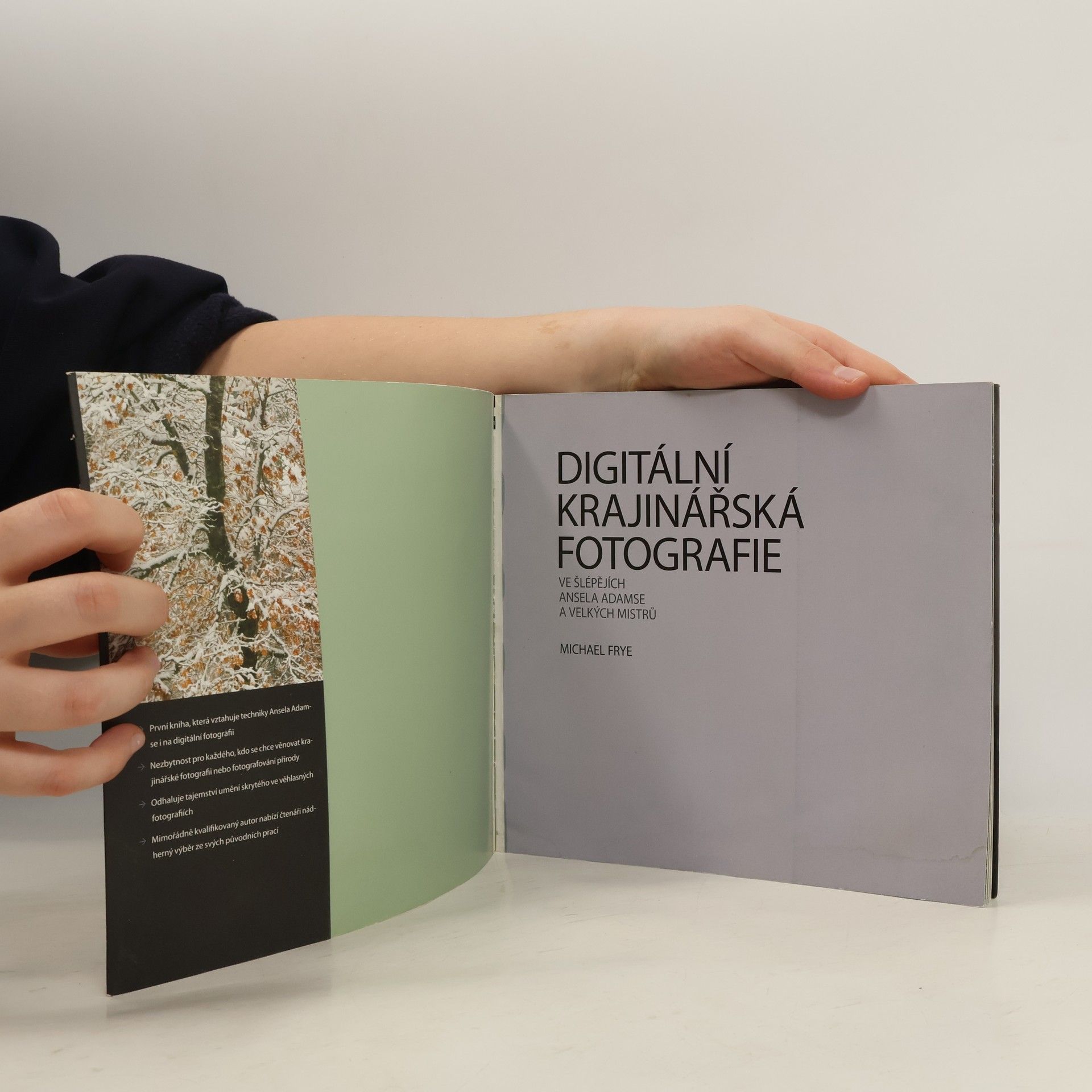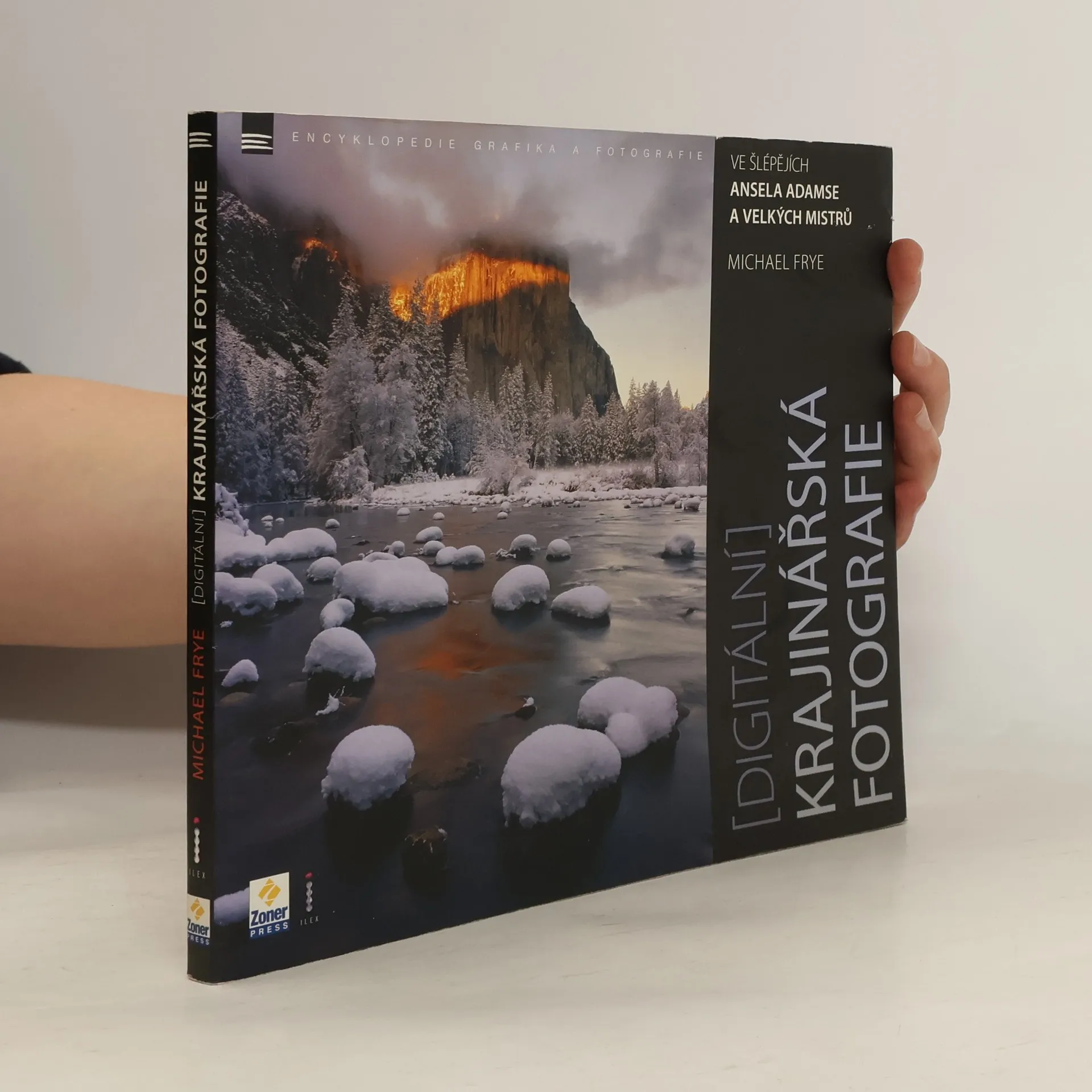Ansel Adams je ikonou krajinářské fotografie. Je veličinou nejen pro skvělé snímky americké přírody, ale také pro svůj doslova průkopnický přístup k fotografii. Adams je spolutvůrcem tzv. zonálního systému, který se stal, zejména v době rozmachu černobílé fotografie, významným pomocníkem při volbě expozice. Ansel Adams je také známý precizními zvětšeninami a dokonale propracovaným systémem „postprodukce“ v černé komoře. Publikace Michaela Freye vychází z díla tohoto Mistra krajináře a vedle zajímavých komentářů k několika fotografiím Ansela Adamse (a také Edwarda Westona a Eliota Portera) ukazuje, jak se lze z díla těchto velikánů světové fotografie poučit, co lze i v dnešní době digitálních přístrojů aplikovat a případně jak do digitálního kabátu převléci některé z klasických teorií. Kniha (mimo tradičně skvělé a inspirativní fotografie, jak je u vydavatelství ILEX běžné) přináší řadu praktických doporučení, tipů a postupů od technických základů (jako jsou problémy šumu, využití možností RAWu a srovnání s formátem JPEG, aplikace filtrů, vyvážení bílé, hloubka ostrosti, expozice…) přes vlastní fotografování a otázky kompozice v krajinářské fotografii až po zpracování snímků a jejich tisk.