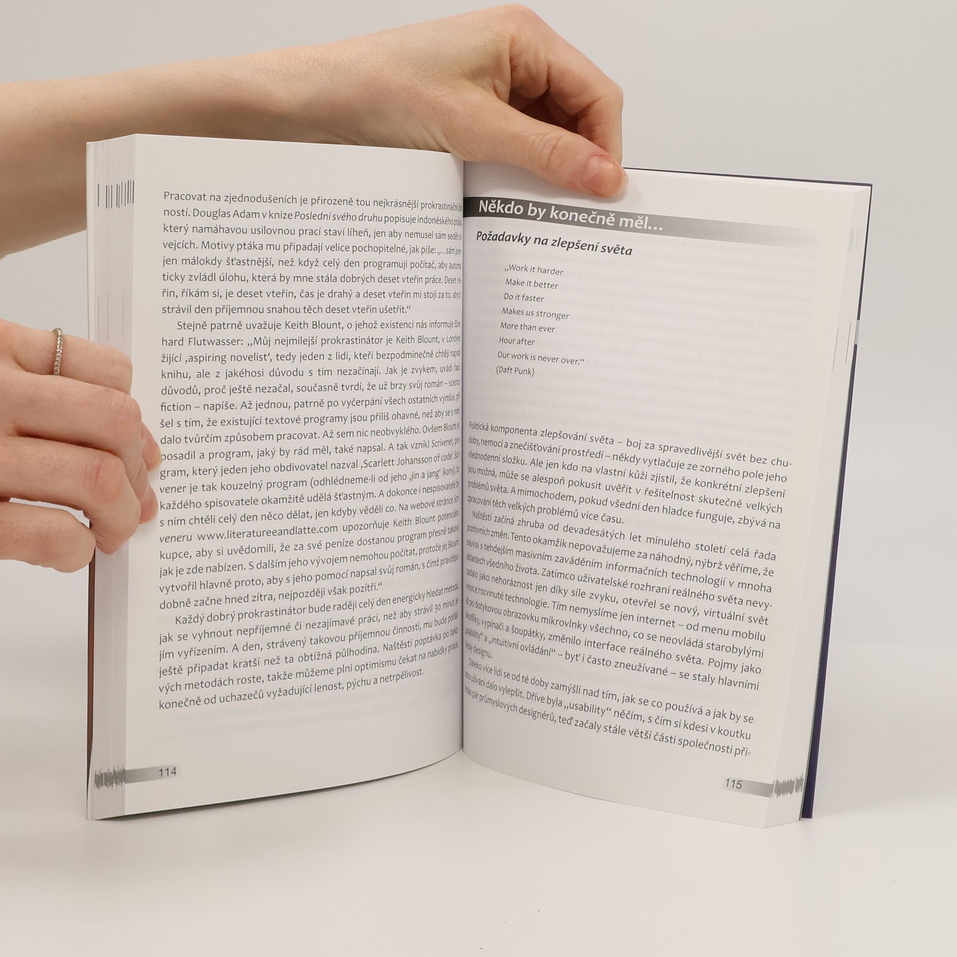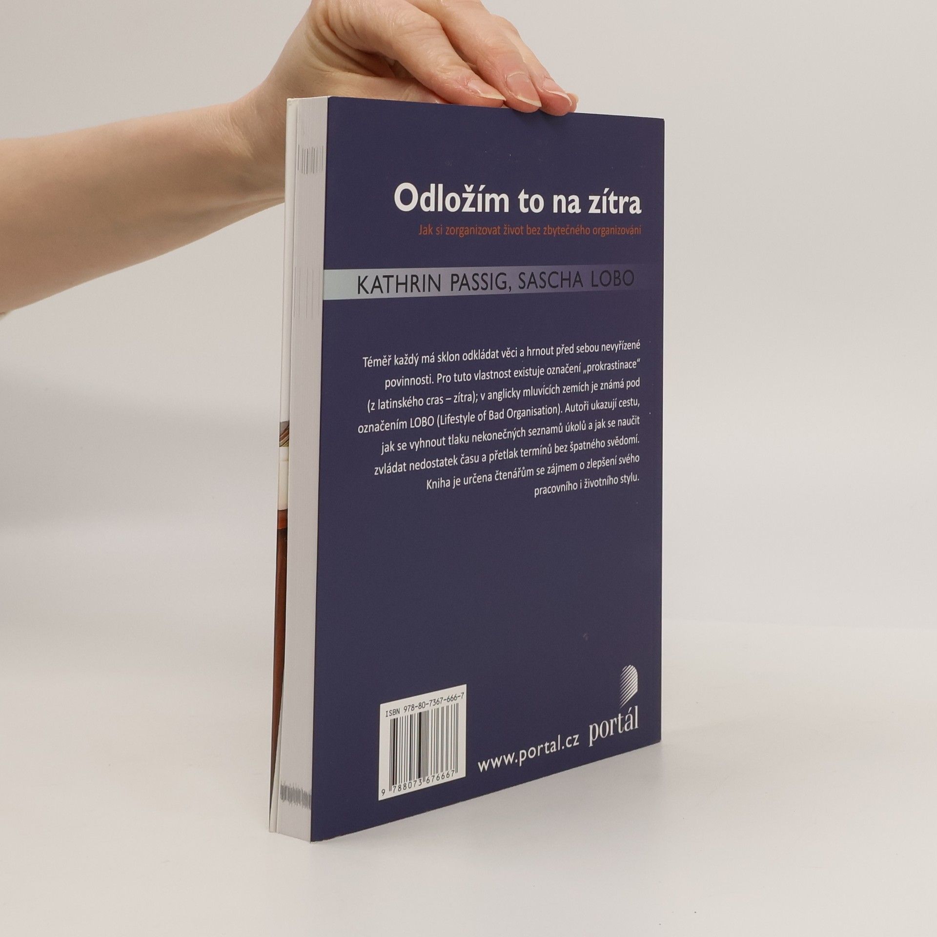 Téměř každý má sklon odkládat věci a hrnout před sebou nevyřízené povinnosti. Pro tuto vlastnost existuje označení prokrastinace (z latinského cras – zítra), v anglicky mluvících zemích je známá pod označením LOBO (Lifestyle of Bad Organisation). Kniha je určena všem, kteří prokrastinací trpí. Autoři ukazují cestu, jak se vyhnout tlaku nekonečných seznamů úkolů, a jak se naučit zvládat nedostatek času a přetlak termínů bez špatného svědomí. Knihu ocení čtenáři se zájmem o zlepšení svého pracovního i životního stylu. Kathrin Passig pracuje jako vedoucí marketingu v Zentrale Intelligenz Agentur. Má za sebou literární činnost, za kterou obdržela několik německých ocenění. Sascha Lobo je ředitelem kreativního oddělení reklamní agentury, pracuje rovněž jako lektor v oblasti komunikačních strategií.