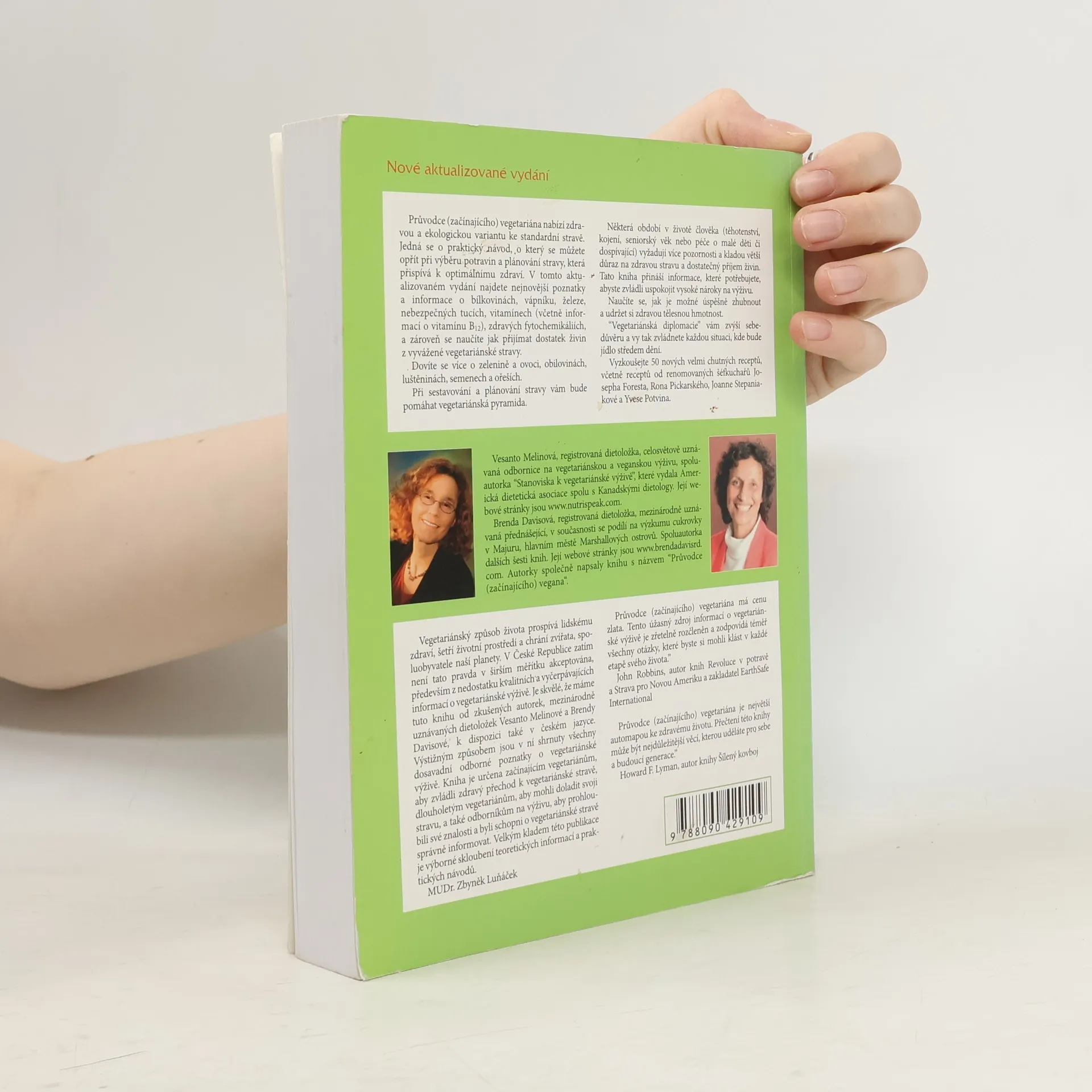 Průvodce (začínajícího) vegetariána nabízí zdravou a ekologickou variantu ke standardní stravě. Jedná se o praktický návod, o který se můžete opřít při výběru potravin a plánování stravy, která přispívá k optimálnímu zdraví. V tomto aktualizovaném vydání najdete nejnovější poznatky a informace o bílkovinách, vápníku, železe, nebezpečných tucích, vitamínech (včetně informací o vitamínu B12), zdravých fytochemikáliích, a naučíte se jak přijímat dostatek živin z vyvážené vegetariánské stravy. Dozvíte se více o zelenině a ovoci, obilovinách, luštěninách, semenech a ořeších. Při sestavování a plánování stravy vám bude pomáhat vegetariánská pyramida. Některá období v životě člověka (těhotenství, kojení, seniorský věk nebo péče o malé děti či dospívající) vyžadují více pozornosti a kladou větší důraz na zdravou stravu a dostatečný příjem živin. Tato kniha přináší informace, které potřebujete, abyste zvládli uspokojit vysoké nároky na výživu. Naučíte se, jak je možné úspěšně zhubnout a udržet si zdravou tělesnou hmotnost. "Vegetariánská diplomacie" vám zvýší sebedůvěru a vy tak zvládnete každou situaci, kde bude jídlo středem dění. Vyzkoušejte 50 nových velmi chutných receptů, včetně receptů od renomovaných šéfkuchařů Josepha Foresta, Rona Pickarského, Joanne Stepaniakové a Yvese Potvina.
