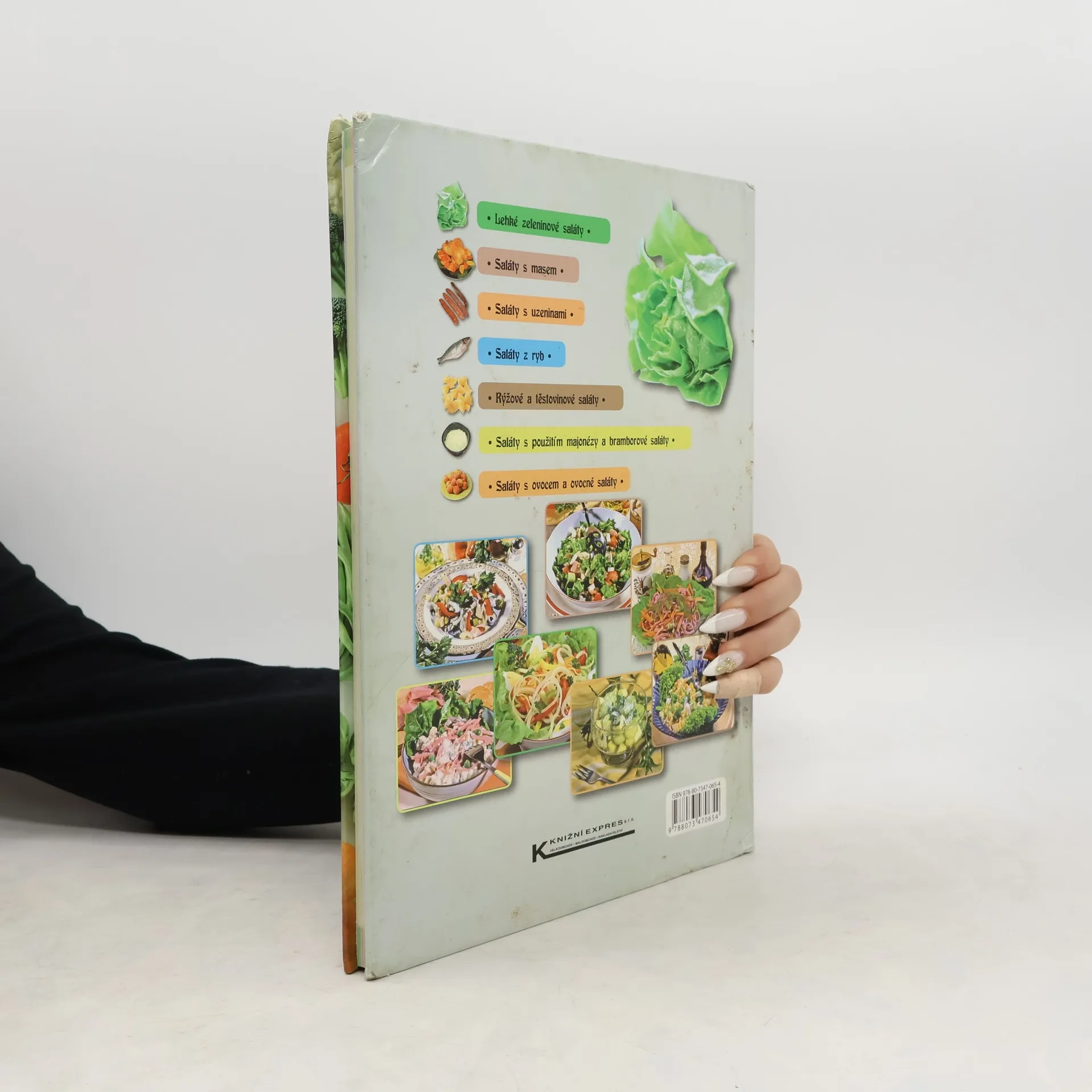 Velká, celobarevná a pestrá kniha salátů. V této knize jsou saláty pro každého, a to tradičně zeleninové a ovocné, pokud upřednostňujete maso a uzeniny, nevadí i vy si vyberete. Pro milovníky ryb jsou zde saláty z ryb. Máte rádi těstoviny i pro vás je tato kniha. Jsou zde i bramborové saláty a saláty s majonézou. Vybere si každý.