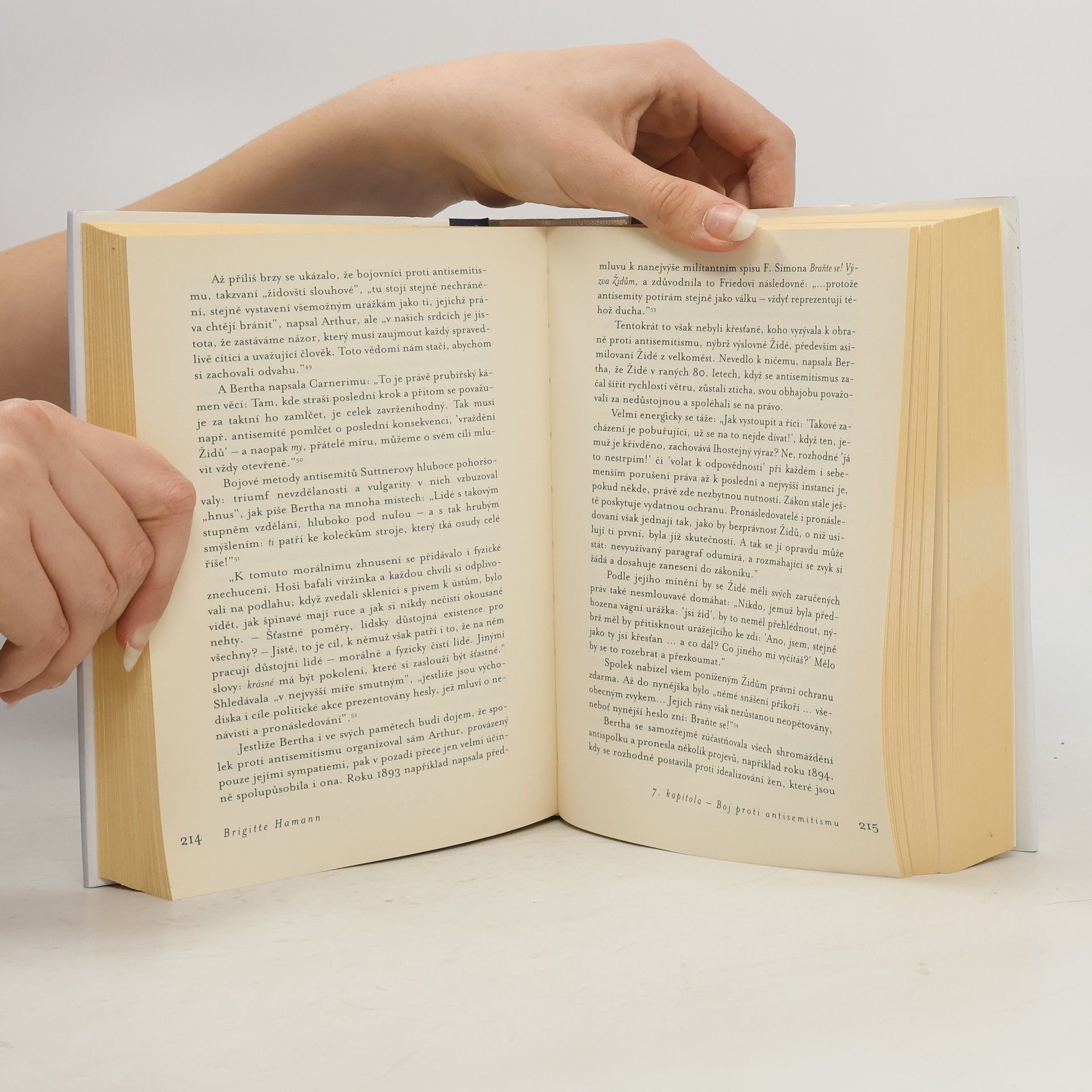 Obsáhlá, reprezentativní monografie první nositelky Nobelovy Ceny za mír (1905). Roku 1889 se rázem proslavila románem Odzbrojte!, který byl přeložen do celé řady jazyků. Roku 1905 obdržela jako první žena Nobelovu cenu míru, jejíž založení sama iniciovala. Bertha von Suttner (1843- -1914), rozená hraběnka Kinská, byla jednou z nejvlivnějších politických žurnalistek své doby. Jako zakladatelka četných mírových společností se zasazovala nejen za mír, ale i za práva žen a angažovala se v boji proti antisemitismu. Brigitte Hamann líčí neobyčejný život této mimořádné ženy, jež v mnohém předstihla svou dobu, ženy, jež si ve strnulém rámci konvencí nejvyšší společnosti dokázala nejen uchovat svou osobitost, nýbrž i vehementním způsobem prosazovat své ideály. Na základě autentických pramenů črtá citlivý, nikoli však nekritický portrét Berty von Suttner, zahrnující dramatické momenty i významná stadia jejího života, pražské, brněnské a vídeňské mládí, práci guvernantky, seznámení s Alfredem Nobelem, který se do ní na první pohled zamiloval, romantickou lásku k pozdějšímu manželovi Arthurovi von Suttner, jejich společný útěk na Kavkaz i postupně rostoucí angažovanost ve prospěch mírové věci.