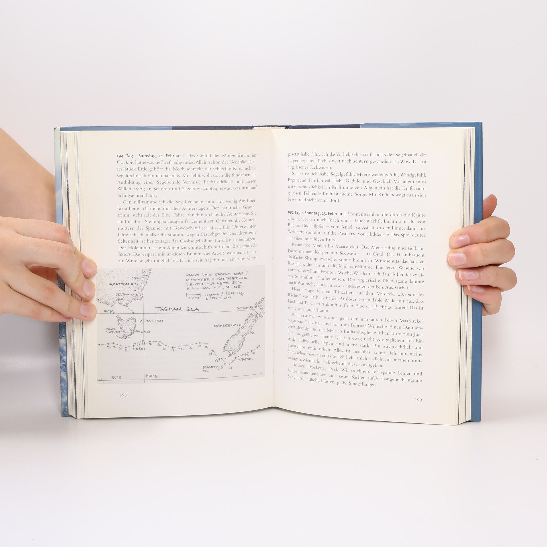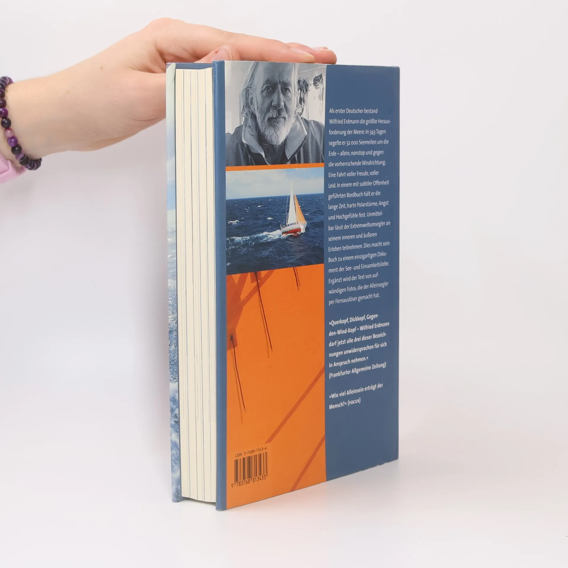 Als erster Deutscher umsegelte W. Erdmann in 343 Tagen die Erde, nonstop und gegen die vorherrschende Windrichtung (Start: August 2000). In seinem Bordbuch hat er alle Eindrücke und Gefühle festgehalten.