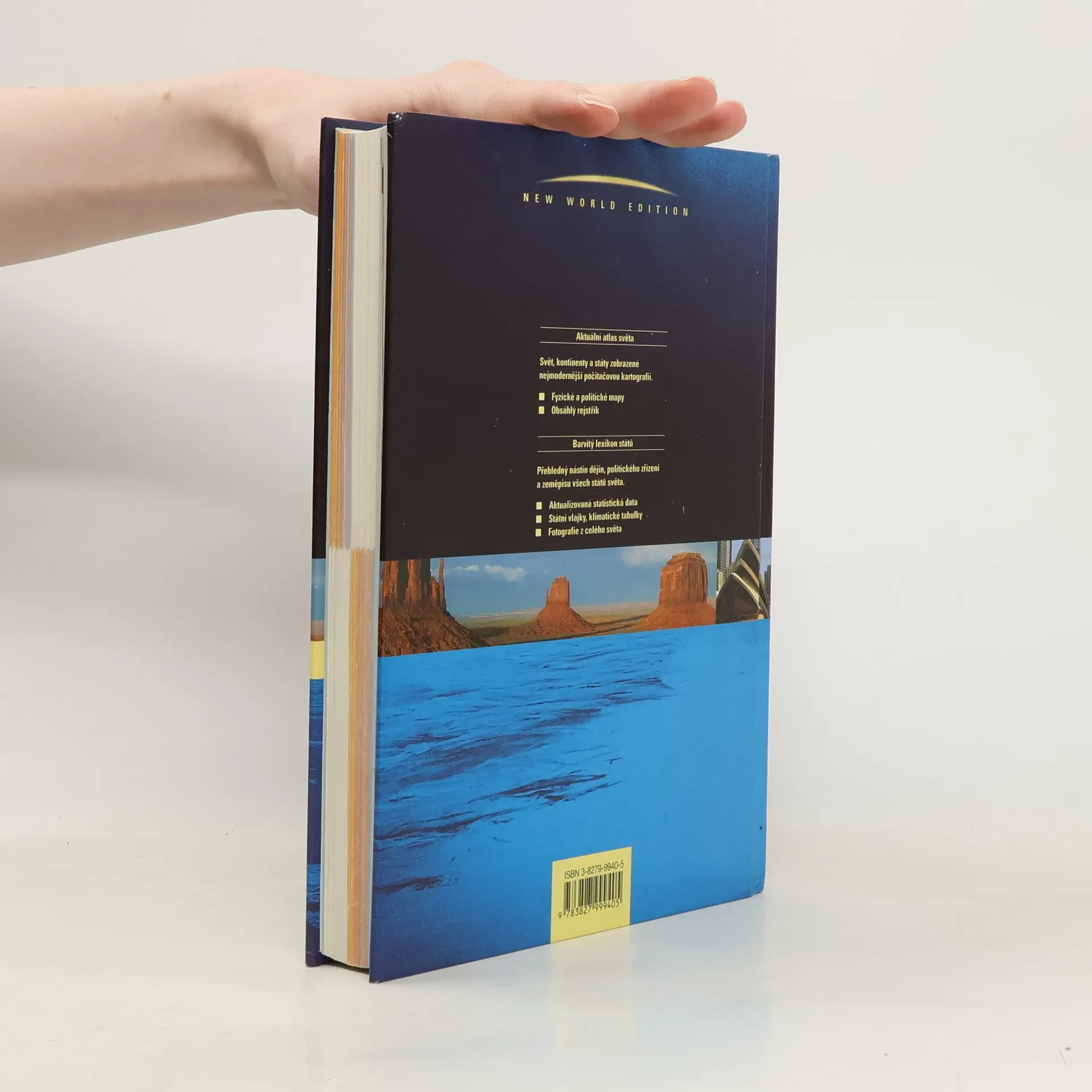 Aktuální atlas světa: Svět, kontinenty a státy zobrazené nejmodernější počítačovou kartografií. * Fyzické a politické mapy * Obsáhlý rejstřík Barvitý lexikon států: Přehledný nástin dějin, politického zřízení zeměpisu všech států světa. * Aktualizovaná statistická data * Státní vlajky, klimatické tabulky * Fotografie z celého světa Kapesní atlas světa s lexikonem států má přibližně formát A5, je v tvrdé vazbě a čítá 256 stran + bohatý rejstřík a je zároveň stručným průvodcem.