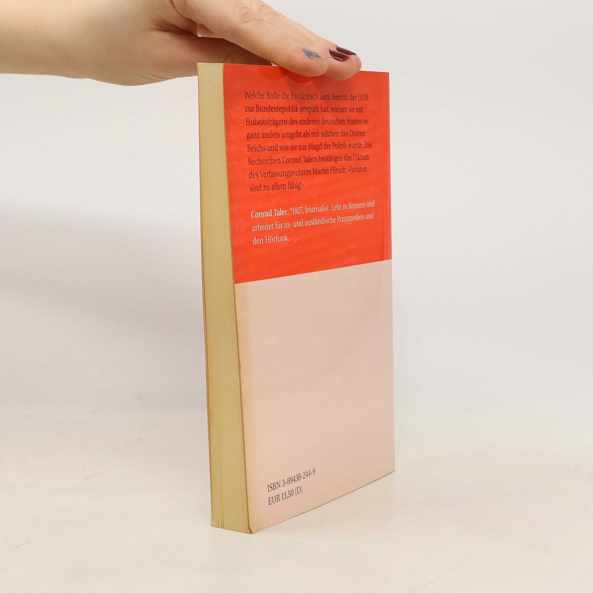 Welche Rolle hat die Justiz nach dem Beitritt der gewendeten DDR zur Bundesrepublik gespielt? Sollte sie den geschlagenen Gegner nachträglich demütigen? Wollte sie durch besonderen Eifer ihre Untätigkeit gegenüber den Blutrichtern des NS-Regimes kompensieren? Wieso hat sie dem Nazistaat trotz Auschwitz das Recht auf Selbstbehauptung zugebilligt, nicht aber der DDR? Warum hat sie den Fundamentalgrundsatz jeder geordneten Rechtspflege - nulla poena sine lege, keine Strafe ohne Gesetz - für DDR-Bürger aufgehoben? In seinem neuen Buch fragt der Journalist Conrad Taler auch, welche moralische Legitimation zur Verurteilung von DDR-Hoheitsträgern eine Justiz beanspruchen kann, die einen Nazirichter freigesprochen hat, der alleine und in kurzer Zeit mehr Todesurteile fällte als alle DDR-Richter zusammen in 40 Jahren. Talers Recherchen scheinen zu bestätigen, was einst der Verfassungsrichter Martin Hirsch äußerte: „Juristen sind zu allem fähig!“