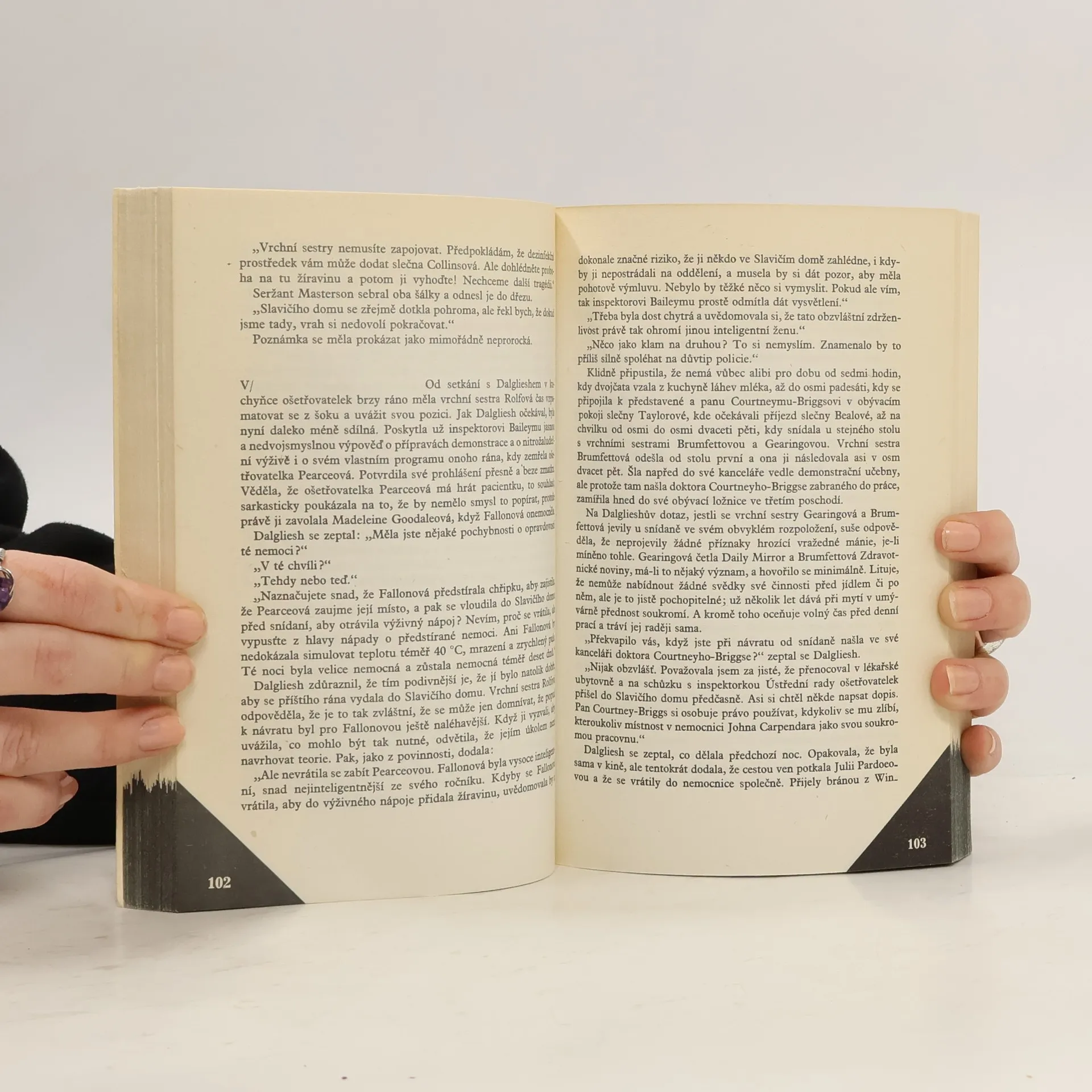 Napínavý příběh ze současné Anglie zavádí čtenáře do nemocničního prostředí a dává nahlédnout do života britských lékařů a ošetřovatelek. V malé nemocnici blízko Lodnýna je skupina adeptek ošetřovatelského povolání svědkem zavraždění kolegyně, na níž je předváděna procerdura zavedení umělé výživy. Co bylo v mléčné tekutině, kdo vraždil, nedošlo k záměně oběti? Do těchto nezodpověděných otázek přichází další náhlá smrt. Okruh doléhajících otázek se rozšiřuje, postupně se rozkrývají vzájemné vztahy lidí, odhalují se jejich vlastnosti a zároveň zázemí jejich životních osudů. Vyšetřování se soustřeďuje hlavně na ošetřovatelský internát "Slavičí dům", kde obě studentky bydlely. Z výslechu a pozůstalých věcí po obou dívkách vyvstávává pozvolna příběh, který sahá daleko za stěny nemocnice a daleko do minulosti do období druhé světové války. Je uzázkou životní tragédie lidí, kteří se stali spoluhráči ve zlé hře, kterou nevymysleli.
