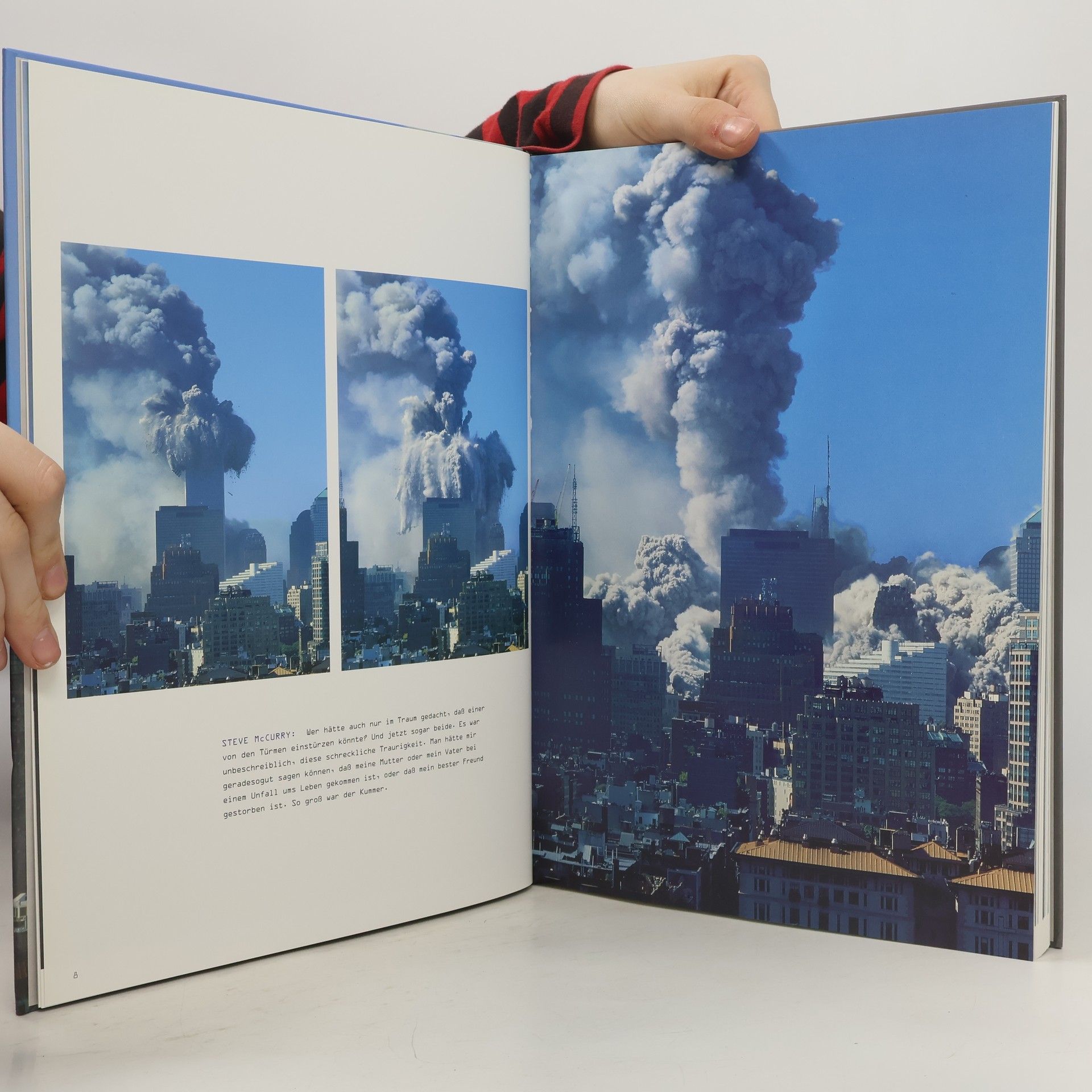 Eigentlich waren die elf Fotografen der legendären Bildagentur MAGNUM am Morgen des 11. September für eine Sitzung nach New York gekommen, als die Flugzeuge ins World Trade Center rasten. Sie taten das, was sie immer getan haben und fotografierten. Sie riskierten viel, um das Unbeschreibliche zu dokumentieren. Einzigartige Fotos sind entstanden vom Augenblick des Zusammenbruchs des World Trade Centers über die Flucht und Panik Tausender von Menschen, dem Einsatz der Feuerwehr, der Polizei und freiwilligen Helfer, bis hin zu gespenstischen Landschaften der brennenden Stadt. Im letzten Kapitel zeigen die MAGNUM Fotografen ihre schönsten Bilder der "Twin Towers" als sie noch die Silhouette der Stadt beherrschten. Ein Teil der Erlöse aus dem Verkauf des Buches geht an die Stiftung der "New York Times" für die Angehörigen der Opfer des 11. Septembers.