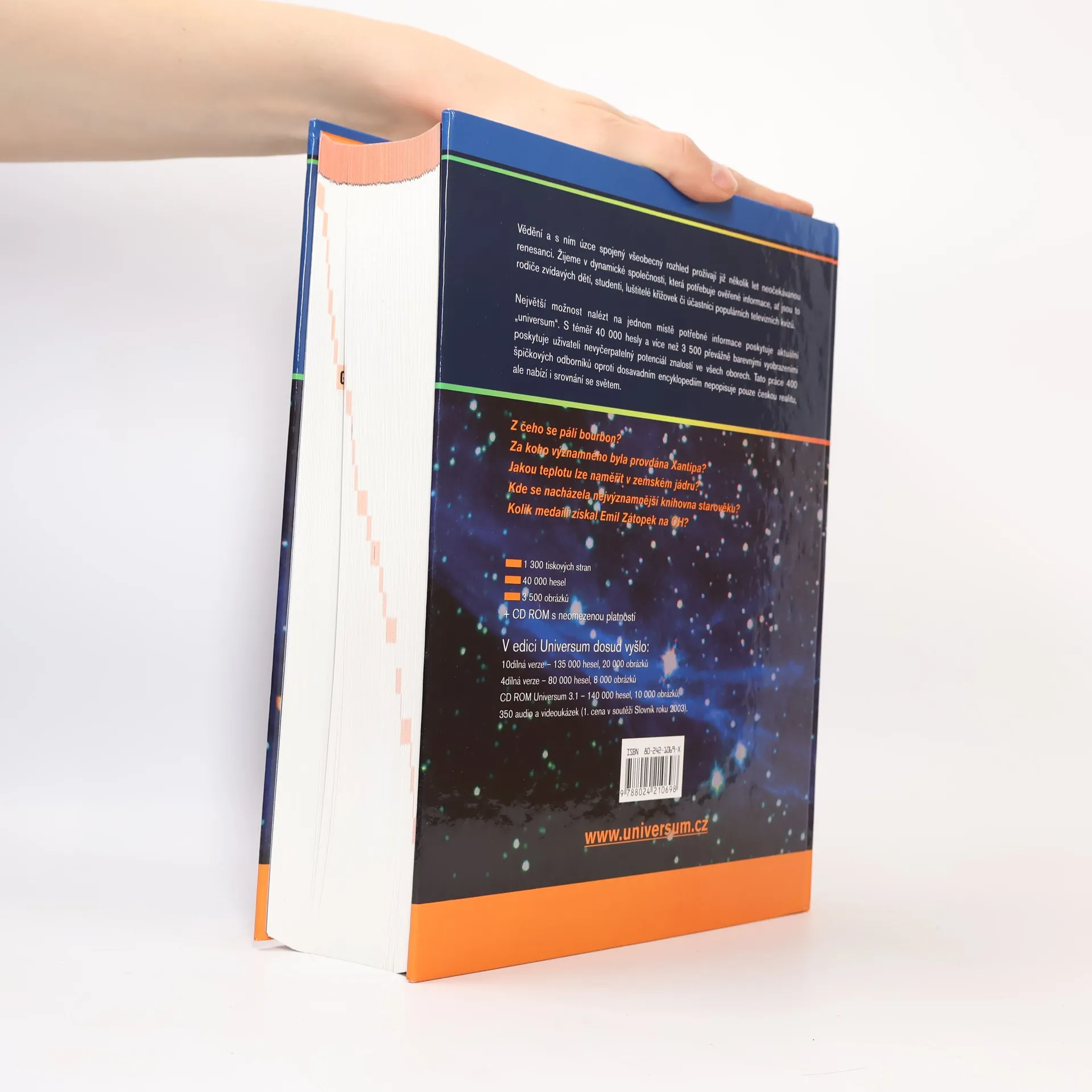 Nejnovější vydání úspěšné encyklopedie, nyní v jednom svazku o 1304 stranách, který je aktualizován k 1.9. 2003, takže zde uživatel najde i události z poslední doby, např. jméno nového prezidenta Libérie i informaci o úmrtí Pavla Tigrida. V monumentální publikaci, určené nejširšímu publiku, od rodičů zvídavých ratolestí, přes studenty středních a vysokých škol, luštitele křížovek a účastníky různých vědomostních soutěží, najde uživatel 40 000 hesel, vzájemně propojených 50 000 odkazy, takže se snadno dostane k požadované informaci. Graficky precizně provedená kniha, díky barevné škále počátečních písmen slov na okrajích stránek pomáhající k rychlé orientaci podle abecedy, je doplněna 3 500 fotografiemi, mapami, schématy a tabulkami. o Nejdůležitjší zeměpisná místa světa: státy, města, hory, řeky, ostrovy o Historické události o Bezpočet slavných osobností ze všech oborů o Vědecké poznatky: matematika, fyzika, chemie, technika apod. o Biologie: rostliny, živočichové, člověk, medicína o Společenské vědy: filosofie, psychologie, sociologie, právo, ekonomie o Umění: hudba, architektura, malířství, sochařství apod.