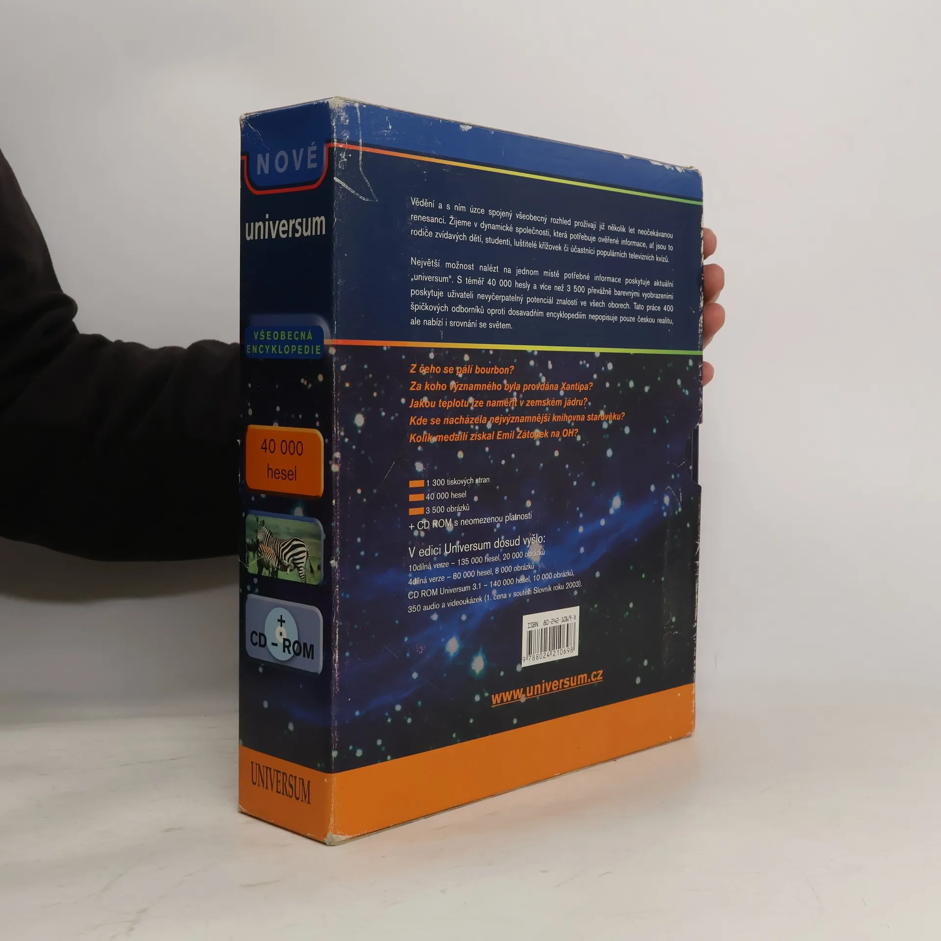 Nejnovější vydání úspěšné encyklopedie, nyní v jednom svazku o 1304 stranách, který je aktualizován k 1.9. 2003, takže zde uživatel najde i události z poslední doby, např. jméno nového prezidenta Libérie i informaci o úmrtí Pavla Tigrida. V monumentální publikaci, určené nejširšímu publiku, od rodičů zvídavých ratolestí, přes studenty středních a vysokých škol, luštitele křížovek a účastníky různých vědomostních soutěží, najde uživatel 40 000 hesel, vzájemně propojených 50 000 odkazy, takže se snadno dostane k požadované informaci. Graficky precizně provedená kniha, díky barevné škále počátečních písmen slov na okrajích stránek pomáhající k rychlé orientaci podle abecedy, je doplněna 3 500 fotografiemi, mapami, schématy a tabulkami. o Nejdůležitjší zeměpisná místa světa: státy, města, hory, řeky, ostrovy o Historické události o Bezpočet slavných osobností ze všech oborů o Vědecké poznatky: matematika, fyzika, chemie, technika apod. o Biologie: rostliny, živočichové, člověk, medicína o Společenské vědy: filosofie, psychologie, sociologie, právo, ekonomie o Umění: hudba, architektura, malířství, sochařství apod.