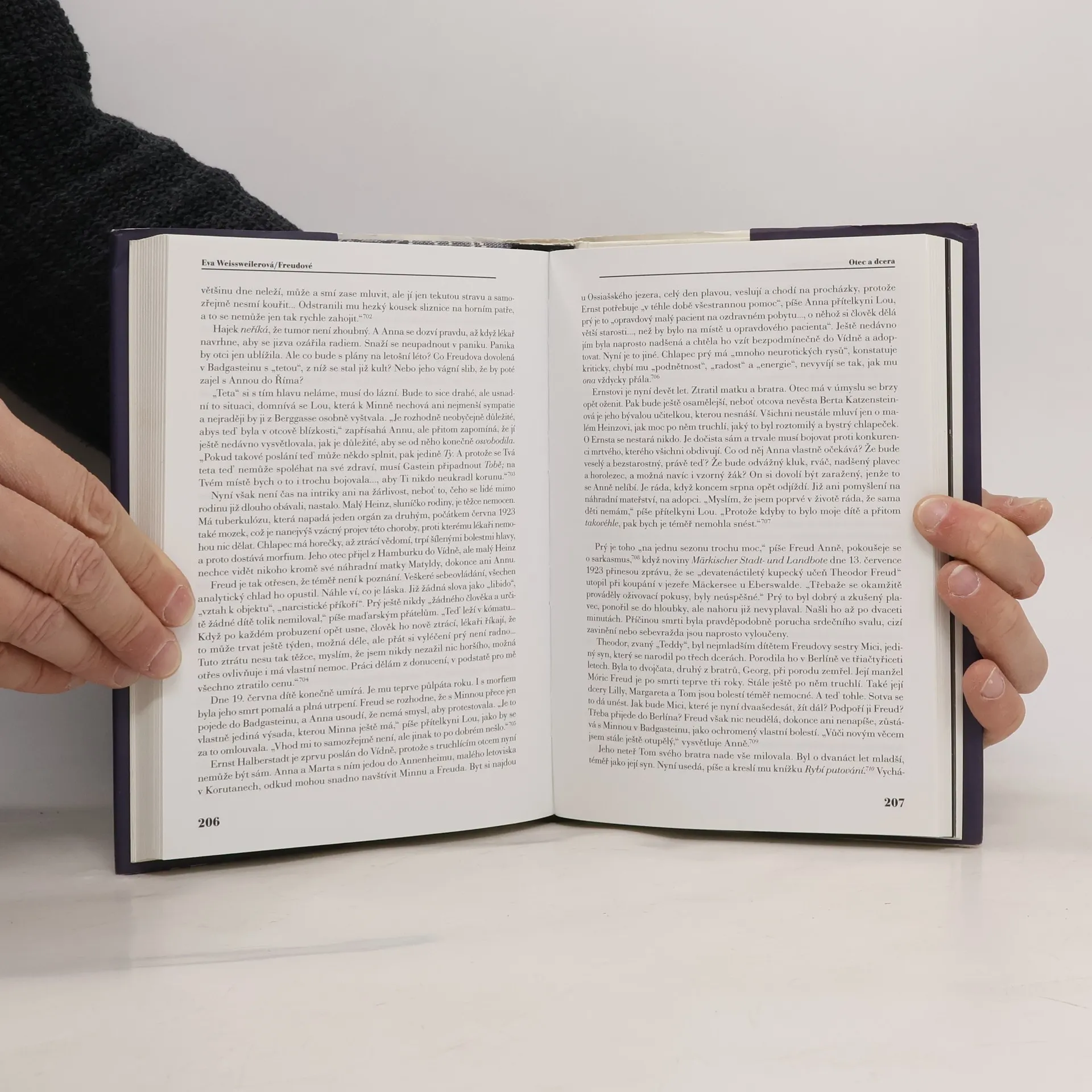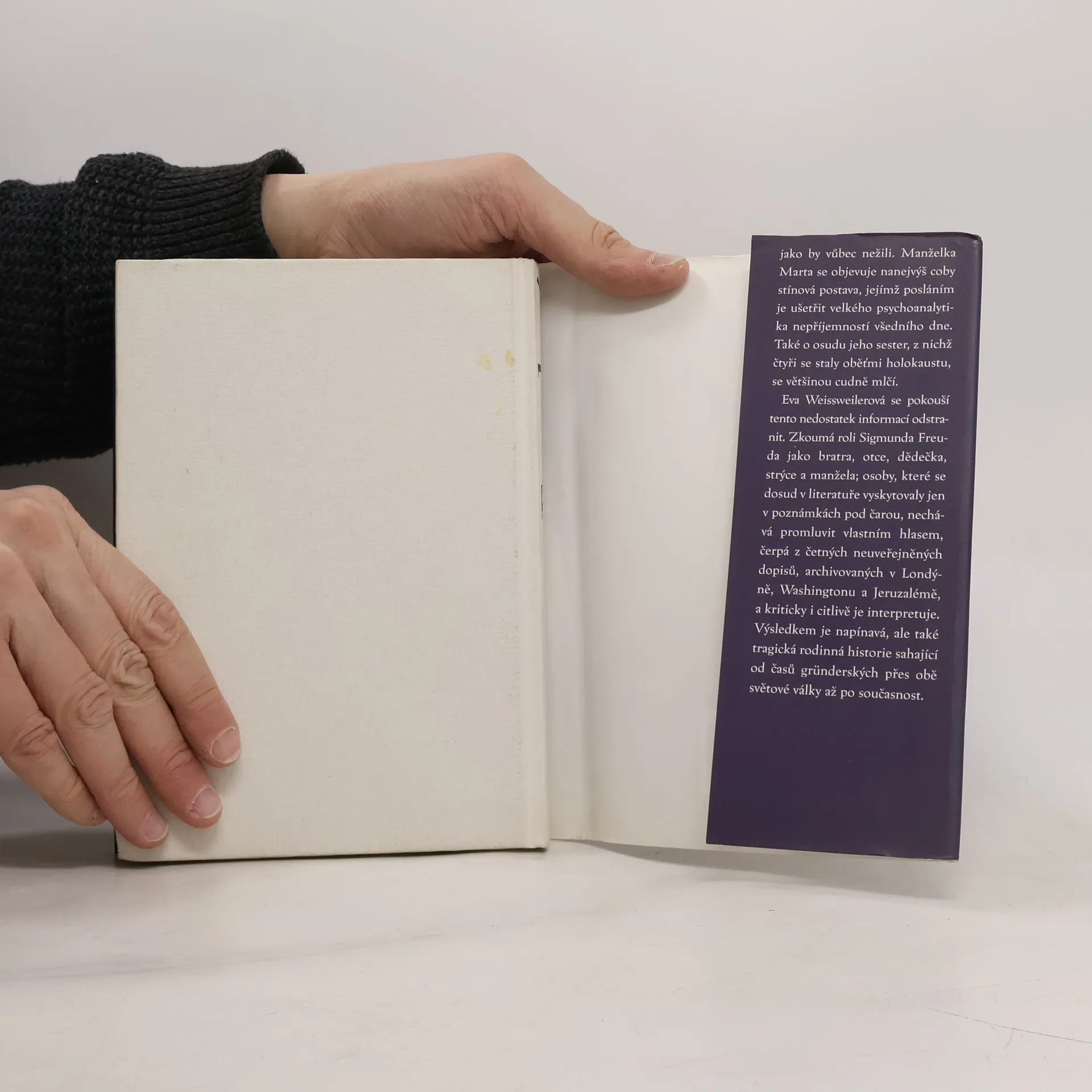 Sigmund Freud v roce 1936 napsal spisovateli Arnoldu Zweigovi: „Kdo se stane životopiscem, ten se zavazuje ke lži, zatajování, pokrytectví, přikrašlování, neboť biografická pravda není k mání, a i kdyby byla, nedala by se použít.“ Tuto jeho averzi k líčení soukromí převzali téměř všichni Freudovi životopisci, nikoliv však autorka této biografie. Eva Weissweilerová zachycuje i to, co Freud sám nazýval „rodinným románem“, například psychoanalytikovu fanatickou nenávist k pěti sestrám jako možný kořen jeho podivného názoru, že ženy na rozdíl od mužů nemají žádné „nad-já“. Eva Weissweilerová se pokouší tento nedostatek informací odstranit. Zkoumá roli Sigmunda Freuda jako bratra, otce, dědečka, strýce a manžela; osoby, které se dosud v literatuře vyskytovaly jen v poznámkách pod čarou, nechává promluvit vlastním hlasem. Z jeho šesti dětí bývá většinou zmiňována pouze Anna, strážkyně grálu. Weissweilerová oživuje i ostatní – Mathildu, Martina, Olivera a Ernsta i manželku Martu. Přitom čerpá z četných neuveřejněných dopisů, archivovaných v Londýně, Washingtonu a Jeruzalémě, a kriticky i citlivě je interpretuje. Výsledkem je napínavá, ale také tragická rodinná historie, sahající od časů gründerských přes obě světové války až po současnost