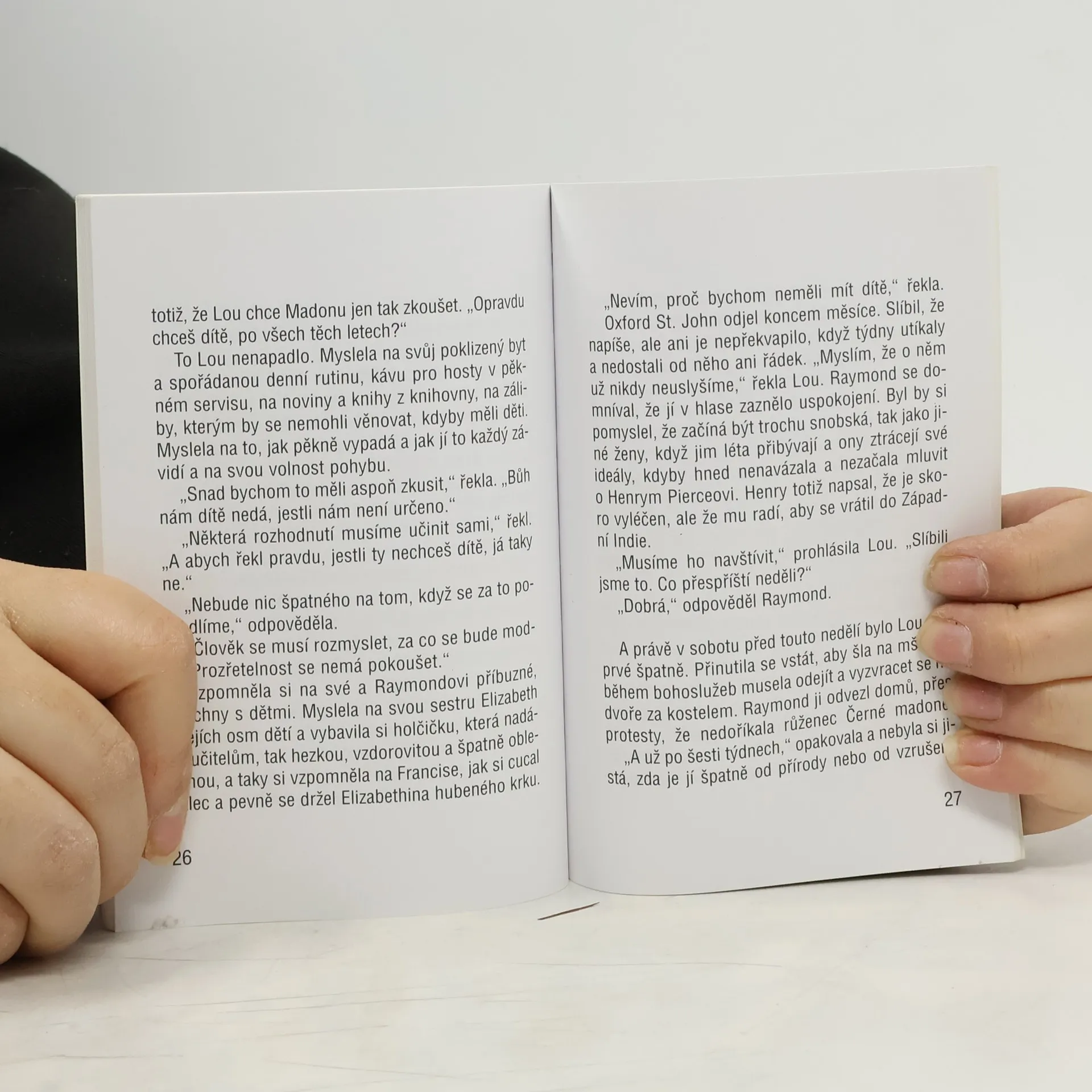 Povídka známé skotské autorky, v níž si bere na mušku snobismus a rasové předsudky nové střední vrstvy v Británii 50. let. V této době sice Británie prožívá období prosperity a více se otevírá světu, ale pokrytectví, sociální a rasová předpojatost společnosti z minulosti stále přetrvávají. Manželé Lou a Raymond jsou velmi aktivními katolíky, kteří se považují za představitele moderních mravních a pokrokových názorů. Jednou byla do jejich kostela nainstalována socha Černé madony z bahenního dubu. Brzy se začaly šířit zprávy, že řadu lidí vyslyšela v jejich trápení. Také Lou a Raymond ji požádají o pomoc, ale v tu chvíli ještě netuší, jaké zkoušce bude jejich mravnost a tolerantnost podrobena. Výborná povídka s motivem nadpřirozena.