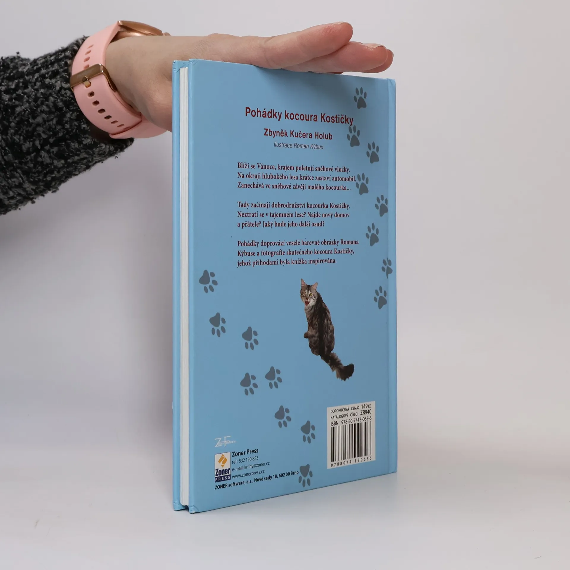 Blíží se Vánoce, krajem poletují sněhové vločky. Na okraji hlubokého lesa krátce zastaví automobil. Zanechává ve sněhové závěji malého kocourka... Tady začínají Kostičkova dobrodružství. Neztratí se v tajemném lese? Najde nový domov a přátele? Knihu provází veselé barevné obrázky Romana Kýbuse a fotografie skutečného kocoura Kostičky, jehož příhodami byly pohádky inspirovány.