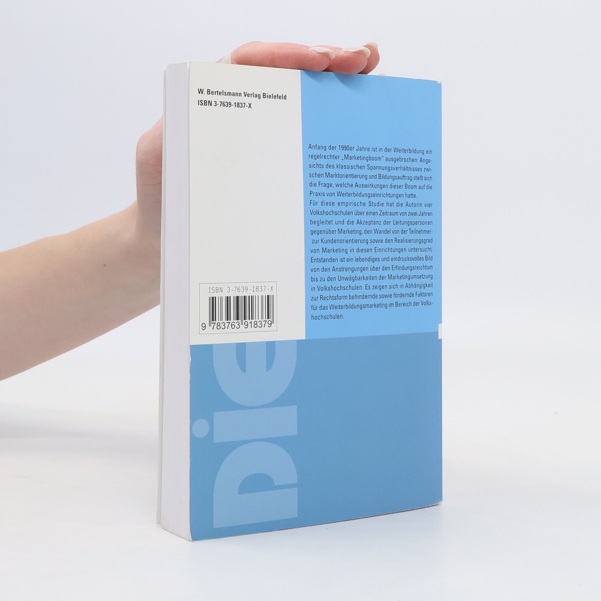 Anfang der 1990er Jahre ist in der Weiterbildung ein regelrechter „Marketingboom“ ausgebrochen. Angesichts des klassischen Spannungsverhältnisses zwischen Marktorientierung und Bildungsauftrag stellt sich die Frage, welche Auswirkungen dieser Boom auf die Praxis von Weiterbildungseinrichtungen hatte. Für diese empirische Studie hat die Autorin vier Volkshochschulen über einen Zeitraum von zwei Jahren begleitet und die Akzeptanz der Leitungspersonen gegenüber Marketing den Wandel von der Teilnehmer- zur Kundenorientierung sowie den Realisierungsgrad von Marketing in diesen Einrichtungen untersucht. Entstanden ist ein lebendiges und eindrucksvolles Bild von den Anstrengungen über den Erfindungsreichtum bis zu den Unwägbarkeiten der Marketingumsetzung in Volkshochschulen. Es zeigten sich in Abhängigkeit zur Rechtsform behindernde sowie fördernde Faktoren für das Volkshochschulmarketing.