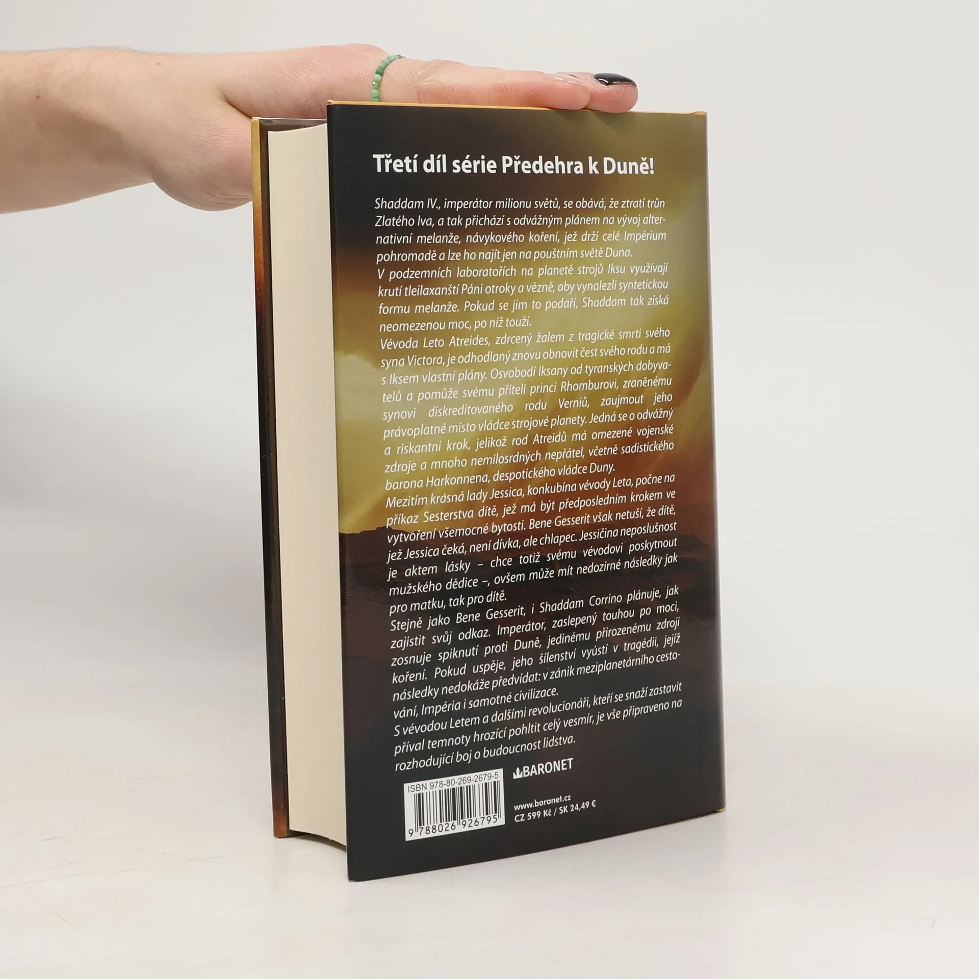 Třetí díl kultovní ságy vypráví o pouštní planetě Arrakis, která se potýká s naprostým nedostatkem vody a disponuje jediným známým nalezištěm zvláštního koření, které má moc prodloužit lidský život a poskytnout člověku mimořádné psychické schopnosti.