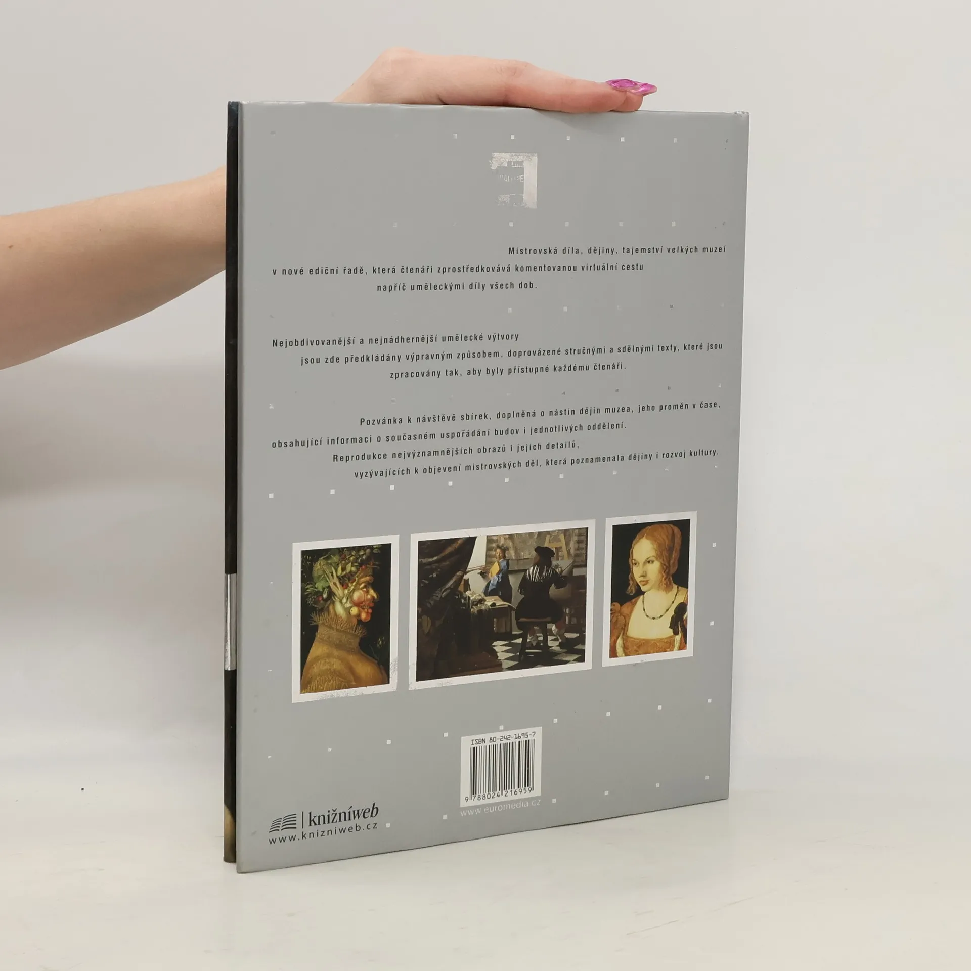Muzeum bylo postaveno podle projektu Gottfrieda Sempera a Karla von Hasenauera pro tehdejší císařské sbírky. Bylo otevřeno roku 1891 a patří k nejvýznamnějším uměleckým sbírkám na světě. Obrazová galerie shromažďuje nejvýraznější tvůrce německého, vlámského a italského původu i další stěžejní díla západoevropských umění (díla Raffaela, Vermeera, Velazqueze, Rubense, Rembrandta, Dürera, Tiziána, Tintoretta). Obsahuje i největší světovou sbírku Bruegelových děl. Texty doprovázející kvalitní reprodukce obrazů, poskytují informace o autorovi, námětu, kompozici a technice díla. V Kunstkomoře jsou shromažděny sbírky plastik a uměleckého řemesela i rarity z bývalých habsburských uměleckých sbírek a jejich kabinetů kuriozit. V závěru knihy najdeme plán muzea a rozvržení jednotlivých sbírek i seznam uvedených umělců a děl Obrazová publikace prezentuje nejvýznamnější díla Umělecko-historického muzea ve Vídni, jehož sbírky vznikly díky mecenášským aktivitám habsburského domu.... celý text