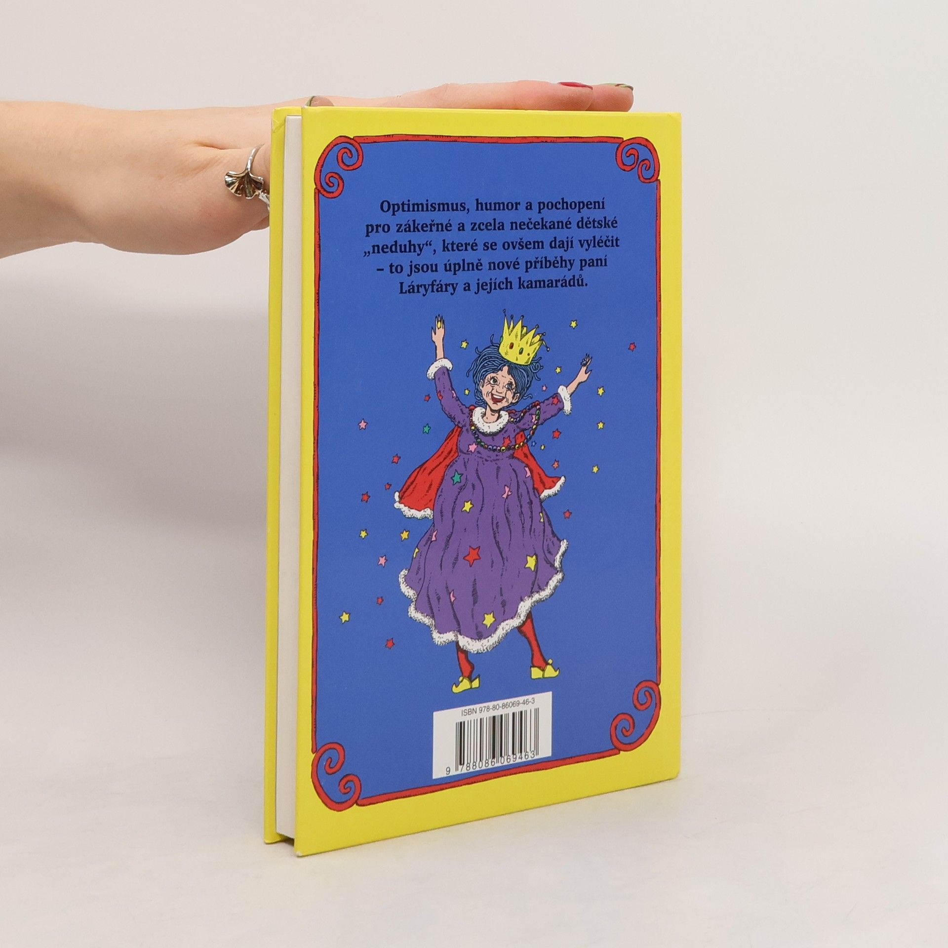I v tomto novém pokračování nesmírně oblíbené knihy Paní Láryfáry se setkáváme s typickými dětskými nemocemi, které trápí spíš rodiče než děti samotné a při jejichž léčení pomáhá kouzelná paní Láryfáry a její čáry. Další vtipné, veselé a zábavné příběhy o průběhu léčení těchto „chorob“ pocházejí částečně z pera světoznámé autorky Betty MacDonaldové a částečně jsou podle jejích poznámek dopsány dcerou Anne. Kniha vychází zároveň s 1. vydáním v USA jako první neanglický překlad.
