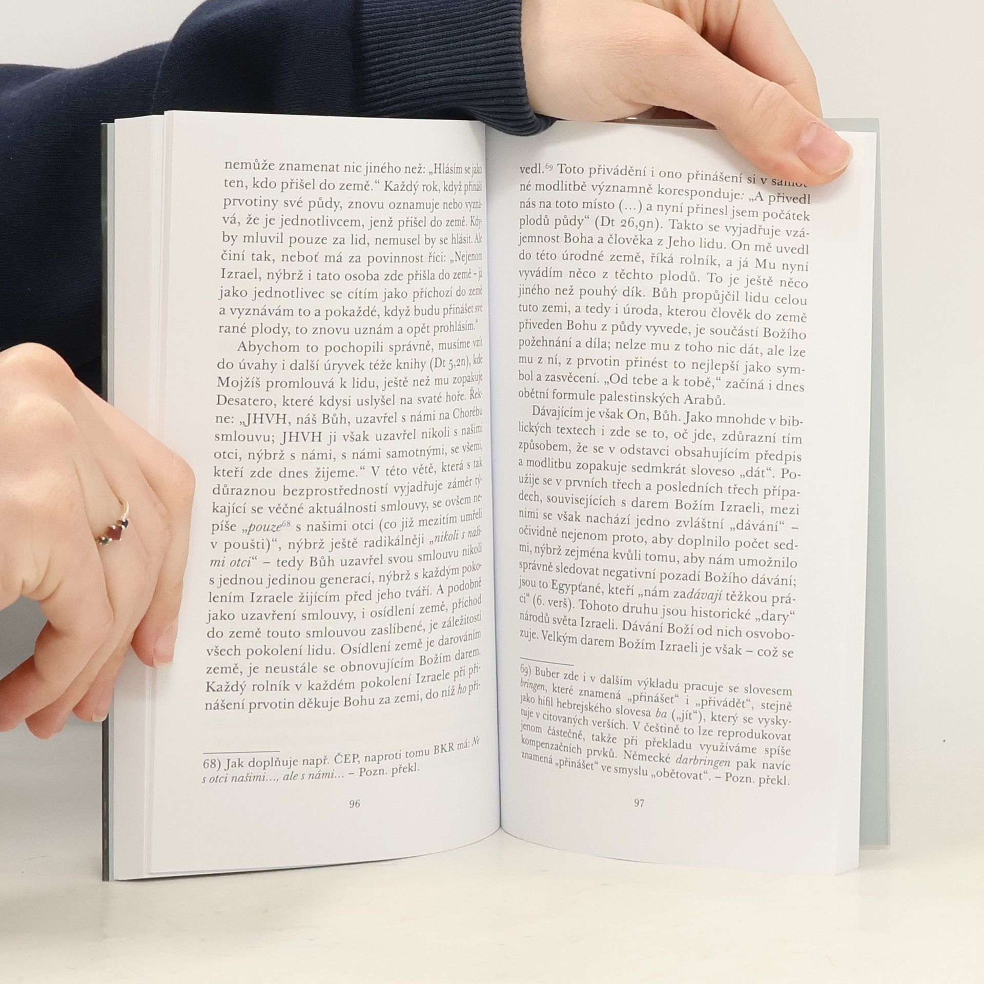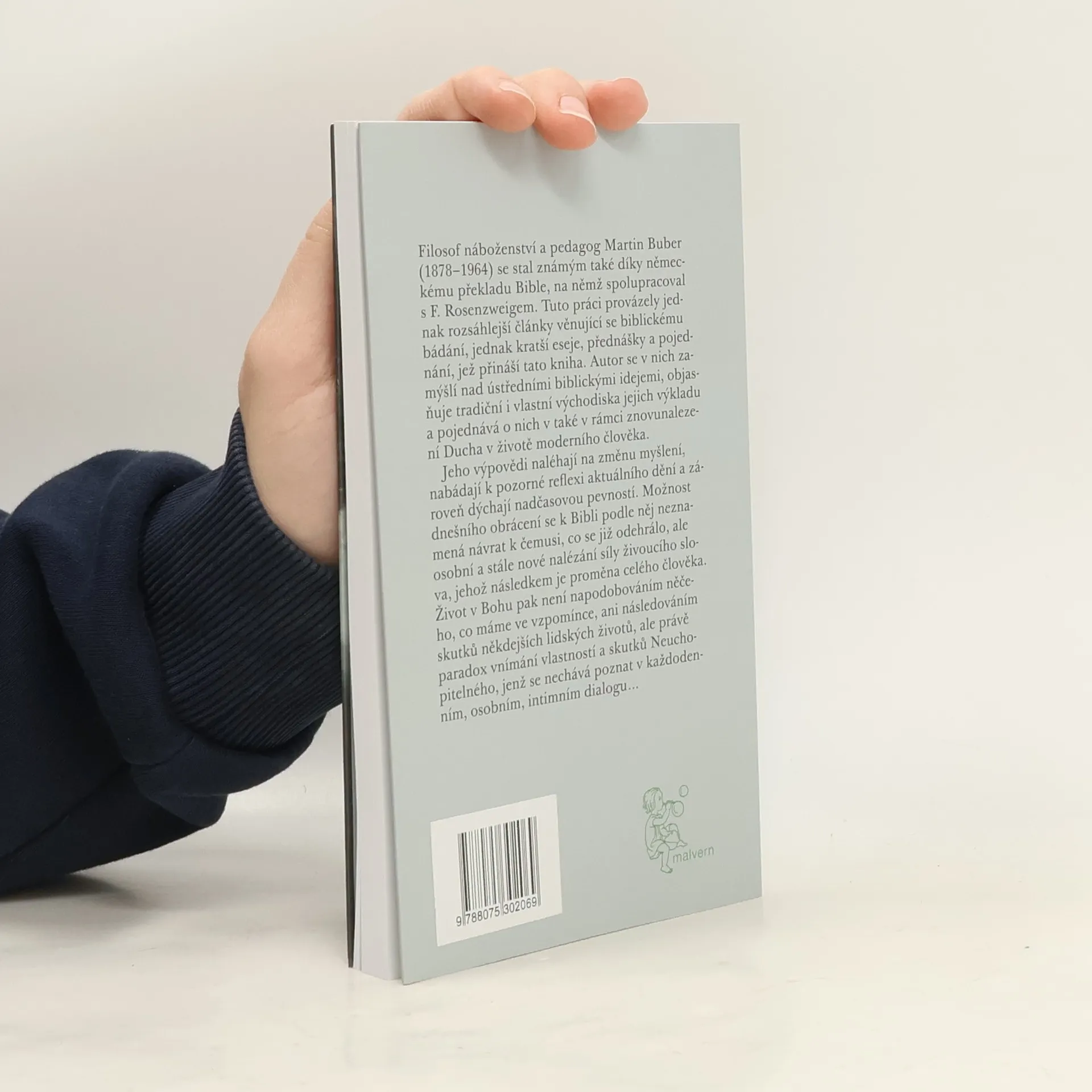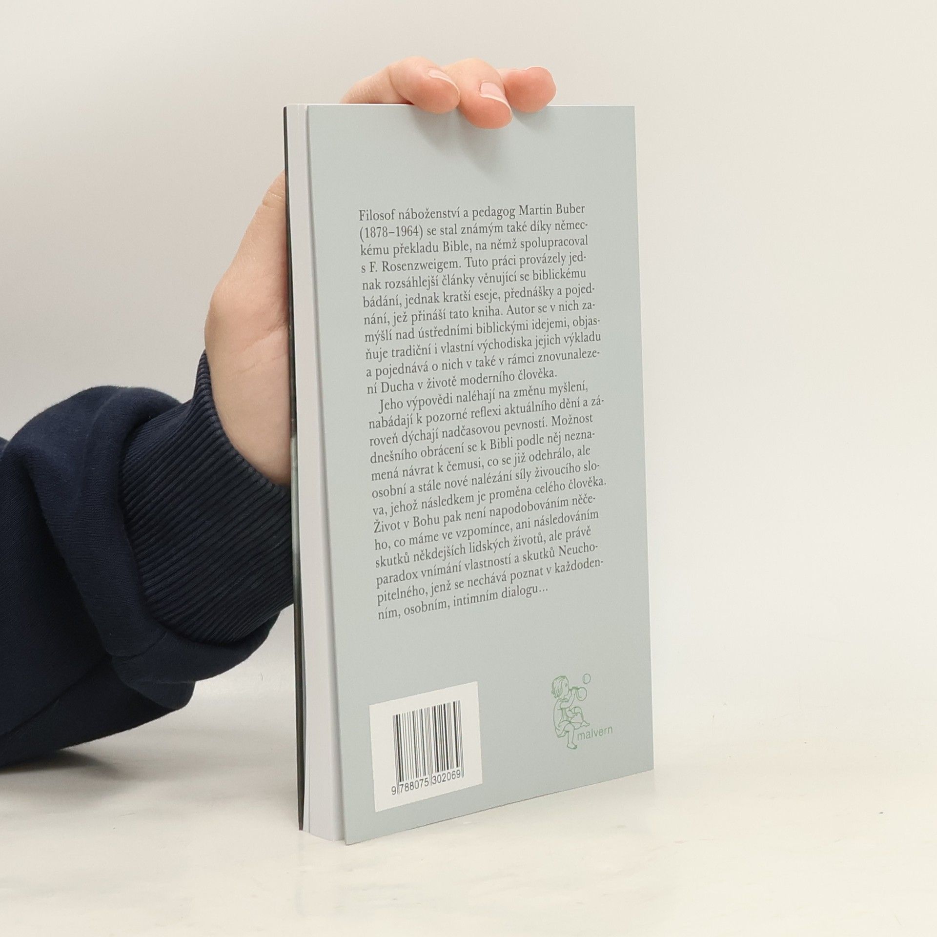 Vybrané spisy k Bibli a židovství. Filosof náboženství a pedagog Martin Buber (1878–1964) se stal známým také německým překladem Bible, na němž spolupracoval s F. Rosenzweigem. Tuto práci provázely jednak rozsáhlejší články věnující se biblickému bádání, jednak kratší eseje, přednášky a pojednání, jež podává tato kniha. Autor se v nich zamýšlí nad ústředními biblickými idejemi, objasňuje tradiční i svá východiska jejich výkladu a pojednává o nich také v rámci znovunalezení Ducha v životě moderního člověka. Jeho výpovědi naléhají na změnu myšlení, nabádají k pozorné reflexi aktuálního dění a zároveň dýchají nadčasovou pevností. Možnost dnešního obrácení se k Bibli podle něj neznamená návrat k čemusi, co se již odehrálo, ale osobní a stále nové nalézání síly živoucího slova, jehož následkem je proměna celého člověka. Život v Bohu pak není napodobováním něčeho, co máme ve vzpomínce, ani následováním skutků někdejších lidských životů, ale právě paradox vnímání vlastností a skutků Neuchopitelného, jenž se nechává poznat v každodenním, osobním, intimním dialogu…
