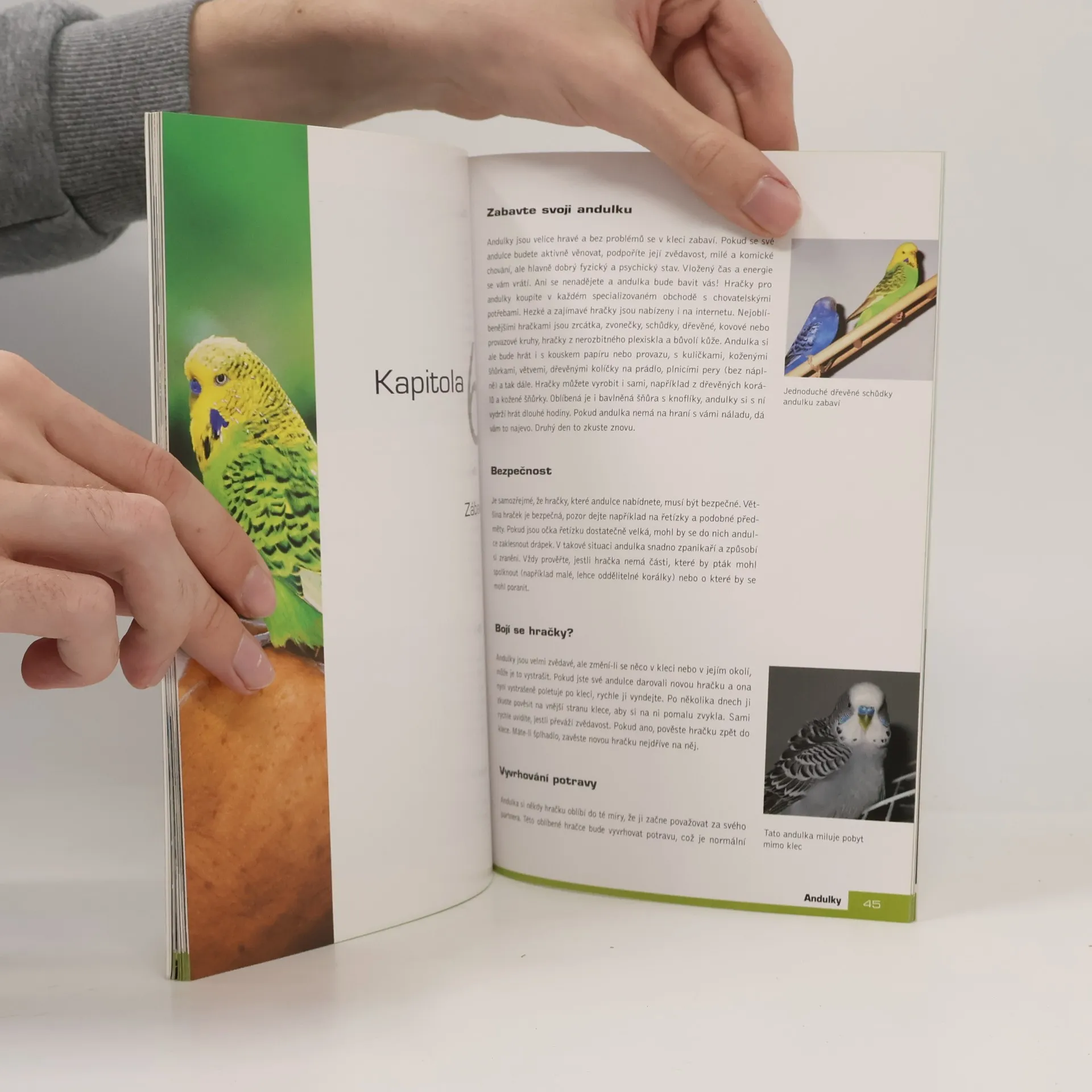 Andulky jsou pravděpodobně nejoblíbenějšími doma chovanými exotickými ptáky. Pokud uvažujete o nákupu andulky, v této příručce najdete veškeré informace, jež k jejímu chovu potřebujete. Dozvíte se, čeho si při výběru musíte všímat, kam andulku umístit, čím ji krmit, jak o ni pečovat a jaké nemoci ji mohou postihnout. Příručka pojednává také o přirozeném chování andulek a o nezbytnosti poskytnout jim zábavu a výchovu. Také díky mnoha barevným fotografiím, které objasňují text, je příručka Andulky vhodná pro každého, kdo andulku již chová nebo o jejím chovu uvažuje.