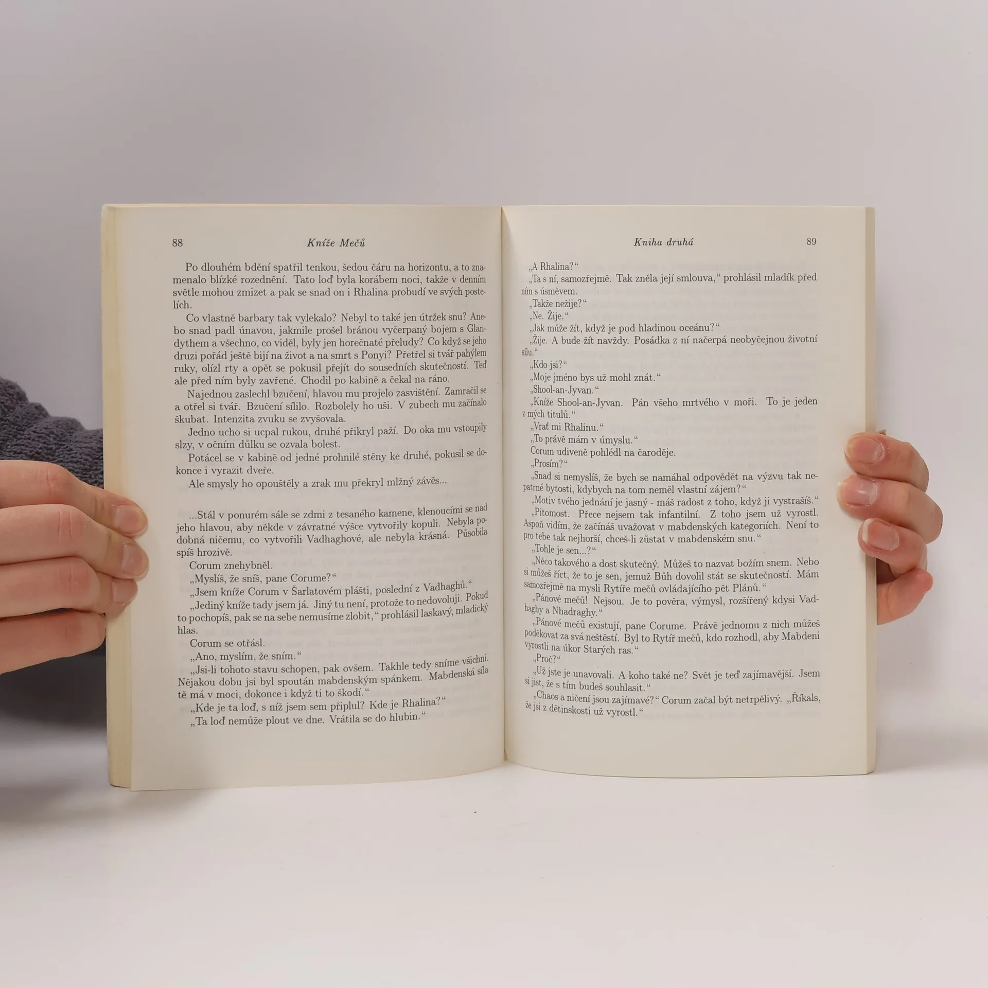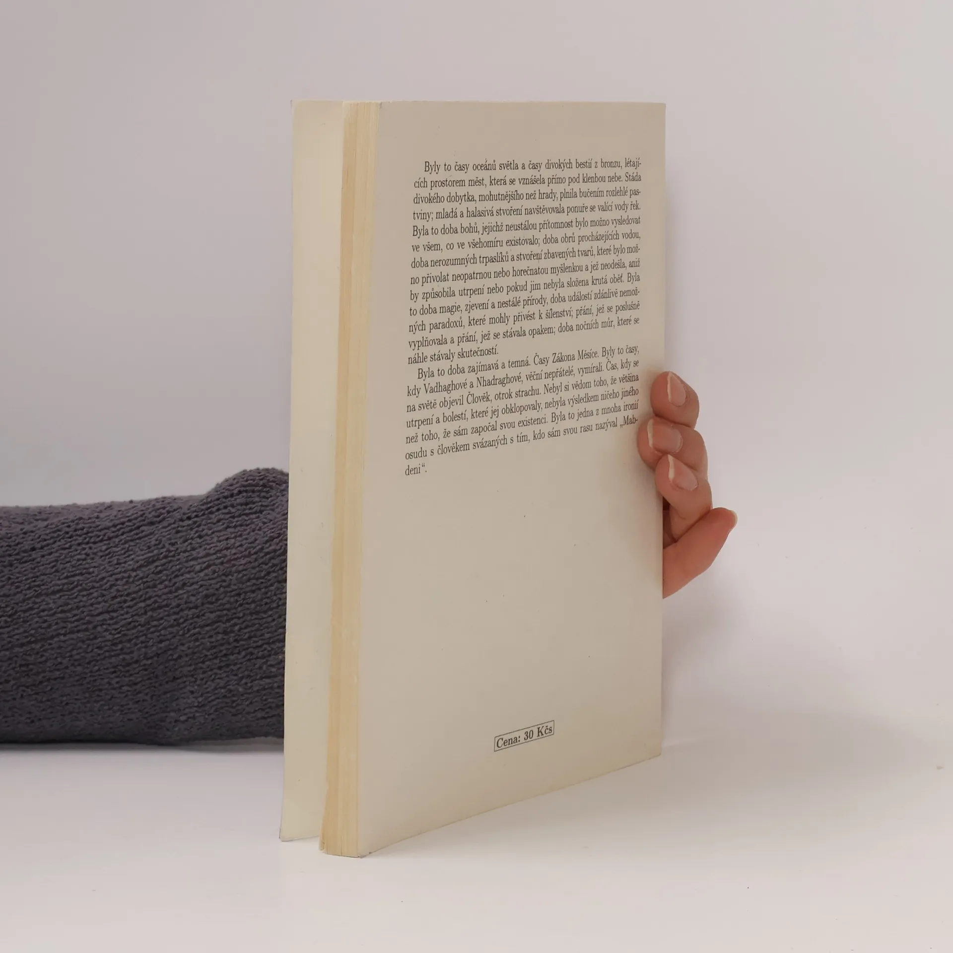 Byly to časy oceánů světla a časy divokých bestií z bronzu, létajících prostorem měst, která se vznášela přímo pod klenbou nebe. Stáda divokého dobytka, mohutnějšího než hrady, plnila bučením rozlehlé pastviny; mladá a halasivá stvoření navštěvovala ponuře se valící vody řek. Byla to doba bohů, jejichž neustálou přítomnost bylo možno vysledovat ve všem, co ve všehomíru existovalo; doba obrů procházejících vodou, doba nerozumných trpaslíků a stvoření zbavených tvarů, které bylo možno přivolat neopatrnou nebo horečnatou myšlénkou a jež neodešla, aniž by způsobila utrpení nebo pokud jim nebyla složena krutá oběť. Byla to doba magie, zjevení a nestálé přírody, doba událostí zdánlivě nemožných paradoxů, které mohly přivést k šílenství; přání, jež se poslušně vyplňovala a přání, jež se stávala opakem; doba nočních můr, které se náhle stávaly skutečností. Byla to doba zajímavá a temná, časy Zákona Měsíce. Byly to časy, kdy Vadhaghové a Nhadraghové, věční nepřátelé, vymírali. Čas, kdy se na světě objevil Člověk, otrok strachu. Nebyl si vědom toho, že většina utrpení a bolestí, které jej obklopovaly, nebyla výsledkem ničeho jiného než toho, že sám započal svou existenci. Byla to jedna z mnoha ironií osudu s člověkem svázaných s tím, kdo sám svou rasu nazýval „Mab-deni". (Zdroj: legie.info)... celý text