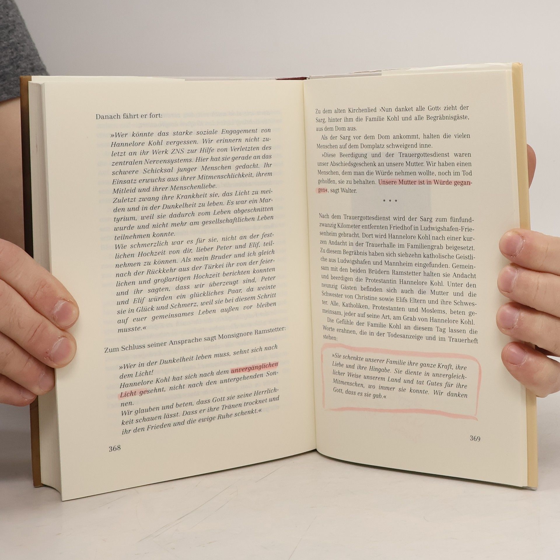 Der ehemalige Kanzler und sein ältester Sohn zeichnen ein Porträt der Ehefrau und Mutter Hannelore Kohl (1933-2001), der privaten wie öffentlichen Persönlichkeit einer Frau, deren Leben auf tragische Weise ein Ende fand