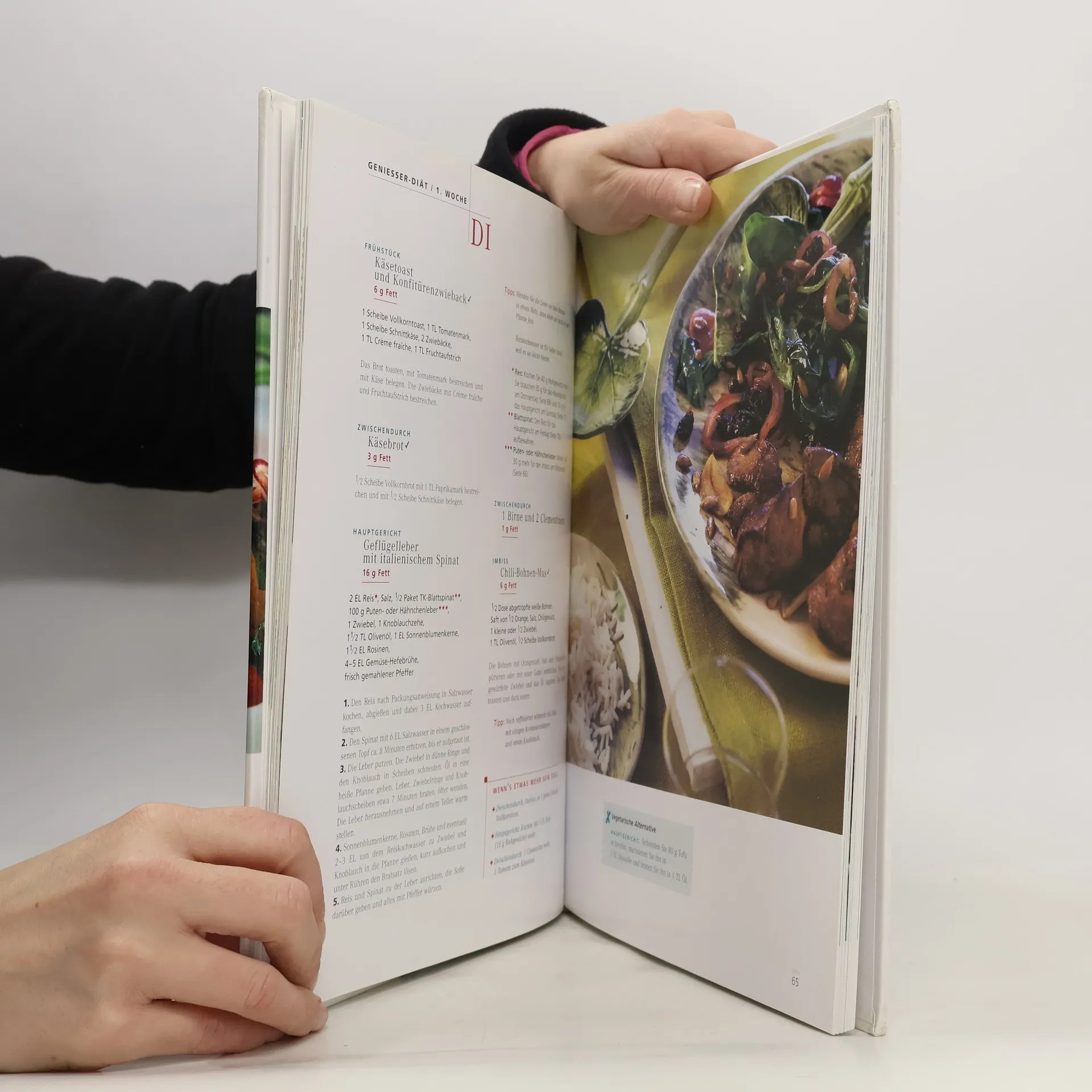 Zusammenstellung einer Fülle von Rezepten für Frühstück, Zwischendurch, Imbiss und Hauptgericht samt Tipps zum Abnehmen mit Sport und Bewegung; reich illustriert.