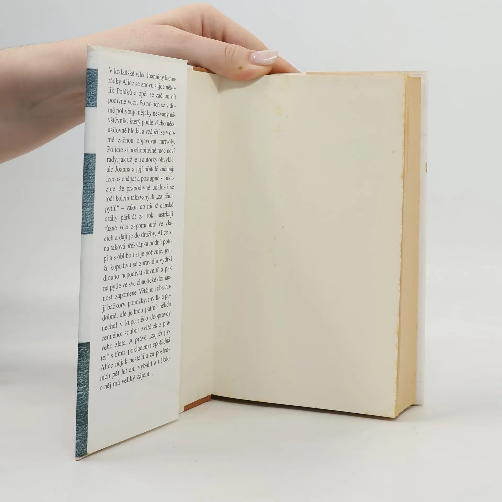 Detektivní román odehrávající se v současné Kodani líčí napínavý příběh Alice, která ve svém domě přechovává vzácné zlaté sošky zvířátek, aniž by o tom věděla. Jednou za rok pořádají dánské železnice dražbu předmětů poztrácených ve vlacích. Nalezené věci postrkané bez ladu a skladu do velkých vaků potom dráhy vydraží, aniž by zájemce vůbec tušil, co nalezne uvnitř. Hlavní hrdinka Alice má díky svému zvláštnímu koníčku doma již slušnou zásobu prášků na praní, punčocháčů, mýdla nebo i trochu zajímavější kousky, např. stříbrnou lišku, zlaté hodinky či zlaté obroučky. Jenže už je to mnoho let co Alice vybalovala své "zajíce v pytli" naposled. Jeden z pytlů obsahuje velkou vzácnost, soubor zvířátek z pravého zlata. Hlavní hrdinka je však takřka poslední, kdo se o vzácnosti ve vlastní domácnosti dozvídá.