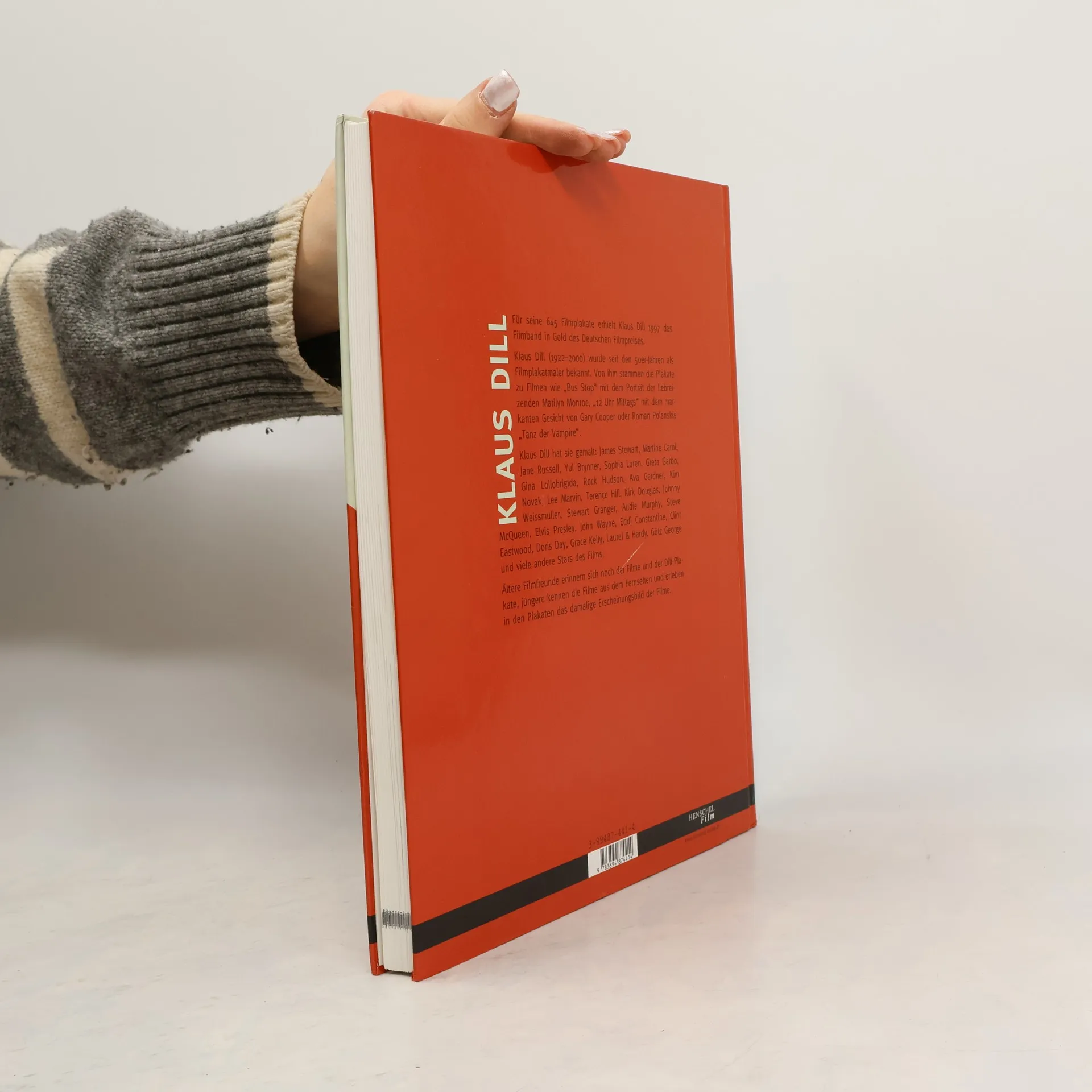 Für seine 645 Filmplakate erhielt Klaus Dill 1997 das Filmband in Gold des Deutschen Filmpreises.Klaus Dill (1922-2000) wurde seit den 5oer-jahren als Filmplakatmaler bekannt. Von ihm stammen die Plakate zu Filmen wie „Bus Stop" mit dem Porträt der liebreizenden Marilyn Monroe, „12 Uhr Mittags" mit dem markanten Gesicht von Gary Cooper oder Roman Polanskis „Tanz der Vampire".Klaus Dill hat sie James Stewart, Martine Carol, Jane Russell, Yul Brynner, Sophia Loren, Greta Garbo, Gina Lollobrigida, Rock Hudson, Ava Gardner, Kim Novak, Lee Marvin, Terence Hill, Kirk Douglas, johnny Weissmuller, Stewart Granger, Audie Murphy, Steve McQueen, Elvis Presley, John Wayne, Eddi Constantine, Clint Eastwood, Doris Day, Grace Kelly, Laurel & Hardy, Götz George und viele andere Stars des Films.Ältere Filmfreunde erinnern sich noch der Filme und der Dill-Plakate, jüngere kennen die Filme aus dem Fernsehen und erleben in den Plakaten das damalige Erscheinungsbild der Filme.