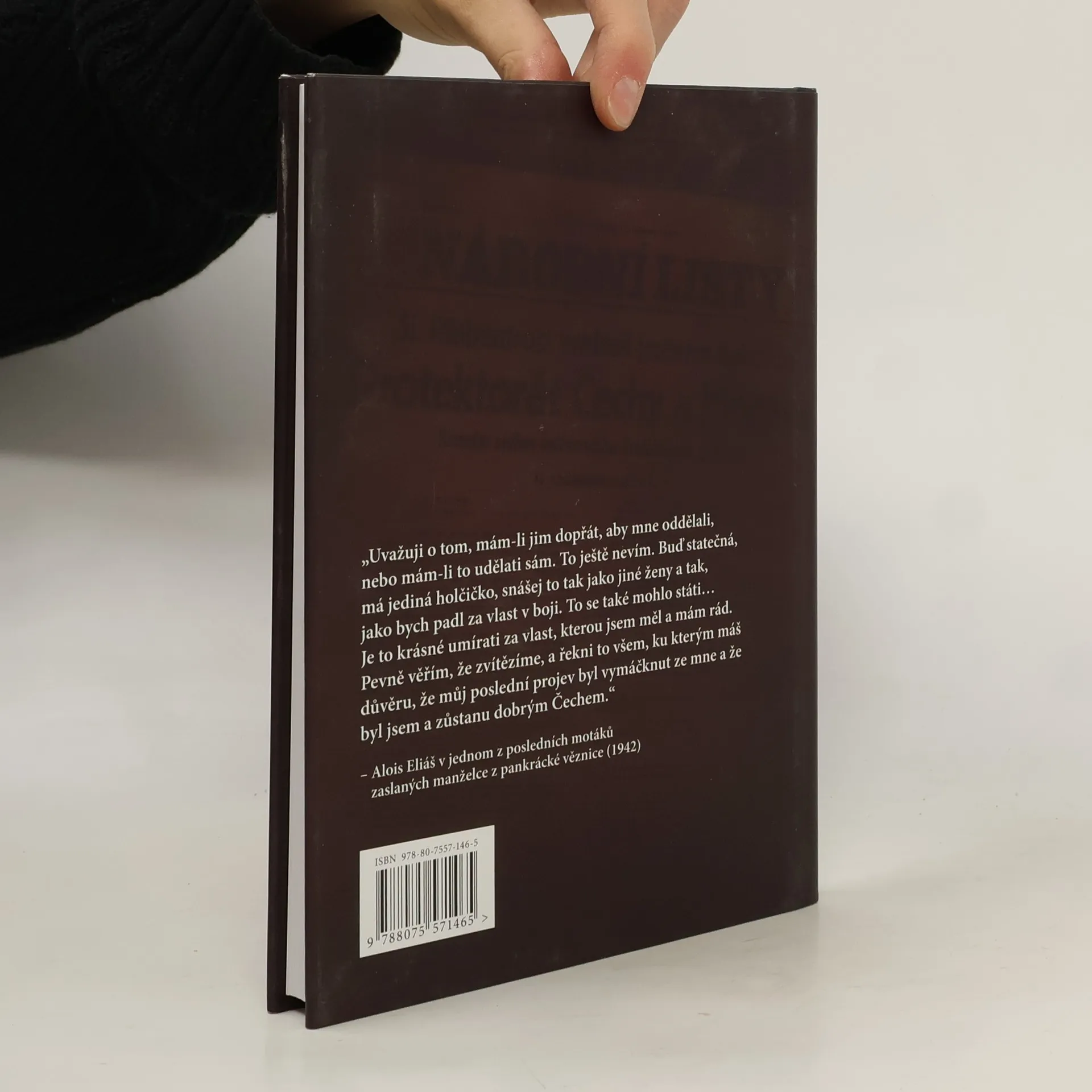 Příběh za druhé světové války ojedinělý: Poprava předsedy vlády země okupované Němci! Hitlerovci se jí dopustili v červnu 1942 na pražské střelnici v Kobylisích. Na rozdíl od Stalinistů nacisté, jisti si svým vítězstvím, se podobnými vraždami veřejně chlubili! Alois Eliáš nebojoval běžnými zbraněmi jako Tři králové Morávek, Mašín a Balabán. Jeho zbraní byla vojenská lest, předstírání a oddalování, získávání času a snaha o narušení záměrů protivníka. Za těžkých podmínek udržoval rádiové i kurýrní spojení se svým vrchním velitelem prezidentem Benešem v Londýně a využíval i dřívější známosti s protektorem Neurathem z mírových jednání v Ženevě. Svedl nejeden „ústupový“ boj se svým protivníkem K. H. Frankem. Byl si vědom toho, že mu hrozí smrt. Jiným pomohl k emigraci, ale sám nabídku emigrovat odmítl, že tam už je generálů dost. Teprve v den výměny protektora Heydrichem koncem září 1941 byl zatčen a německým tribunálem složeným z gestapáků „odsouzen“ k smrti. Zemřel jako hrdina. Odmítl šátek přes oči a díval se upřeně na své vrahy.
