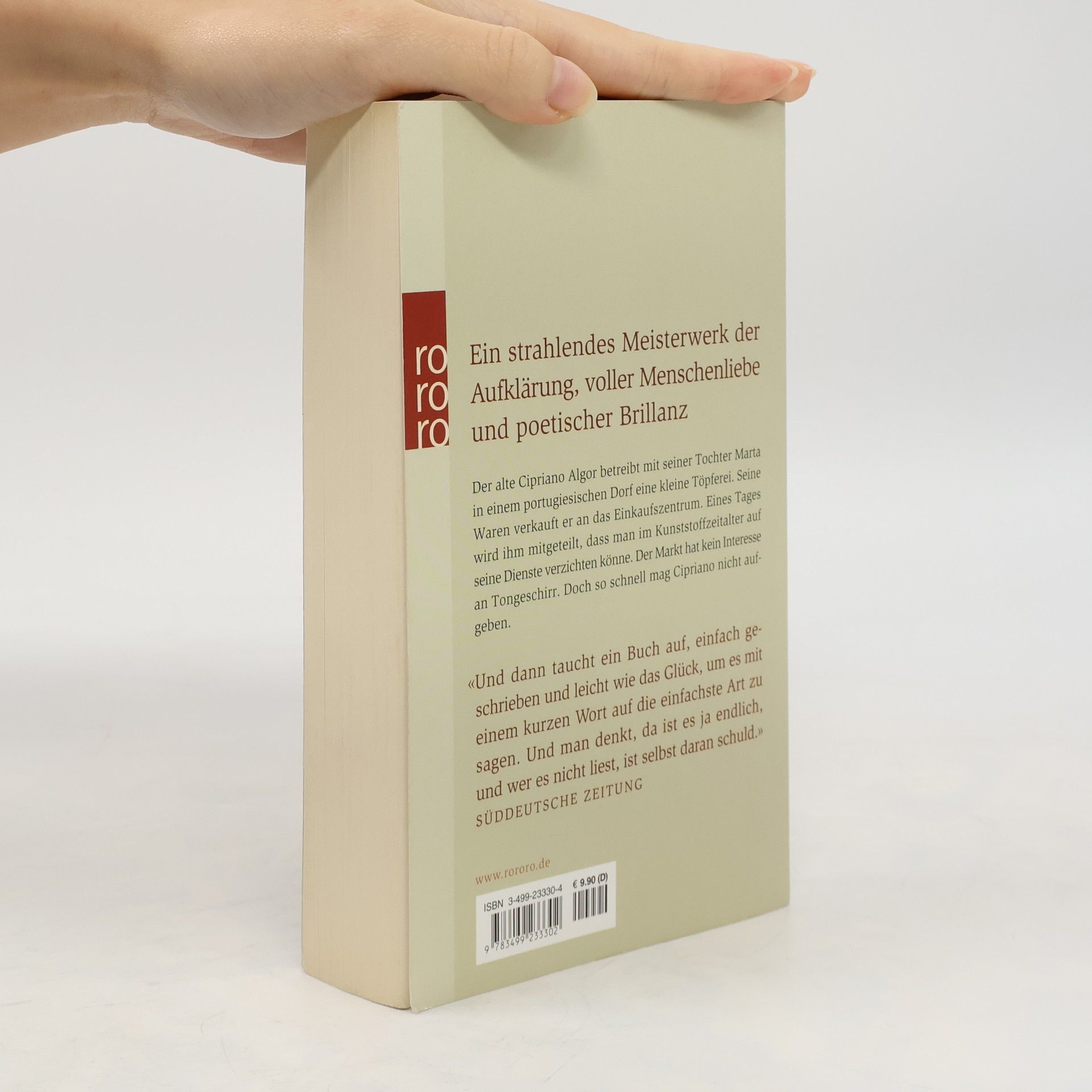 Ein strahlendes Meisterwerk der Aufklärung, voller Menschenliebe und poetischer Brillanz Der alte Cipriano Algor betreibt mit seiner Tochter Marta in einem portugiesischen Dorf eine kleine Töpferei. Seine Waren verkauft er an das Einkaufszentrum. Eines Tages wird ihm mitgeteilt, dass man im Kunststoffzeitalter auf seine Dienste verzichten könne. Der Markt hat kein Interesse an Tongeschirr. Doch so schnell mag Cipriano nicht aufgeben. “Und dann taucht ein Buch auf, einfach geschrieben und leicht wie das Glück, um es mit einem kurzen Wort auf die einfachste Art zu sagen. Und man denkt, da ist es ja endlich, und wer es nicht liest, ist selbst daran schuld.”(Süddeutsche Zeitung)
