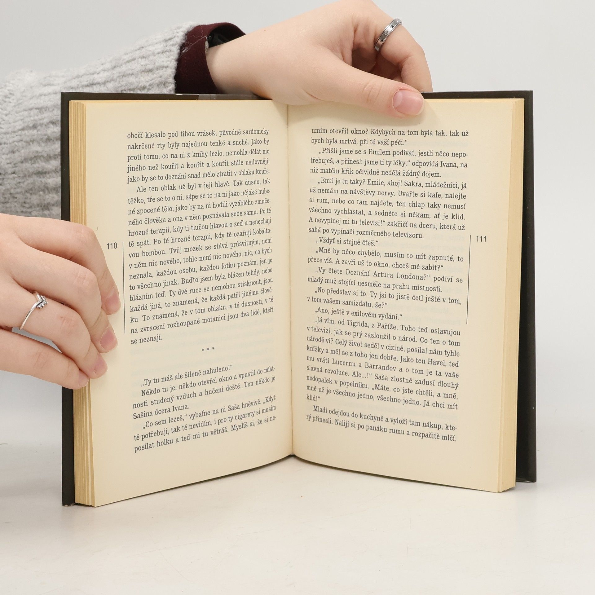 Příběh v deseti povídkách. Jednou z nejvýraznějších literárních událostí posledních let se bezesporu stala povídková kniha Jana Balabána Možná že odcházíme. Byla nominována na Státní cenu, zvítězila v anketě Lidových novin o Knihu roku 2004 a v roce následujícím získala i cenu Magnesia Litera za prózu. Autor se stal od té doby v literatuře pojmem, a tím větší očekávání vzbuzuje jeho nový titul. Balabán se v něm ocitá skutečně na hraně. Podobně jako v předchozí knize nacházíme hrdiny povídek v okamžicích životního zlomu, kdy se hroutí jejich minulé životy: komunistická herečka Alexandra umírající na rakovinu, Ludvík Chmelnický bojující s astmatem, opuštěný Emil ocitající se na pokraji sebevraždy nebo Světlana zlomená rodinnou tragédií. Balabán však jde ještě dál. Jeho hrdinové nejsou svazováni jen sítí deformovaných rodinných vztahů či osobních slabostí a běsů, do jejich životů nepřímo zasahují i traumata velkých dějin. Do těchto osudových dramat jdoucích až na dřeň lidské existence však nečekaně vstupuje cosi zvenčí — zaklepání na dveře, úsměv či pohled na obrázek pověšený v kuchyni — světlo, které mobilizuje vnitřní sílu otočit znova přesýpací hodiny lidského života. Jsme tady. Ono „my“ zde neznamená jen to, že se deset povídek nakonec spojí v celek a osudy jednotlivých postav se protnou, říká také, že spolu s nimi jsme i my součástí jednoho nekončícího příběhu, který přináší také útěchu a naději.