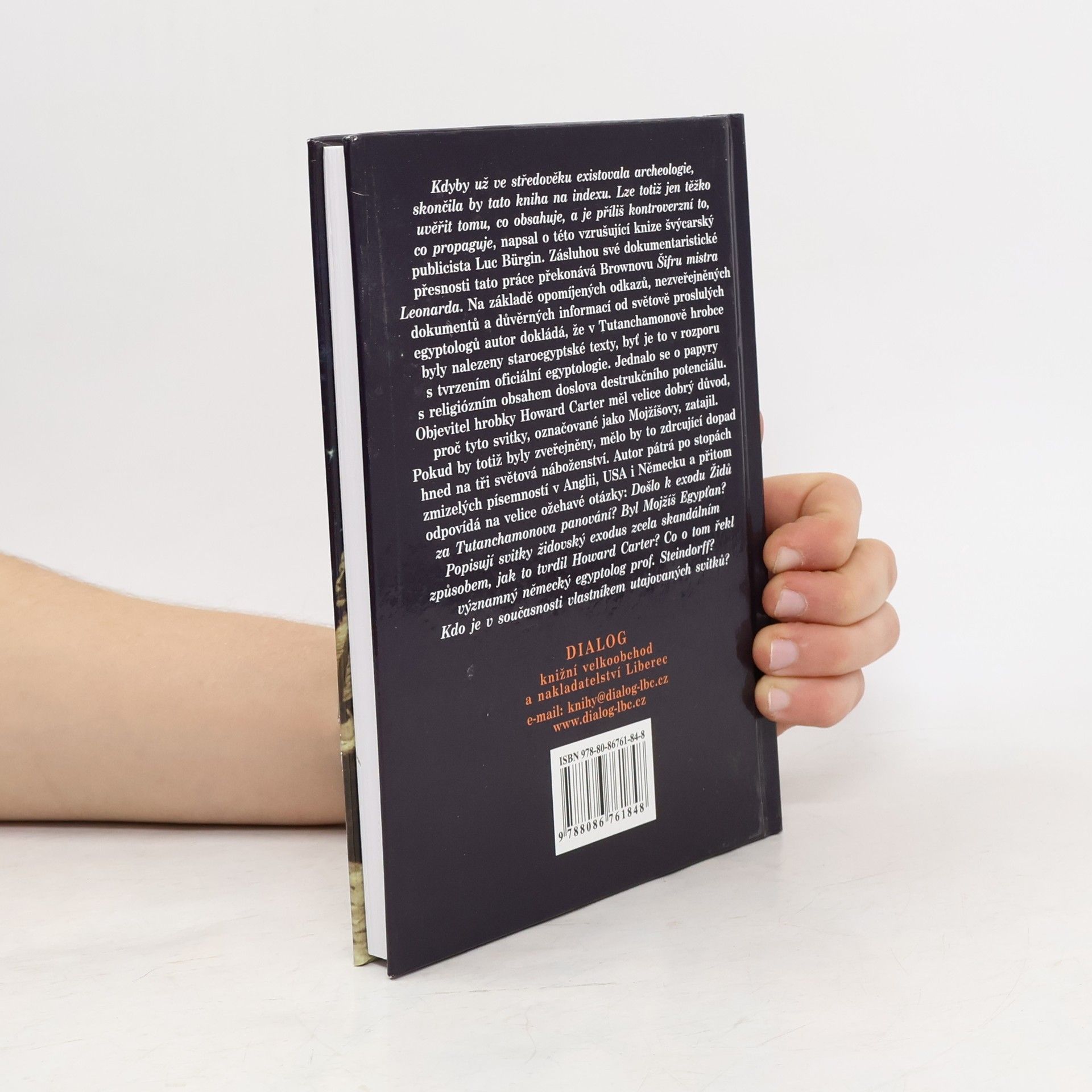 Šokující odhalení z Údolí králů (první vydání) Kdyby už ve středověku existovala archeologie, skončila by tato kniha na indexu. Lze totiž jen těžko uvěřit tomu, co obsahuje, a je příliš kontroverzní to, co propaguje, napsal o této vzrušující knize švýcarský publicista Luc Bürgin. Zásluhou své dokumentaristické přesnosti jeho práce překonává Brownovu Šifru mistra Leonarda. Na základě opomíjených odkazů, nezveřejněných dokumentů a důvěrných informací od světově proslulých egyptologů autor dokládá, že v tutanchamonově hrobce byly nalezeny staroegyptské texty, byť je to v rozporu s tvrzením oficiální egyptologie. Jednalo se o svitky s religiózním obsahem doslova destrukčního potenciálu. Objevitel hrobky Howard Carter měl velice dobrý důvod, proč tyto svitky, označované jako Mojžíšovy, zatajil. Pokud by totiž byly zveřejněny, mělo by to zdrcující dopad hned na tři světová náboženství. Autor sleduje stopy zmizelých písemností do Anglie a Německa a přitom odpovídá na velice ožehavé otázky: Došlo k exodu Židů za Tutanchamonova panování? Byl Mojžíš Egypťan? Popisují svitky židovský exodus zcela skandálním způsobem, jak to tvrdil Howard Carter? Co o tom řekl významný německý egyptolog prof. Steindorf? Kdo je současným vlastníkem utajovaných svitků?