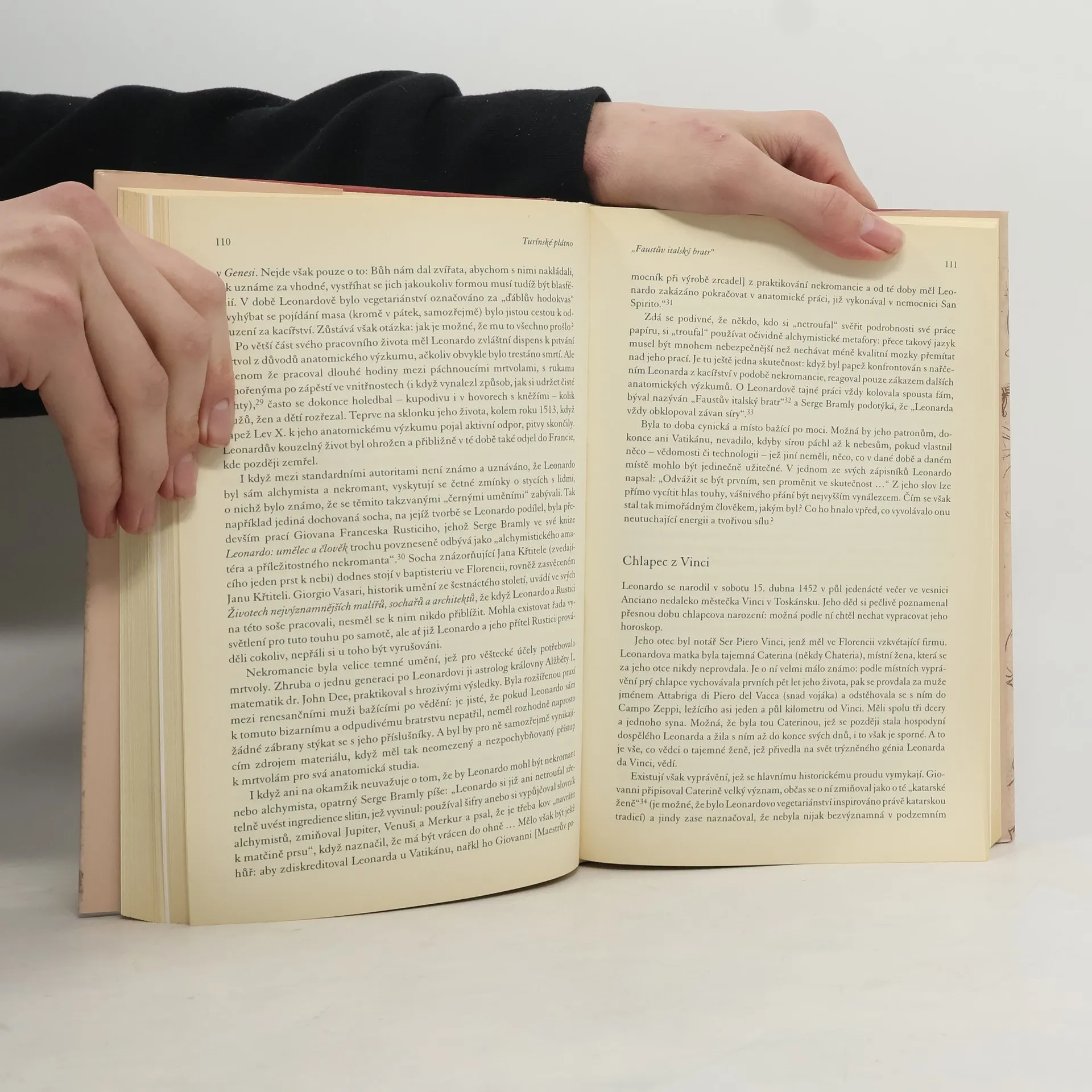 Podtitul: Jak Mistr Leonardo ošálil historii Autoři knížky pátrají po tajemném původu Turínského plátna. Jednu z nejvýznamnějších křesťanských relikvií považují za falzum vytvořené Leonardem da Vinci. Publikace shrnuje dosavadní poznatky o Turínském plátně, rekonstruuje jeho nejasnou historii (první doložené zmínky pocházejí až z 2. poloviny 14. století z Francie) a seznamuje s výsledky vědeckého zkoumání relikvie. Picknettová s Princem přicházejí s hypotézou, podle níž došlo někdy v 90. letech 15. století k vytvoření falza a jeho záměně s původním plátnem. Tvůrcem "nového" Sindonu měl být Leonardo da Vinci, jedna z nejpozoruhodněších osobností renesanční Itálie. Tvář muže na plátně je údajným Leonardovým autoportrétem. Obraz měl být vytvořen speciální fotografickou technikou - autoři se pokusili "Leonardovu" metodu v moderních podmínkách napodobit. O výsledcích svého snažení informují v předkládané knize.